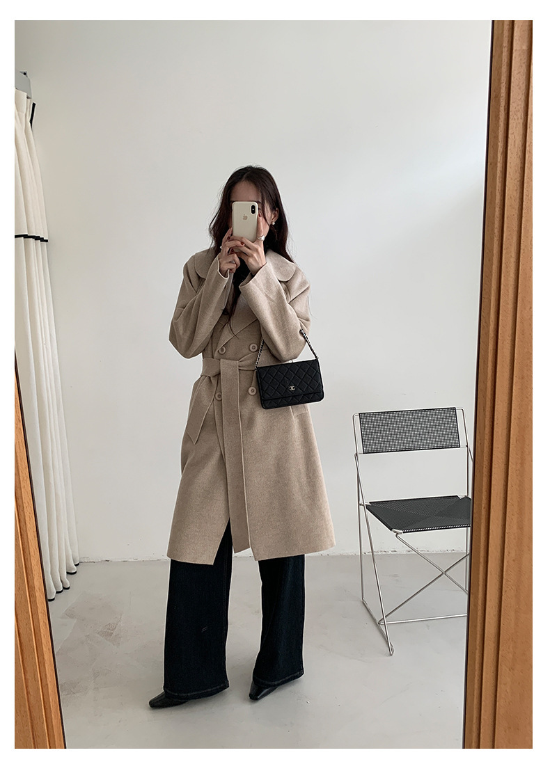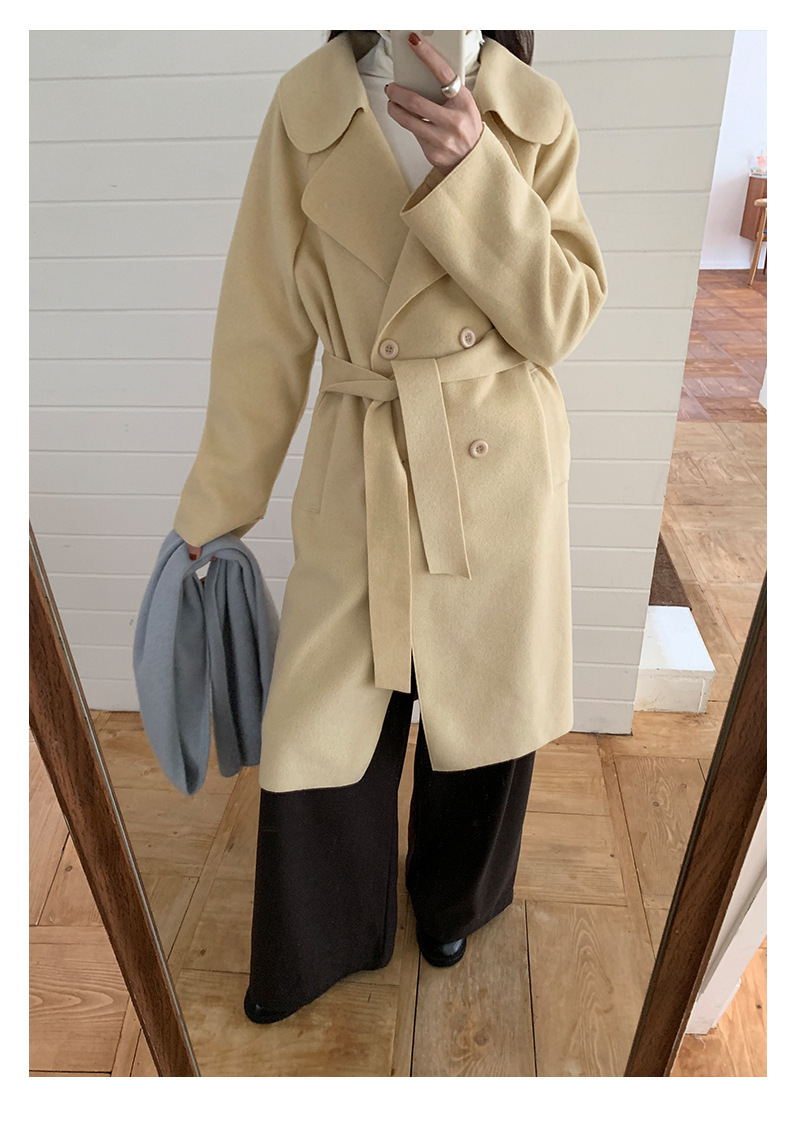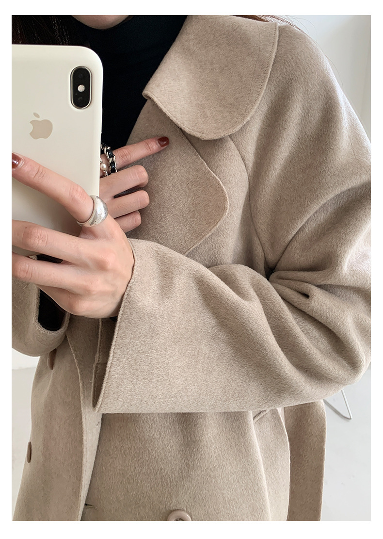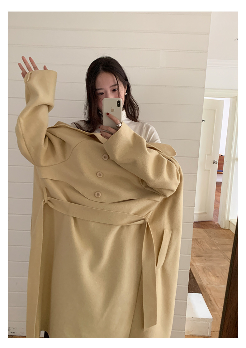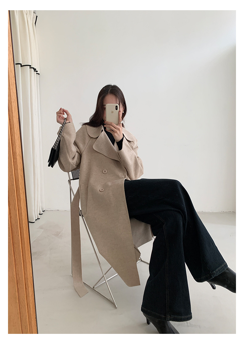 *o-ha-you*【FHZH1AA5041057】英倫風翻領束腰雙面呢羊絨外套女秋冬寬鬆過膝長大衣-2色