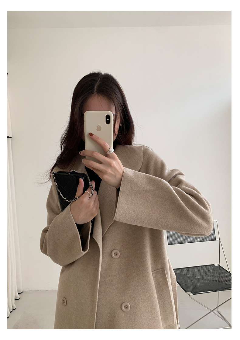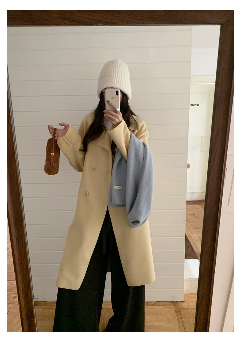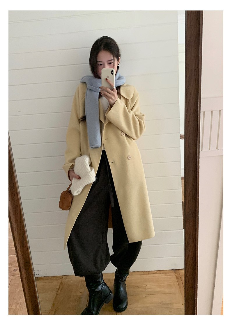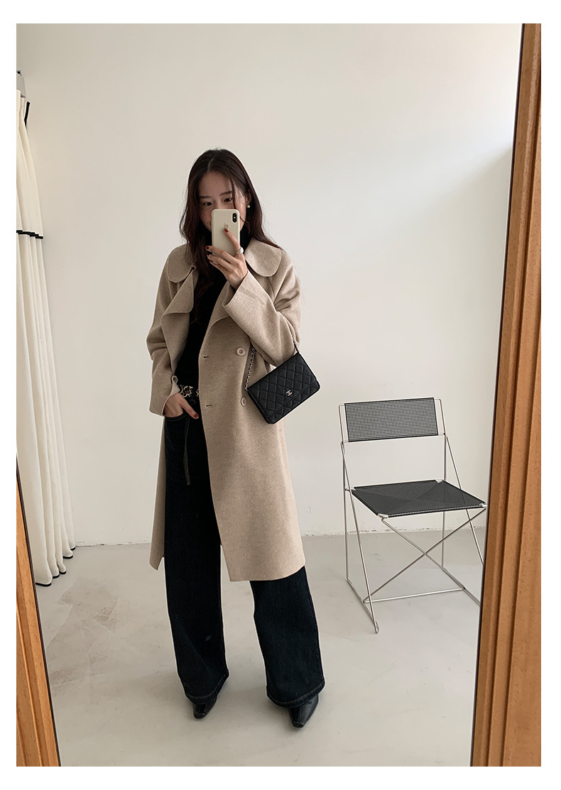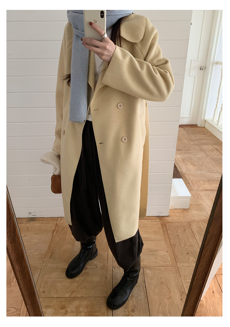 *o-ha-you*【FHZH1AA5041057】英倫風翻領束腰雙面呢羊絨外套女秋冬寬鬆過膝長大衣-2色