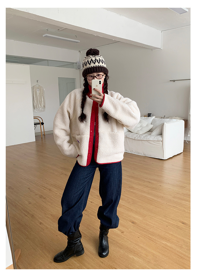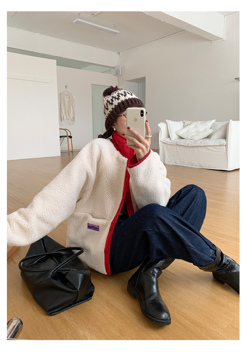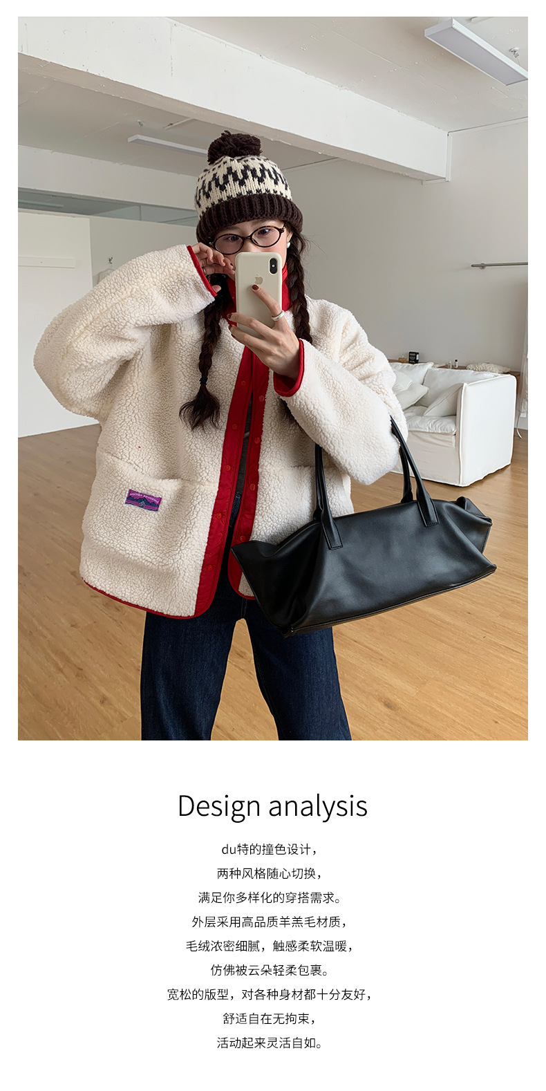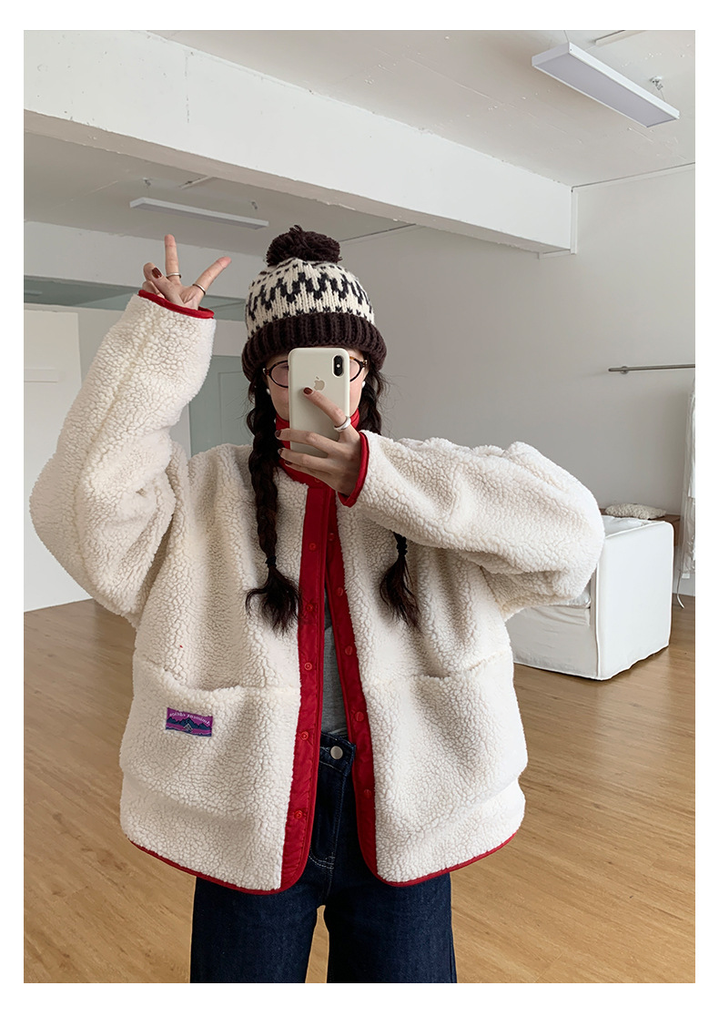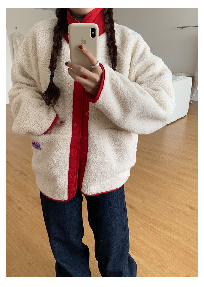 *o-ha-you*【FHZH1AB5041092】韓系撞色兩面穿羔羊毛外套女秋冬寬鬆加厚保暖外搭上衣-2色