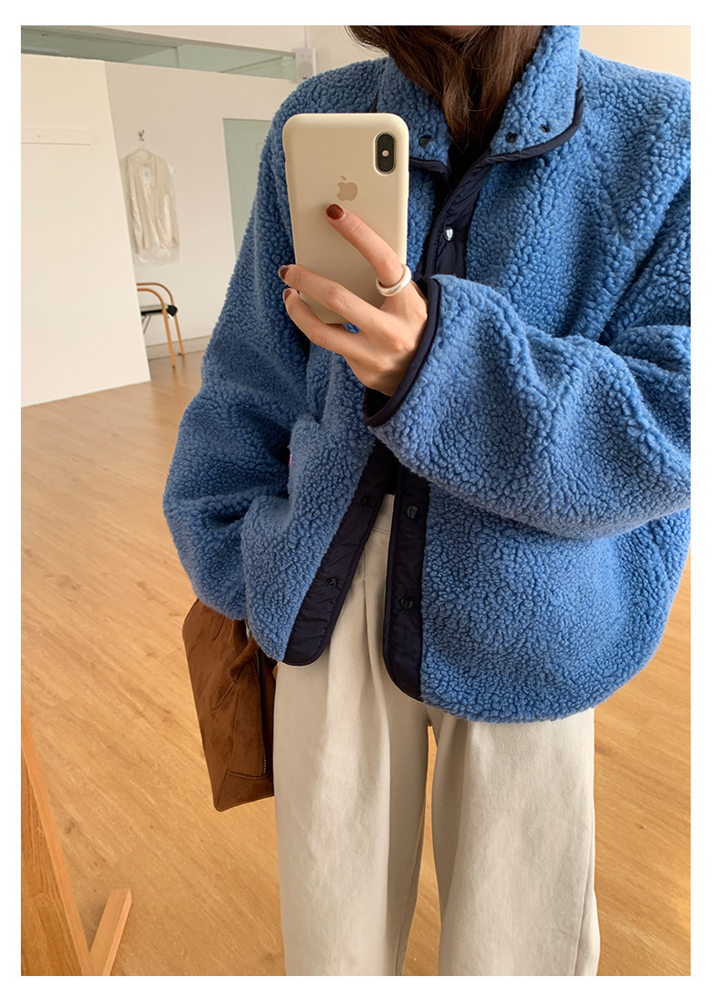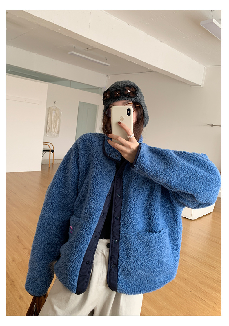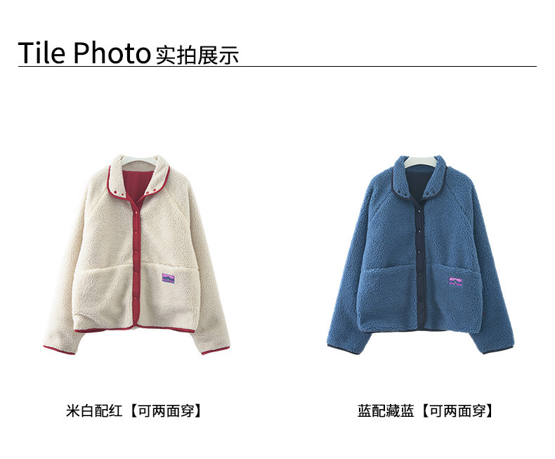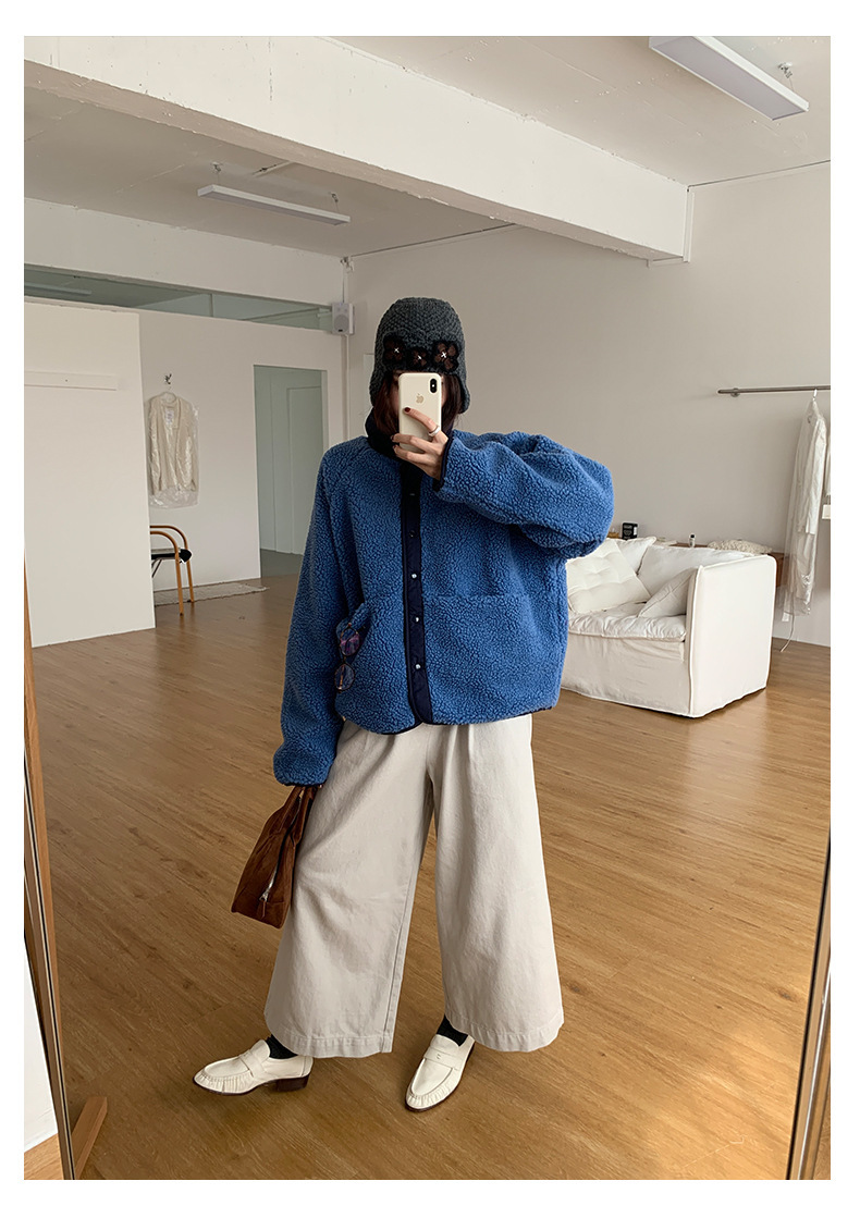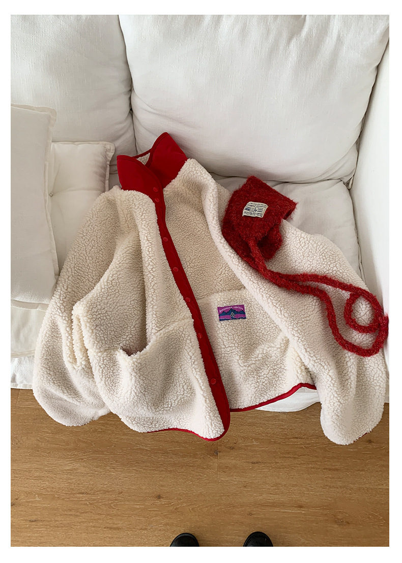 *o-ha-you*【FHZH1AB5041092】韓系撞色兩面穿羔羊毛外套女秋冬寬鬆加厚保暖外搭上衣-2色