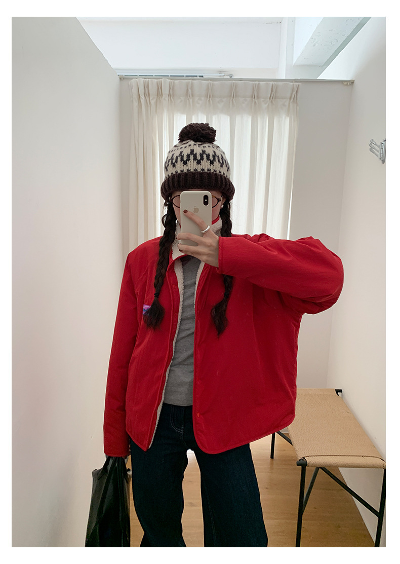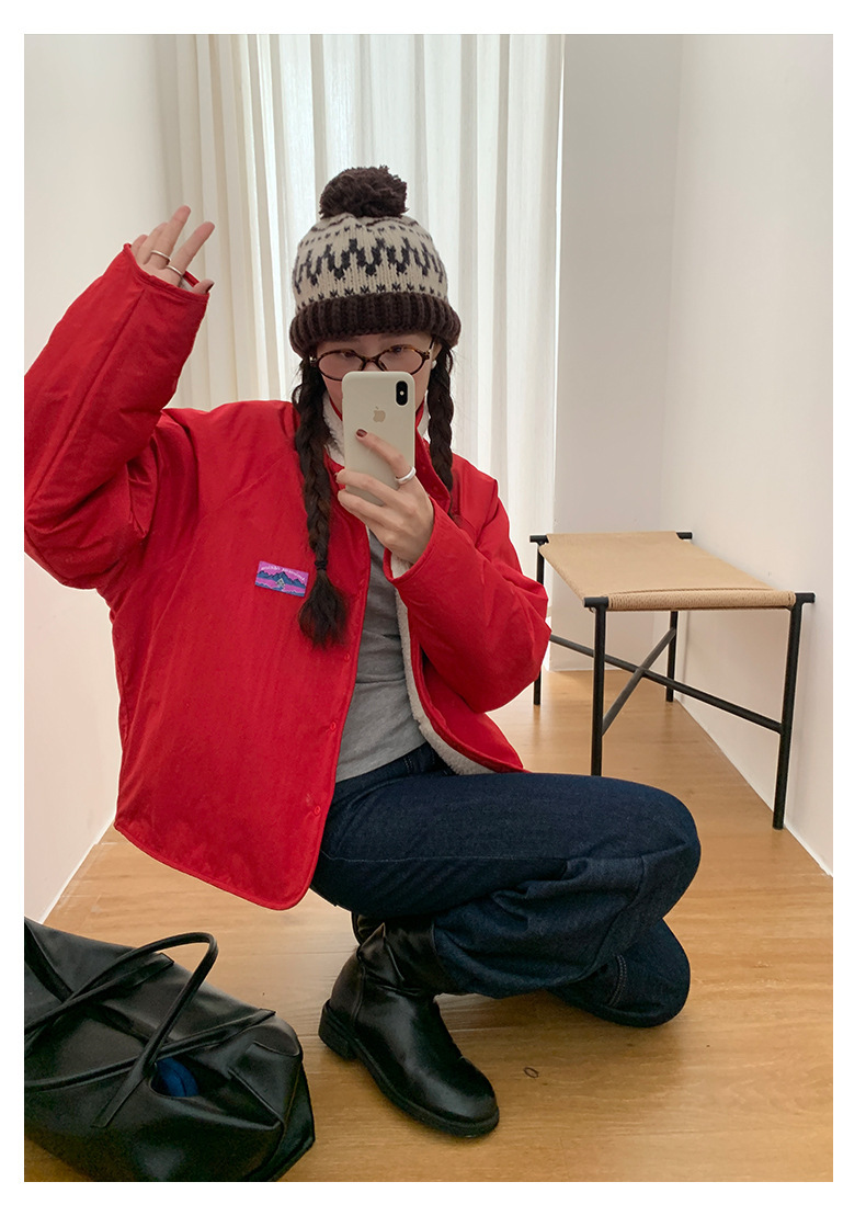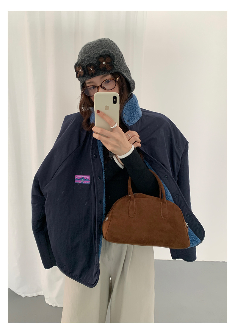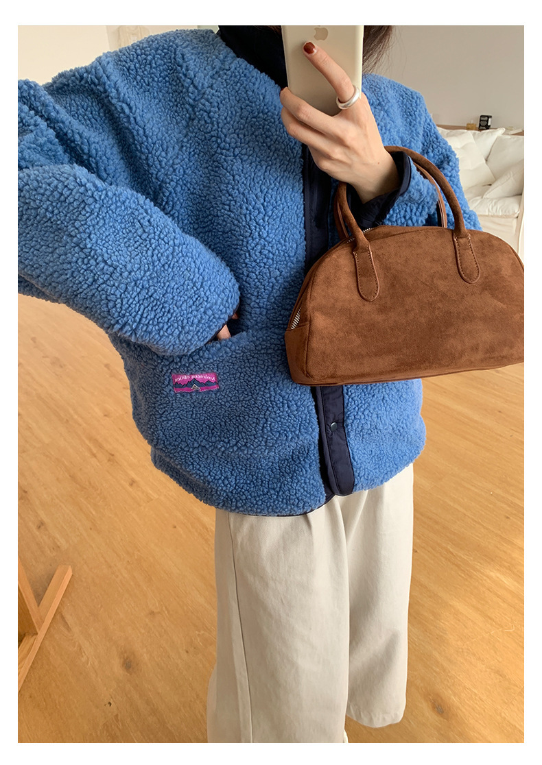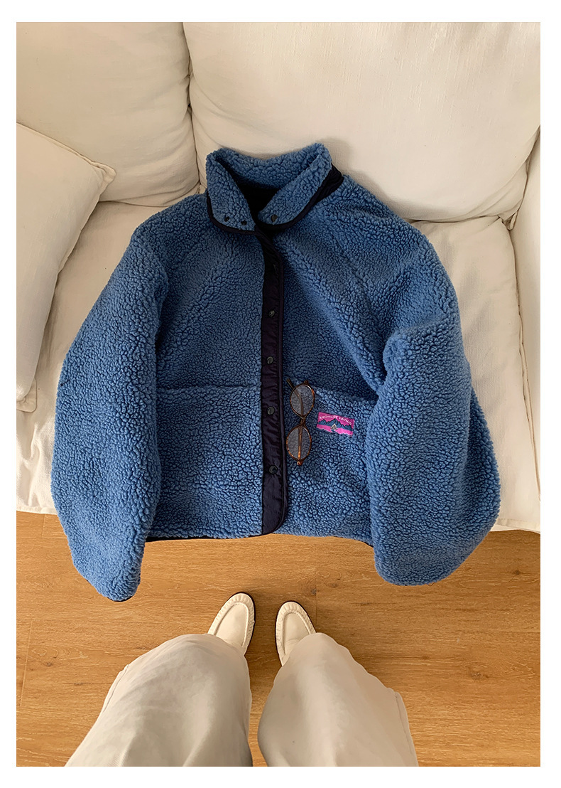 *o-ha-you*【FHZH1AB5041092】韓系撞色兩面穿羔羊毛外套女秋冬寬鬆加厚保暖外搭上衣-2色