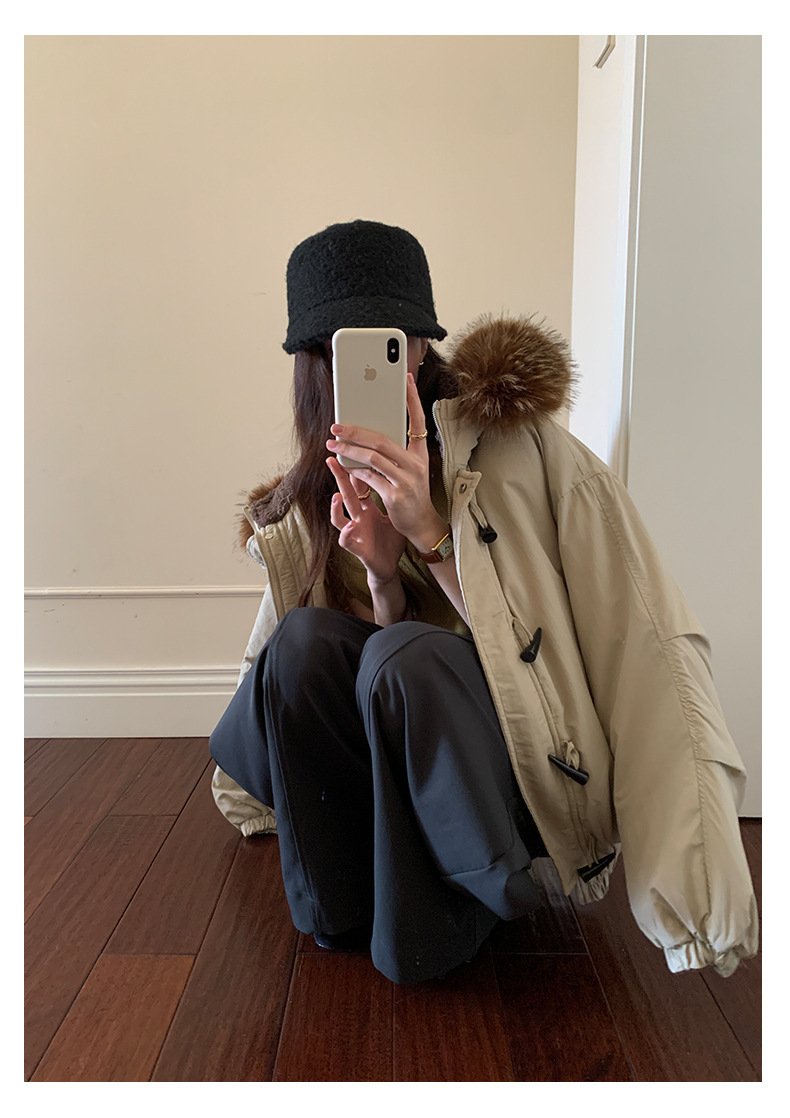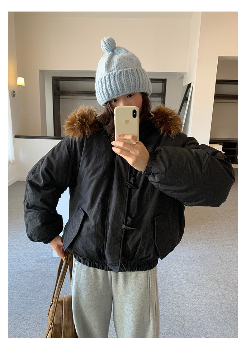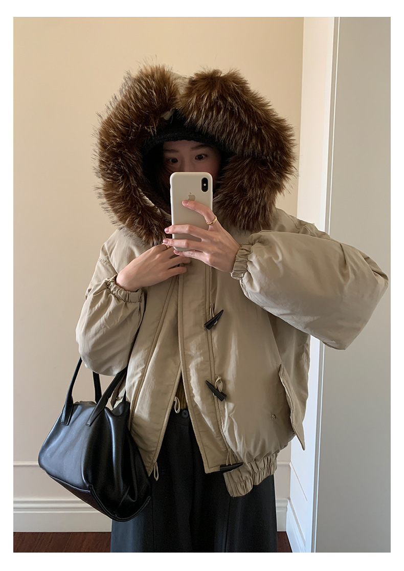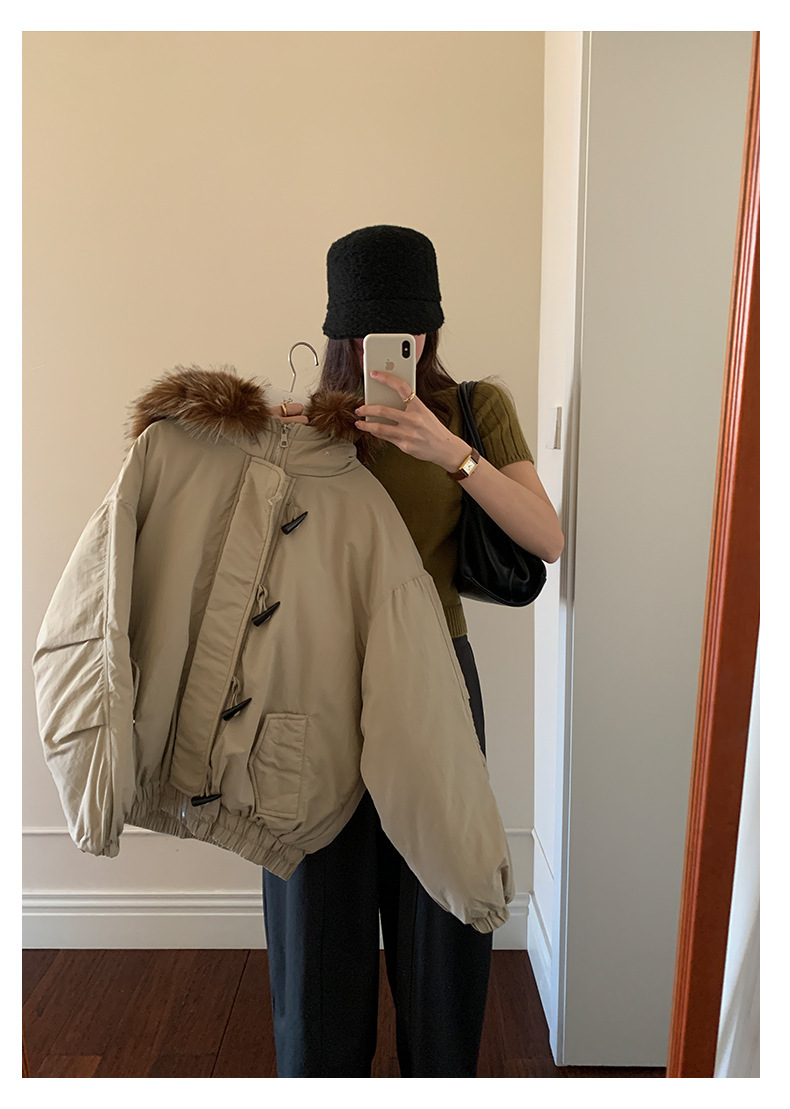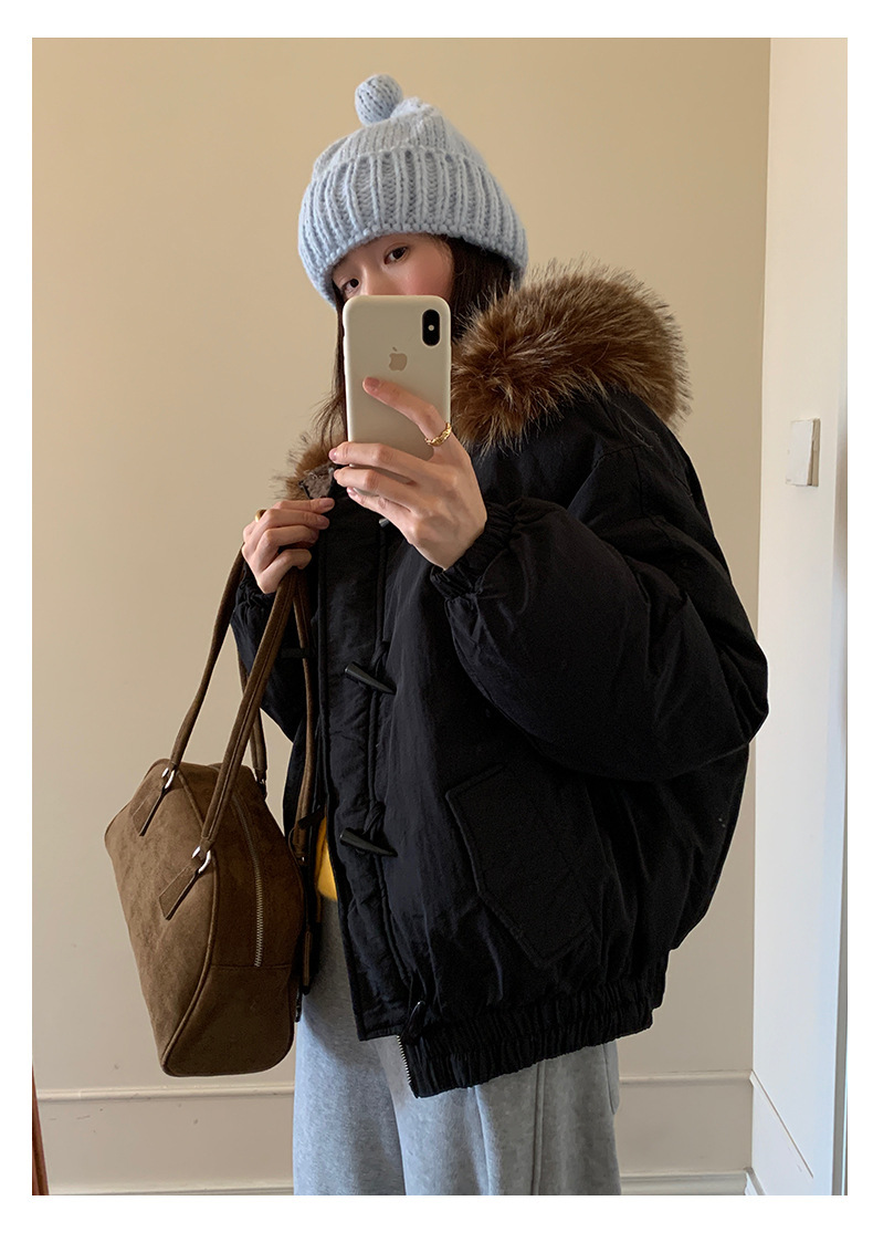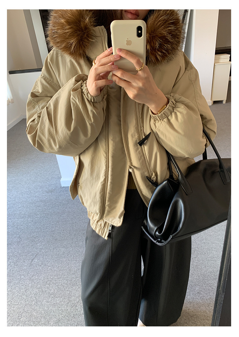 *o-ha-you*【FHZH1AB5041137】韓系加厚連帽大毛領棉服外套女冬季保暖牛角扣棉襖大衣-2色
