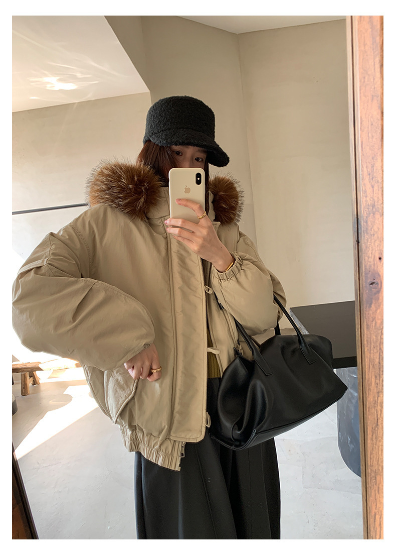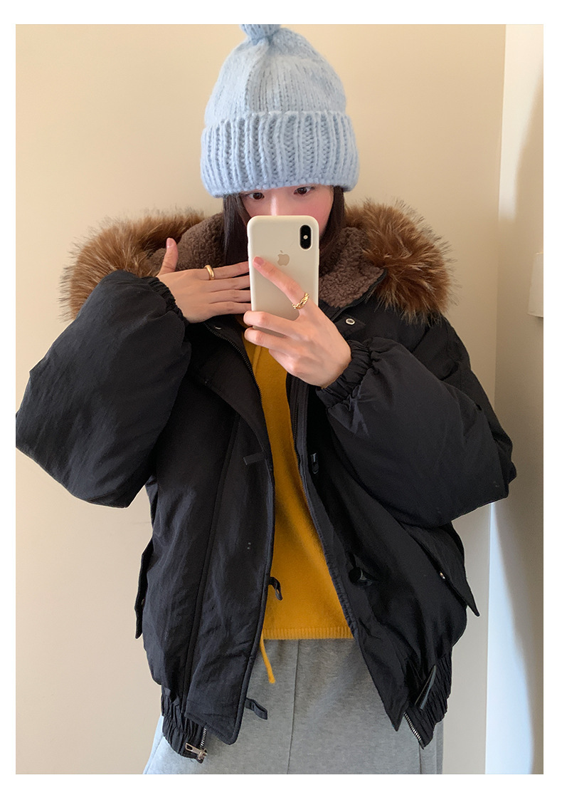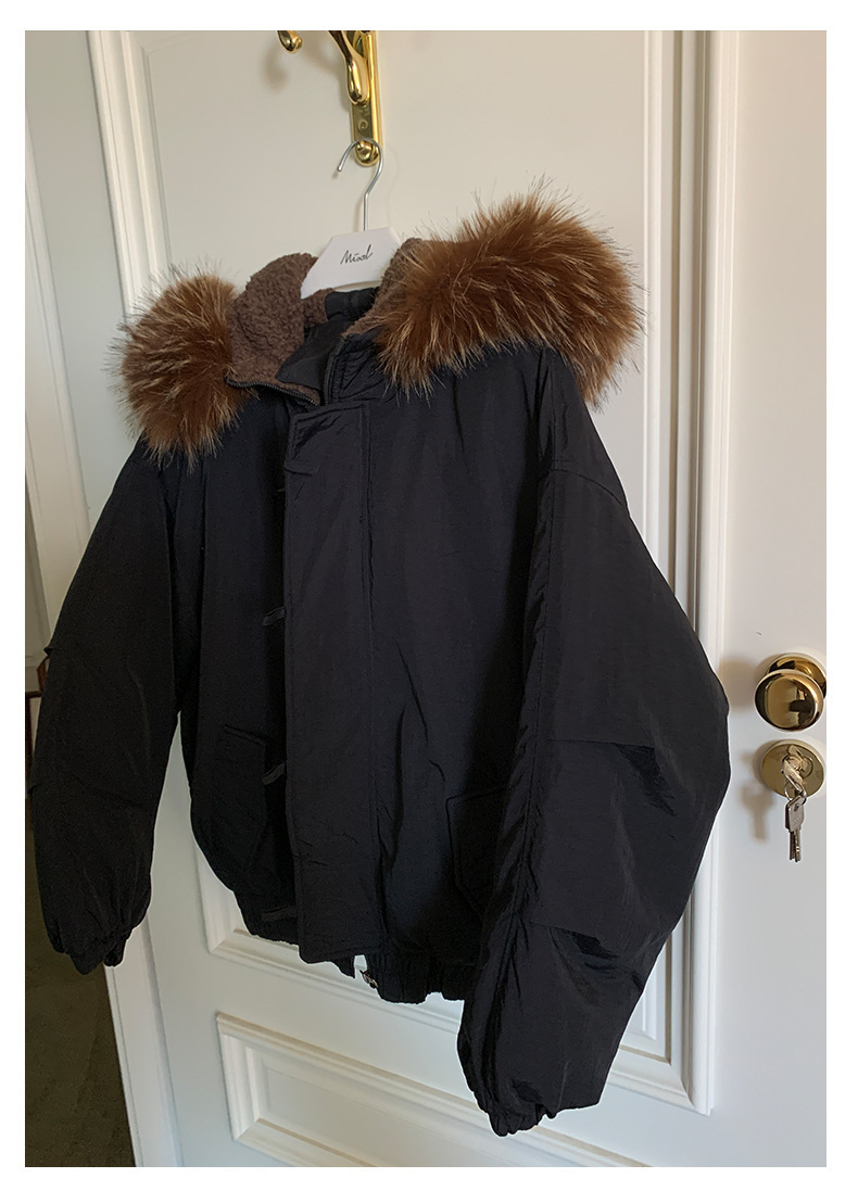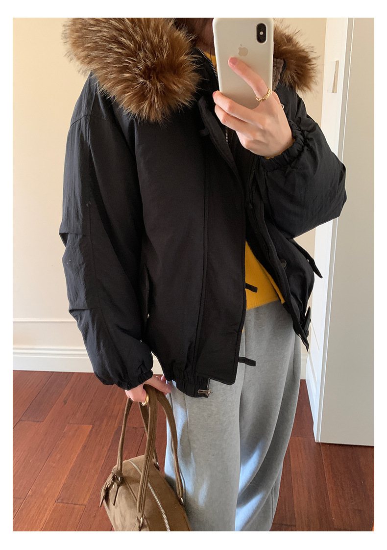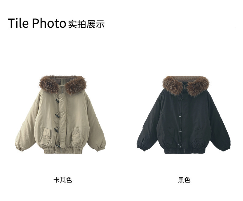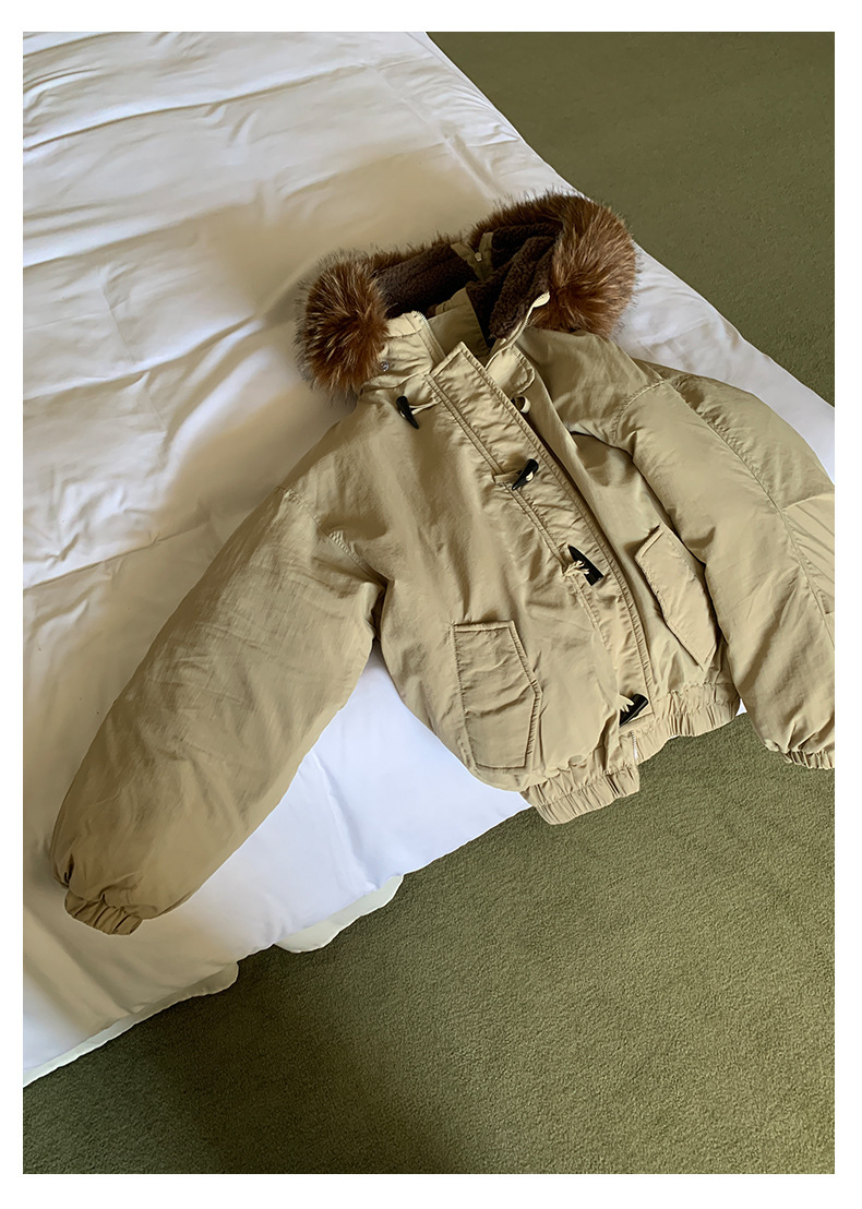 *o-ha-you*【FHZH1AB5041137】韓系加厚連帽大毛領棉服外套女冬季保暖牛角扣棉襖大衣-2色