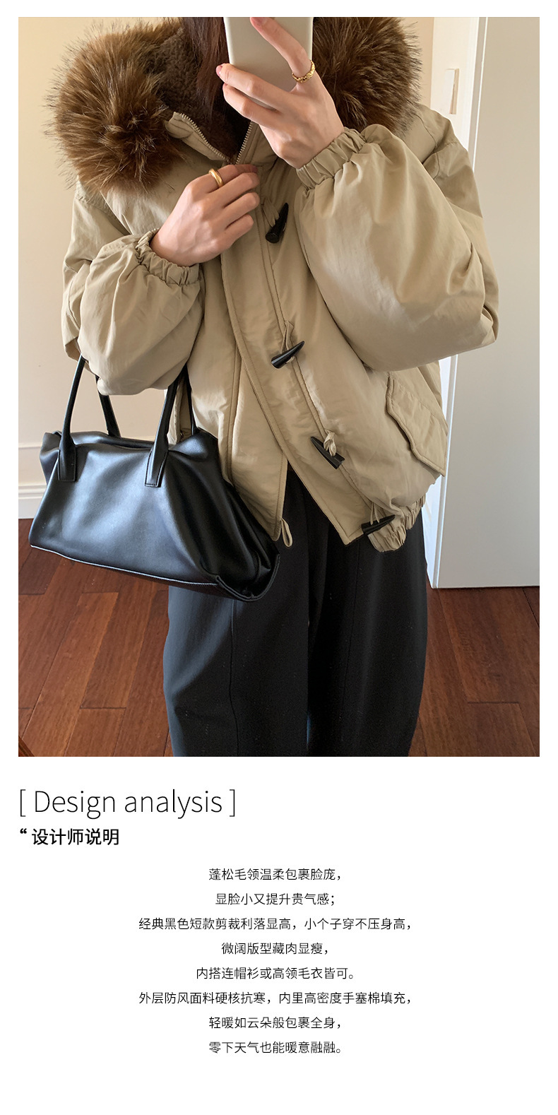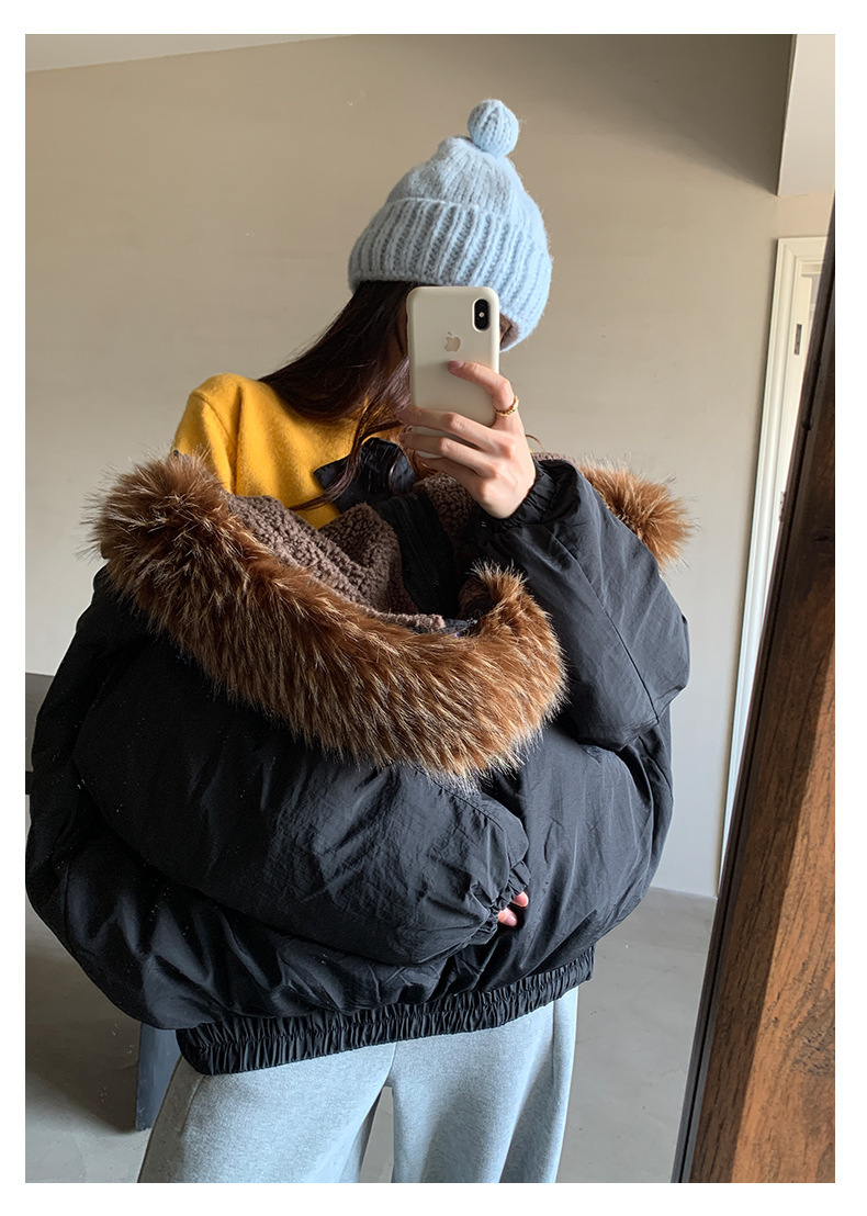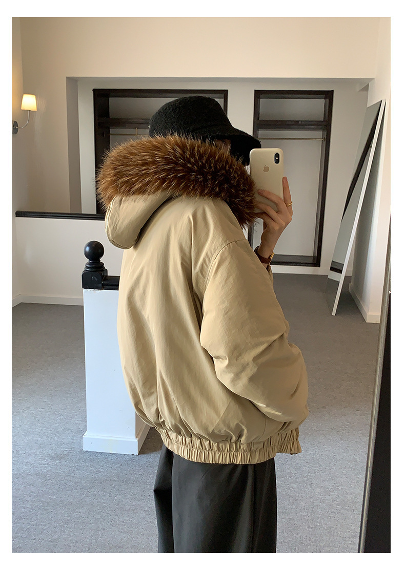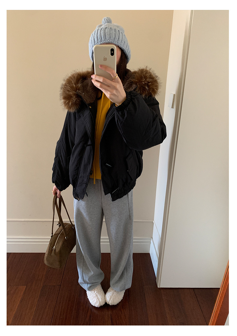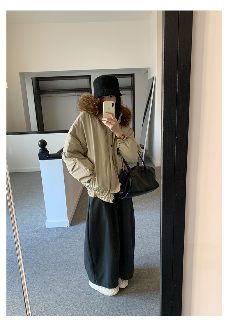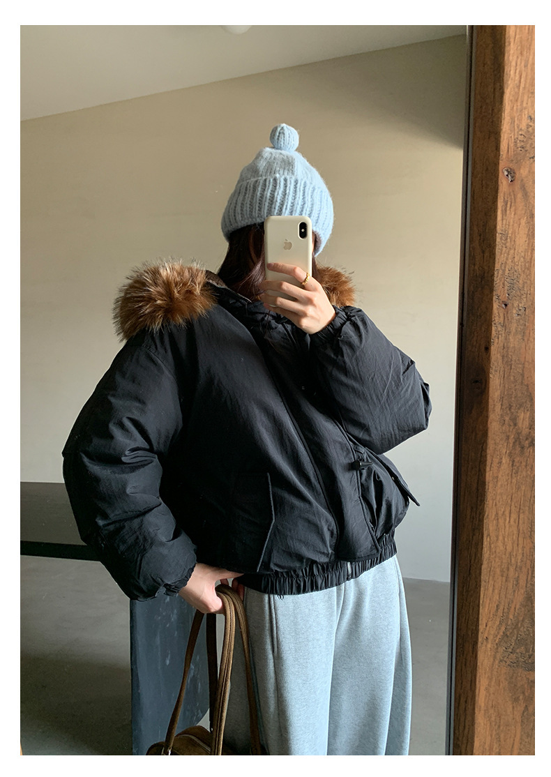 *o-ha-you*【FHZH1AB5041137】韓系加厚連帽大毛領棉服外套女冬季保暖牛角扣棉襖大衣-2色