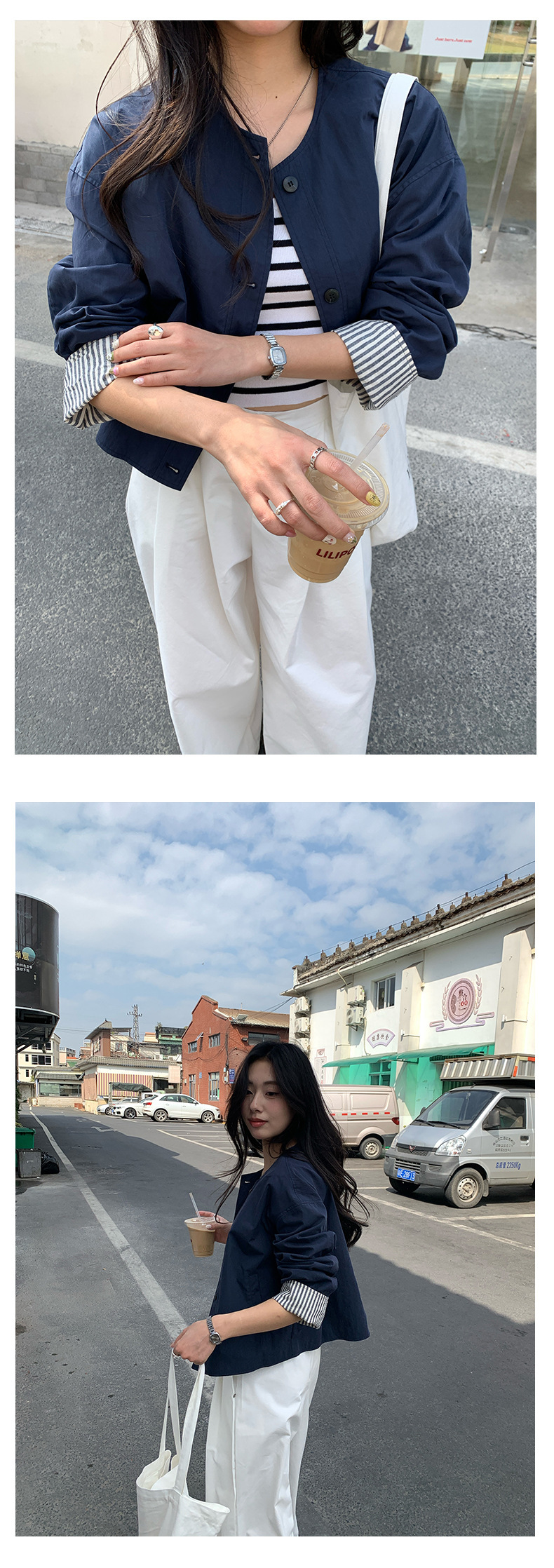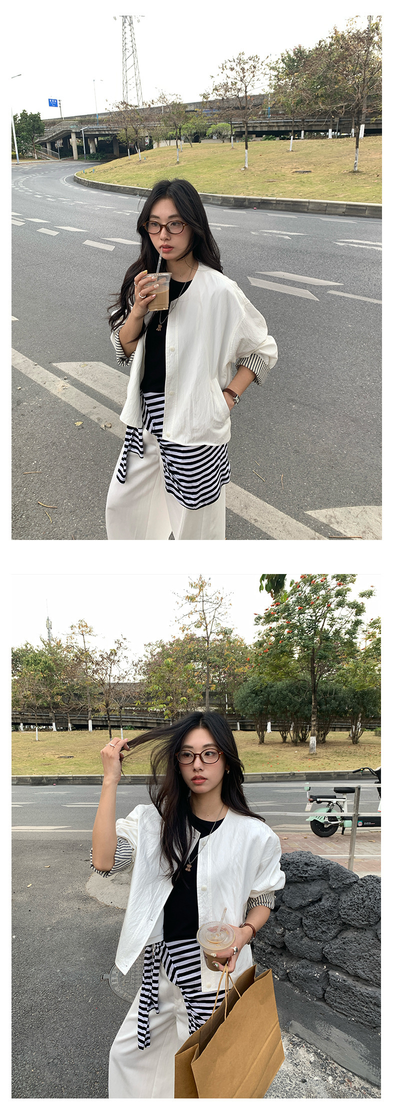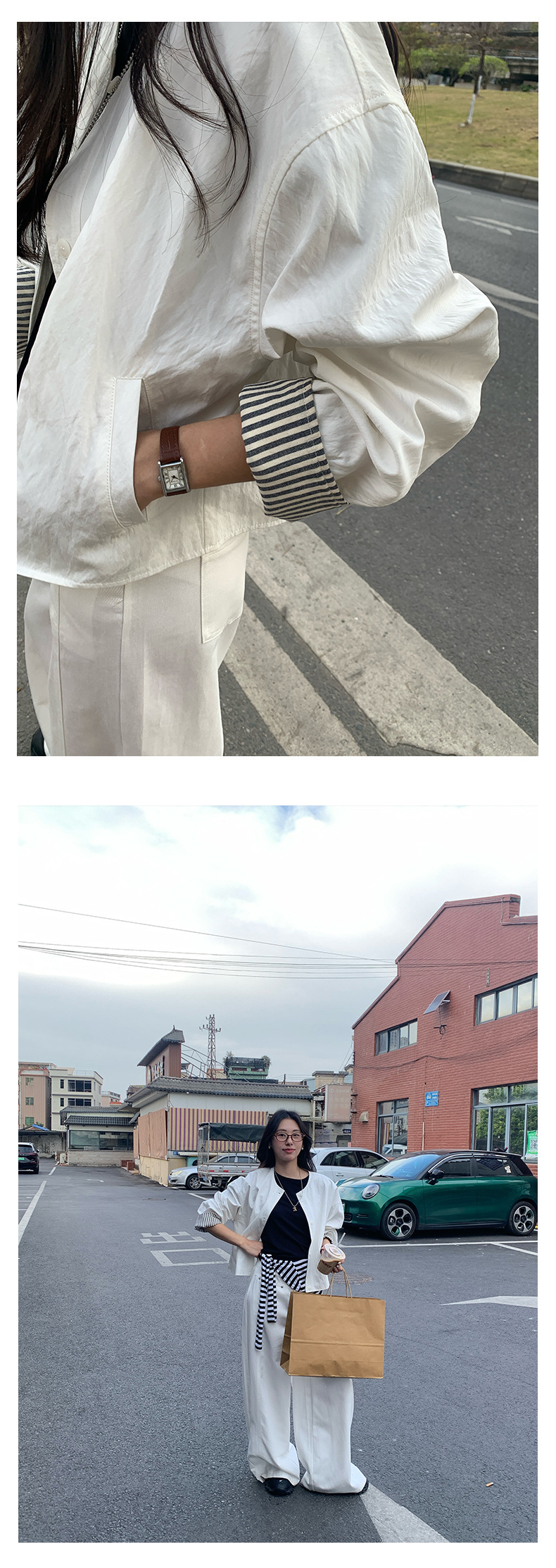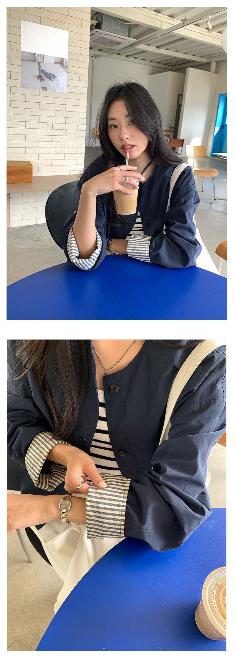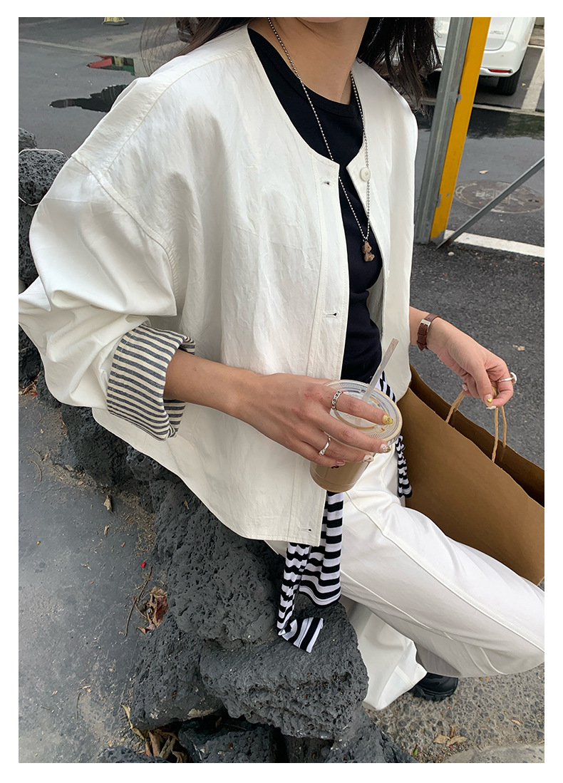 *o-ha-you*【FHZH1BB5010103】韓風簡約條紋袖拼接夾克外套2025春寬鬆休閒上衣-2色-如有需要請先諮詢