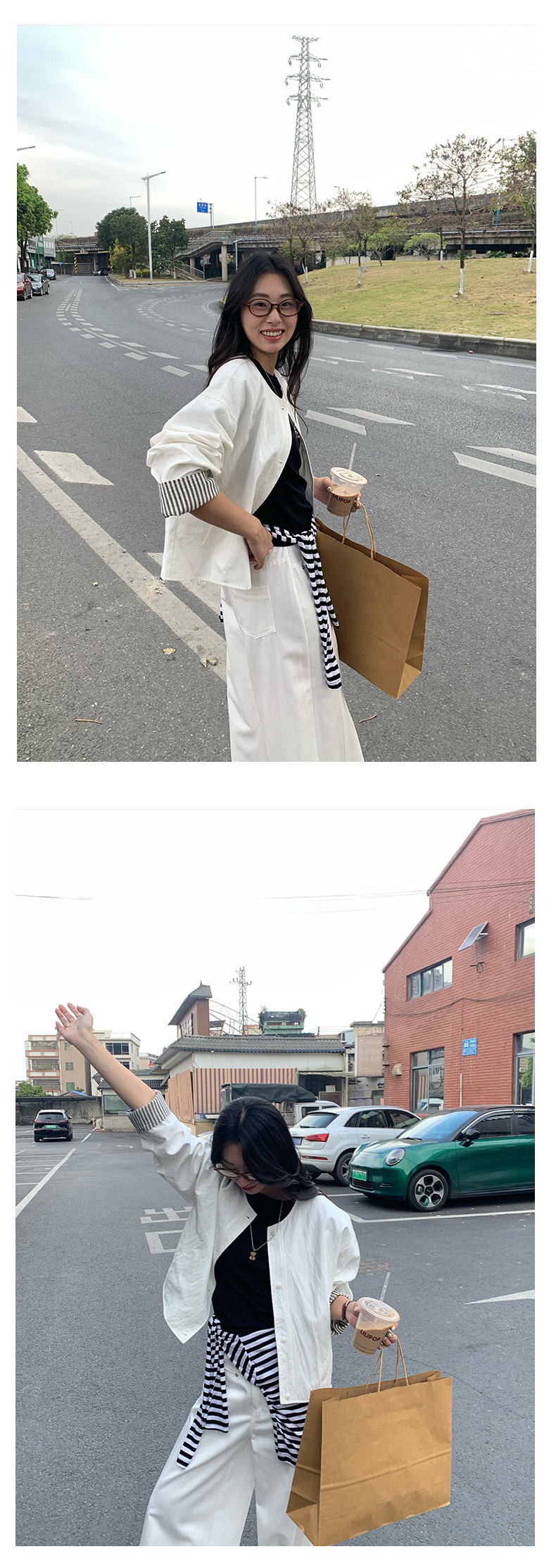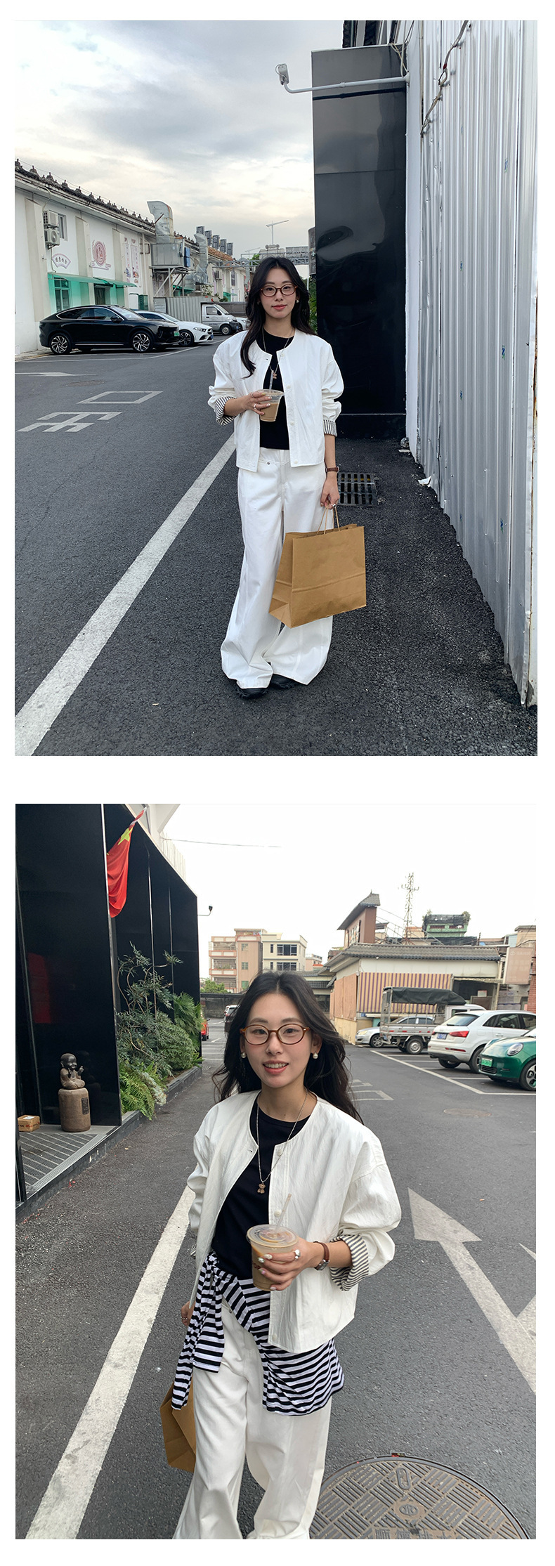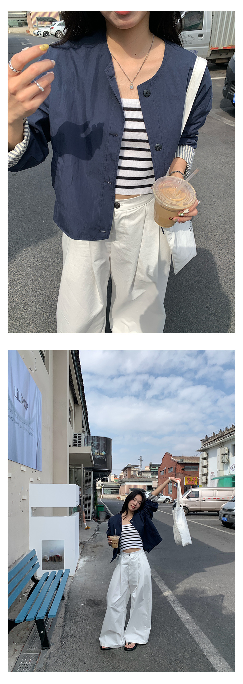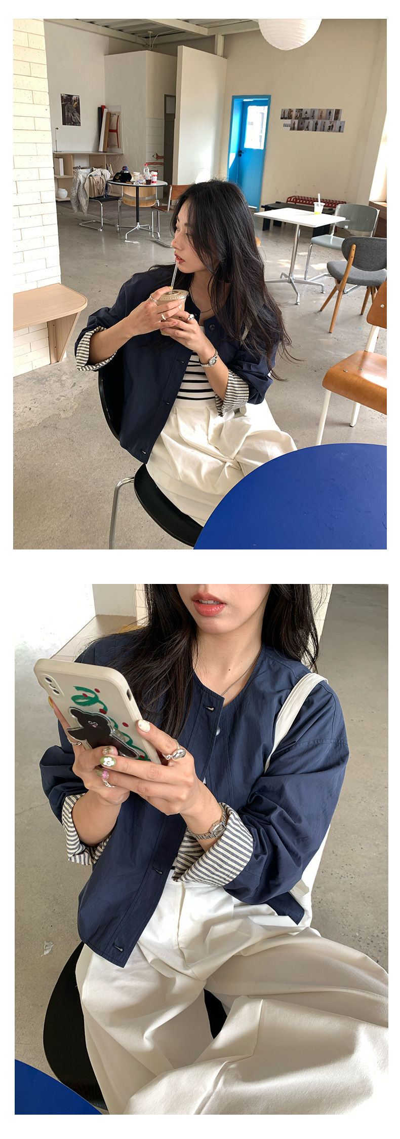 *o-ha-you*【FHZH1BB5010103】韓風簡約條紋袖拼接夾克外套2025春寬鬆休閒上衣-2色-如有需要請先諮詢