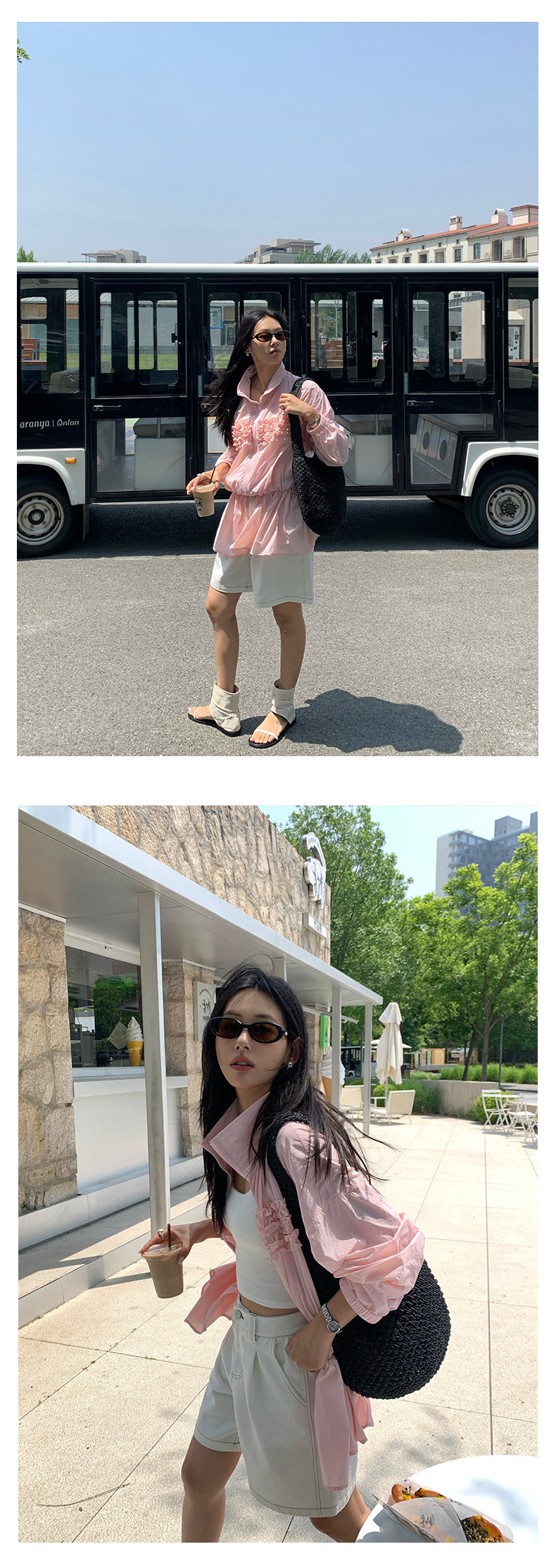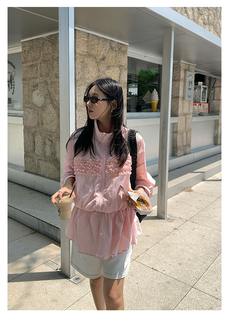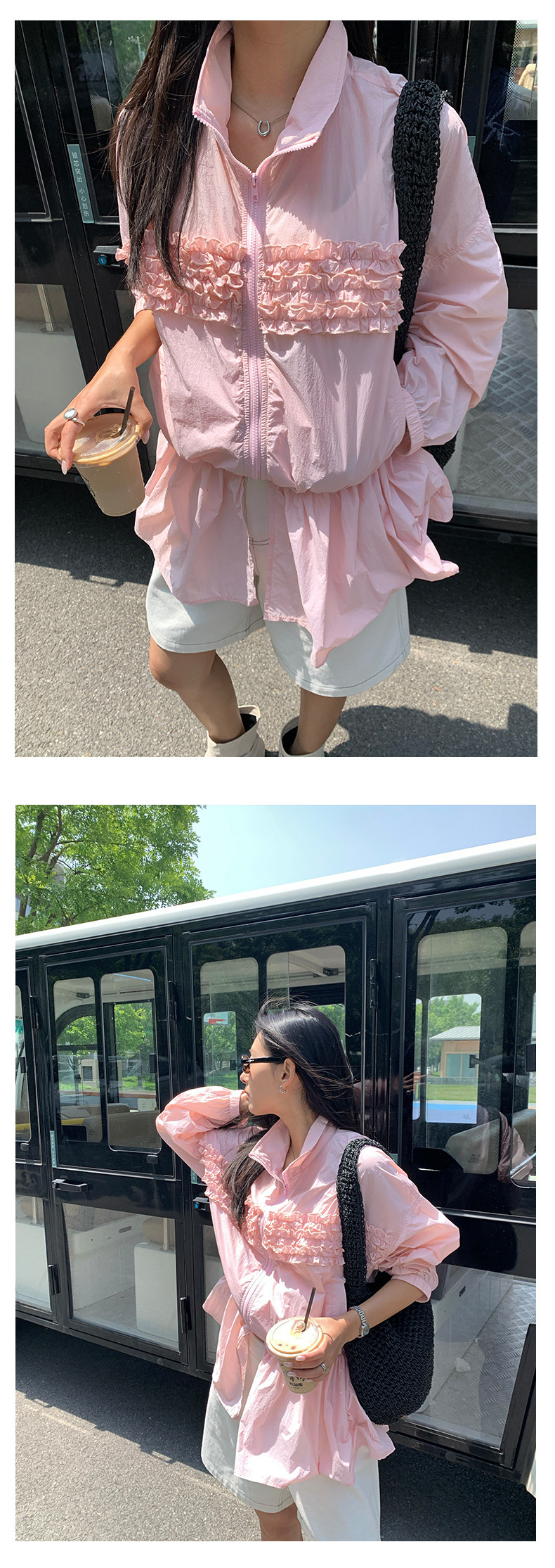 *o-ha-you*【FHZH1BB5020618】韓系時髦防曬衣一衣三穿夏季新款寬鬆花邊上衣外套-2色