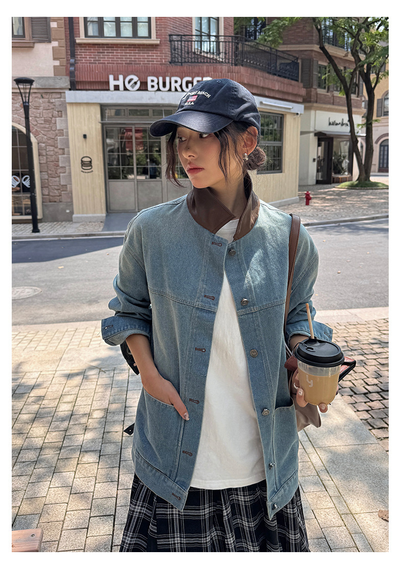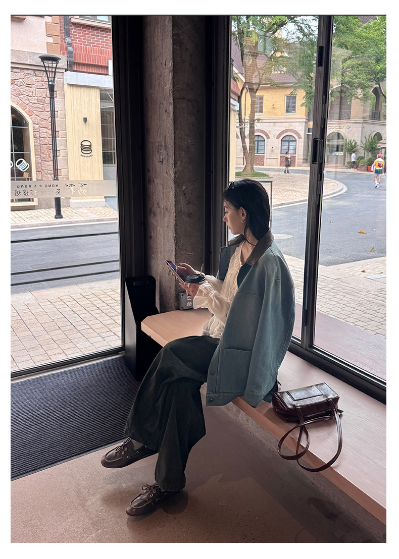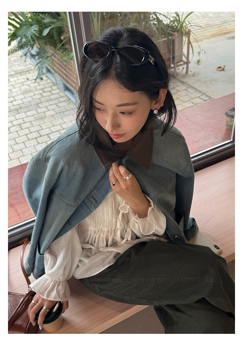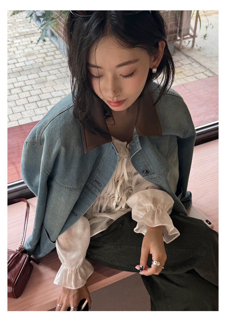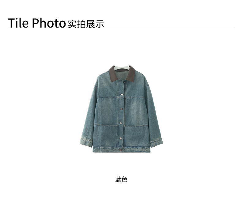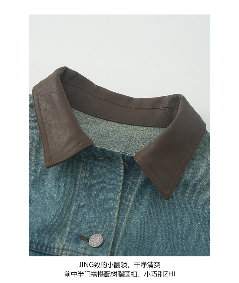 *o-ha-you*【FHZH1BB5030858】韓版復古水洗拼皮翻領工裝牛仔外套百搭夾克上衣
