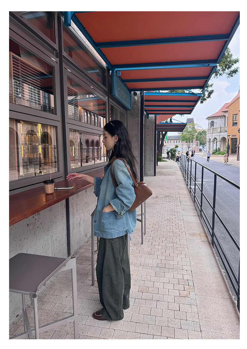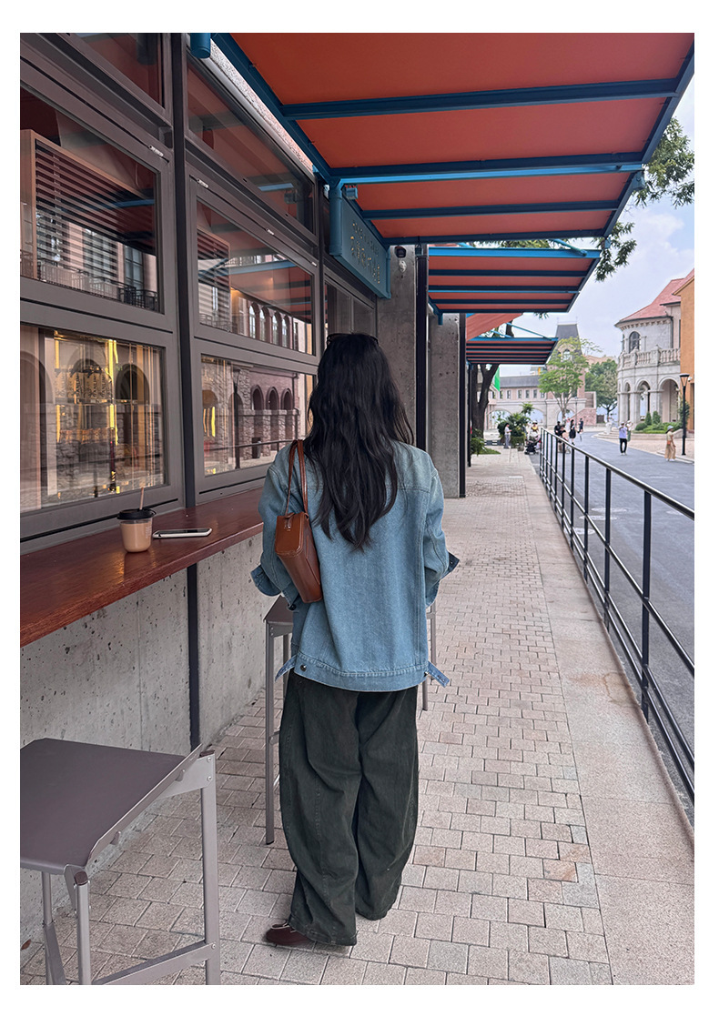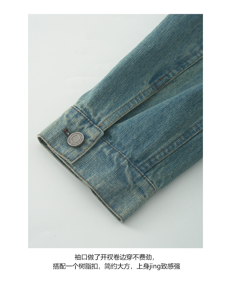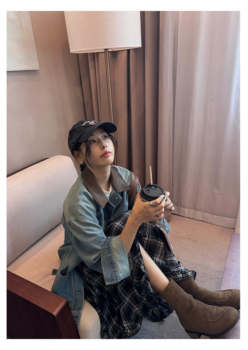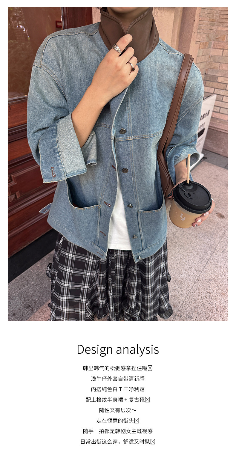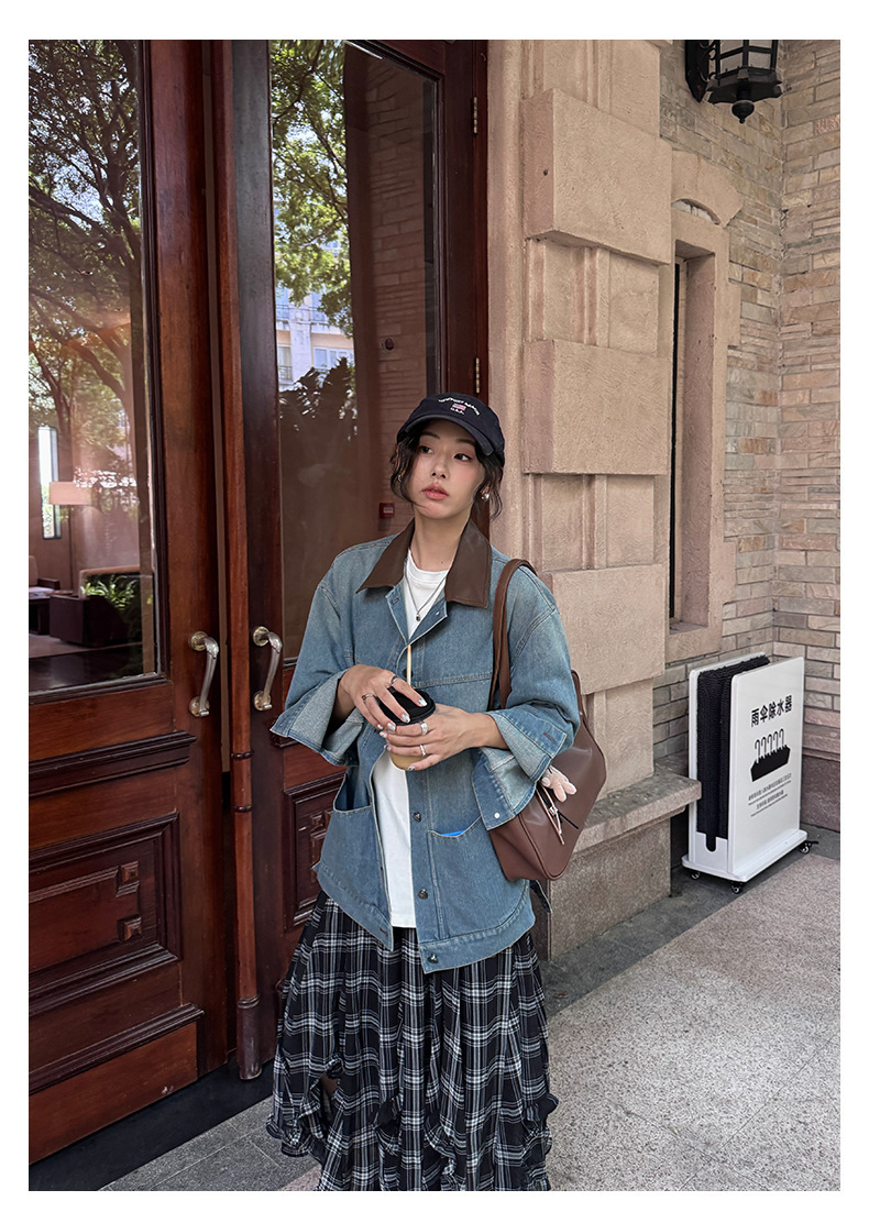 *o-ha-you*【FHZH1BB5030858】韓版復古水洗拼皮翻領工裝牛仔外套百搭夾克上衣