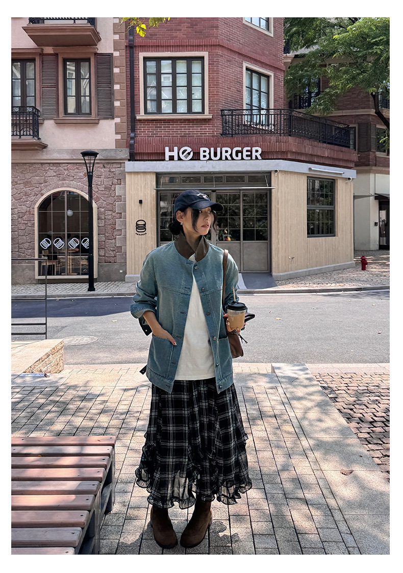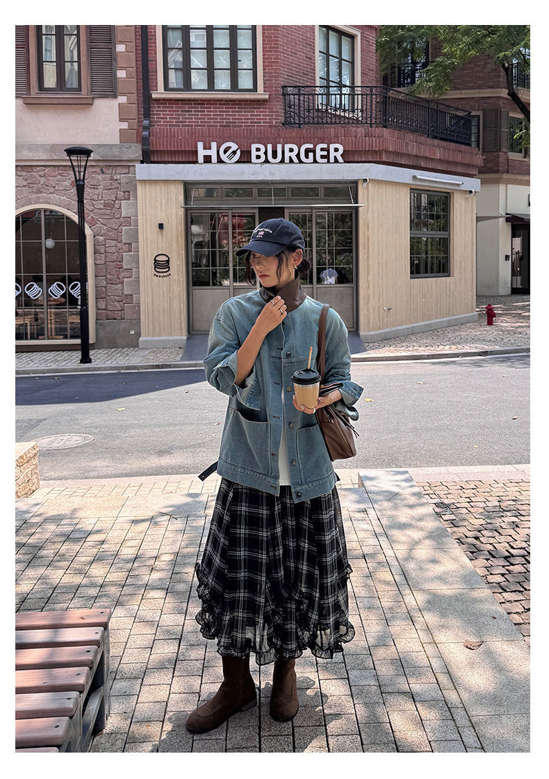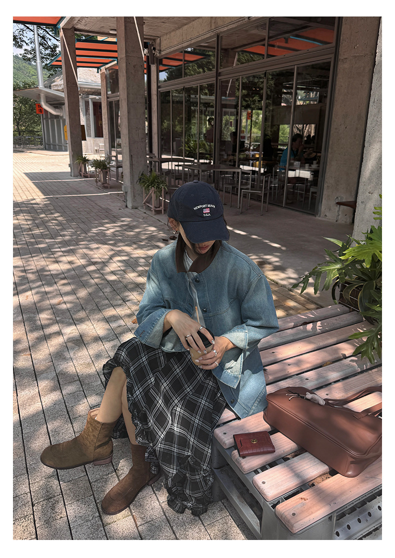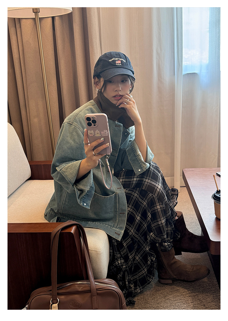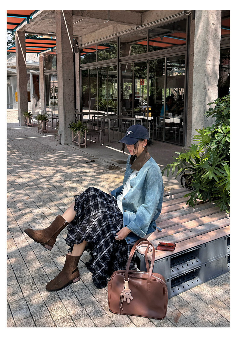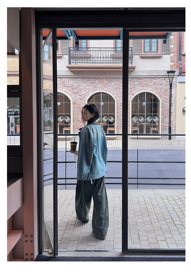 *o-ha-you*【FHZH1BB5030858】韓版復古水洗拼皮翻領工裝牛仔外套百搭夾克上衣