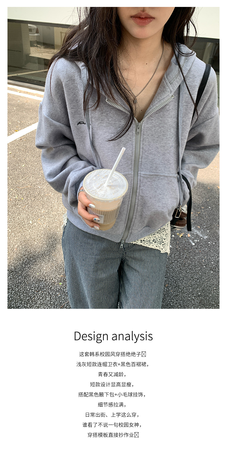 *o-ha-you*【FHZH1BB5030880】早秋穿搭上衣刺繡連帽衛衣韓版休閒百搭通勤上衣