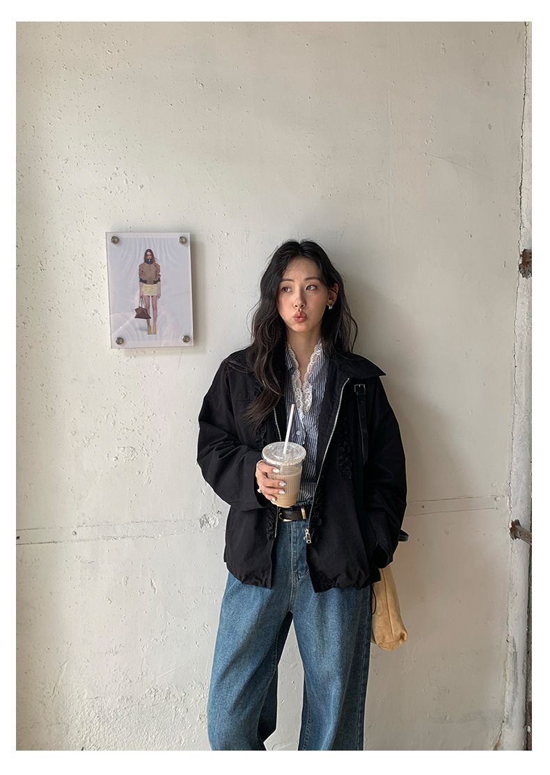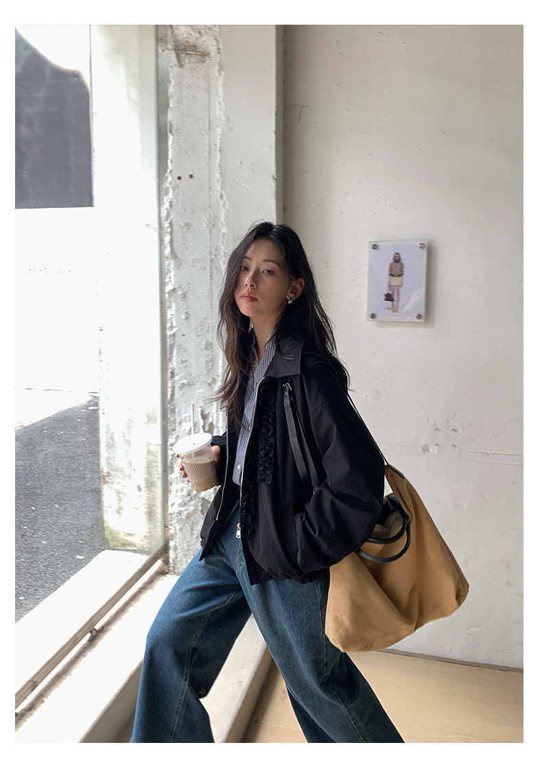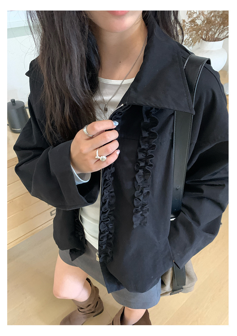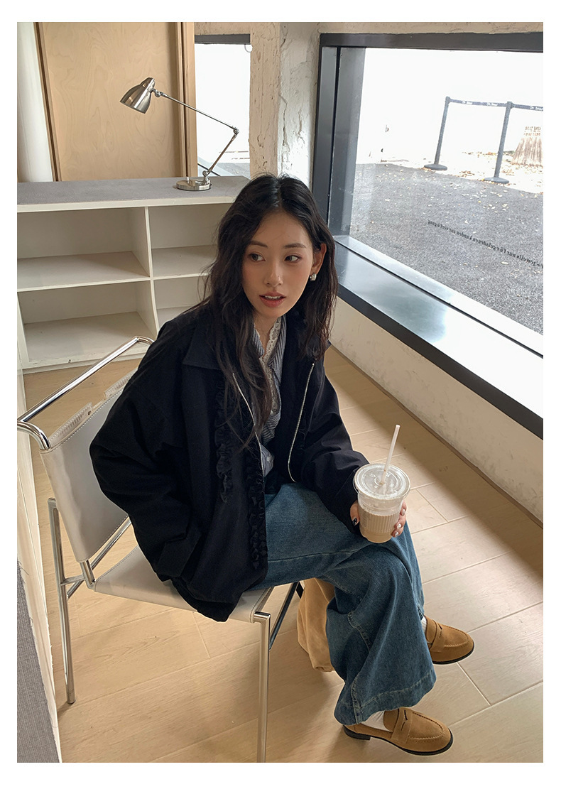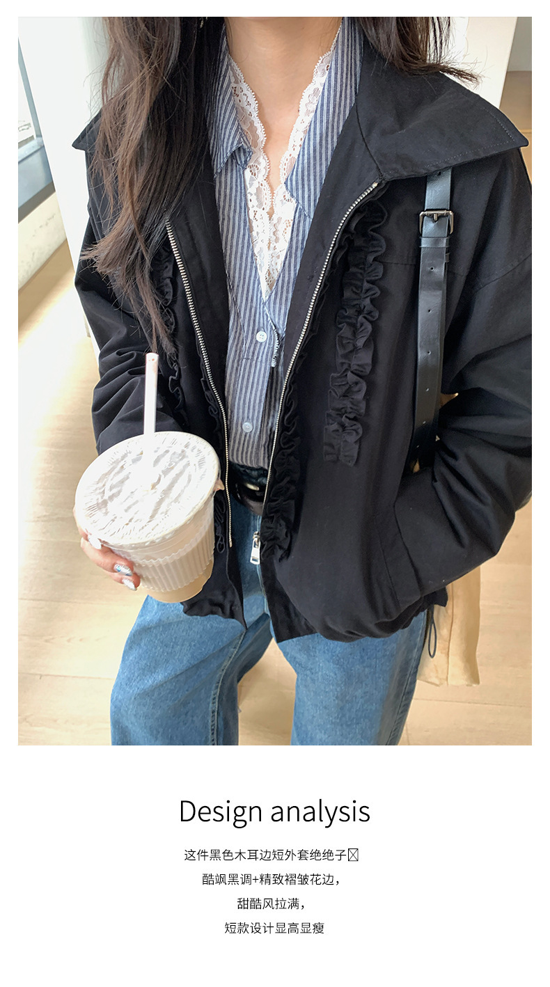 *o-ha-you*【FHZH1BB5030888】早秋韓系外套翻領木耳邊設計拉鍊外套下擺鬆緊夾克