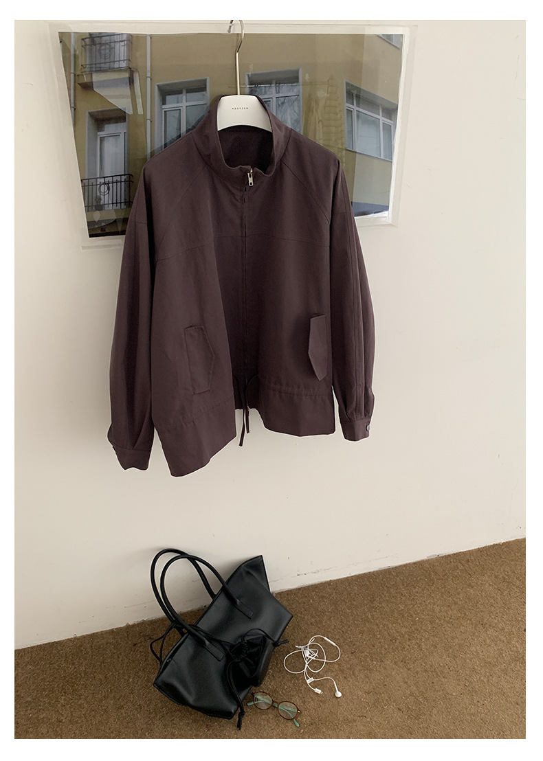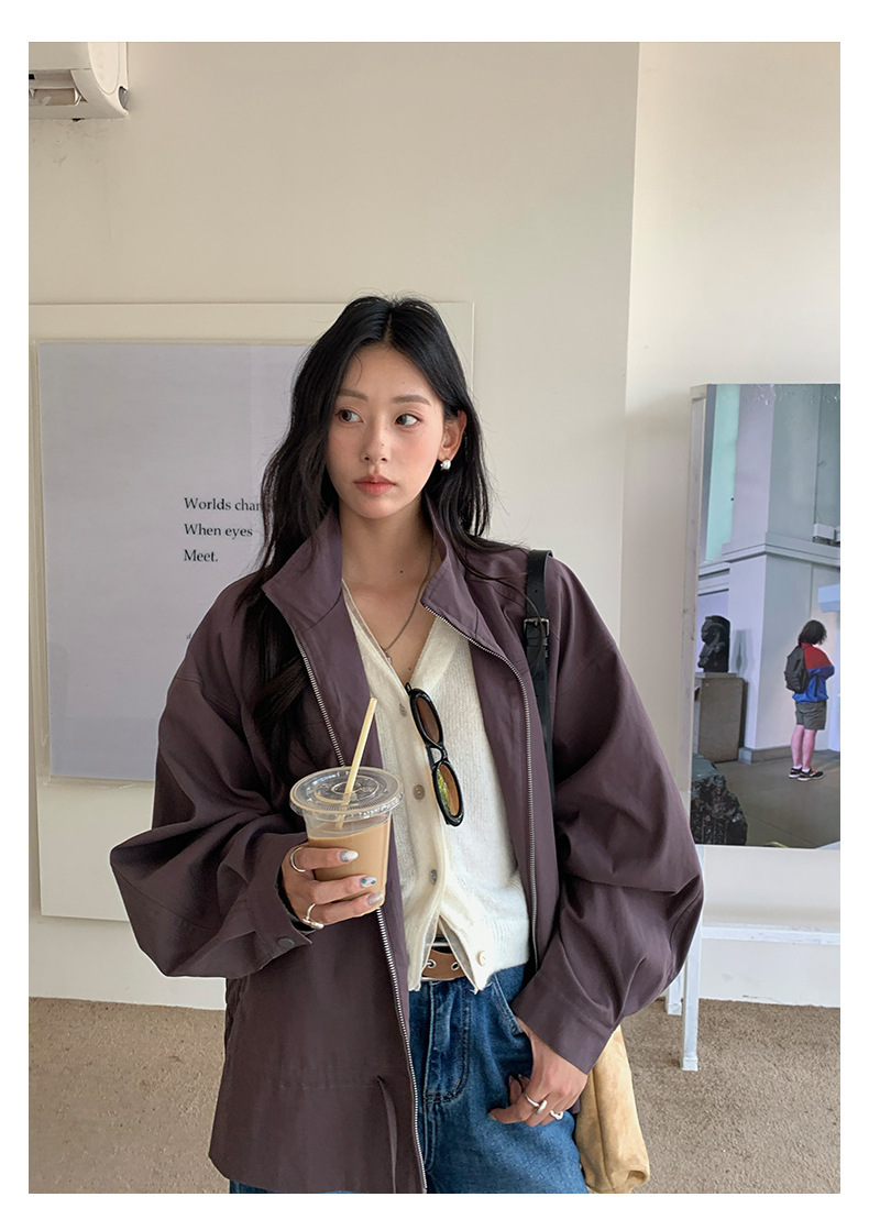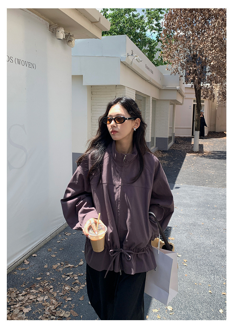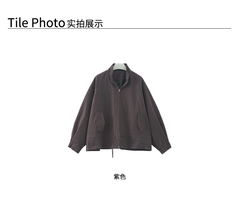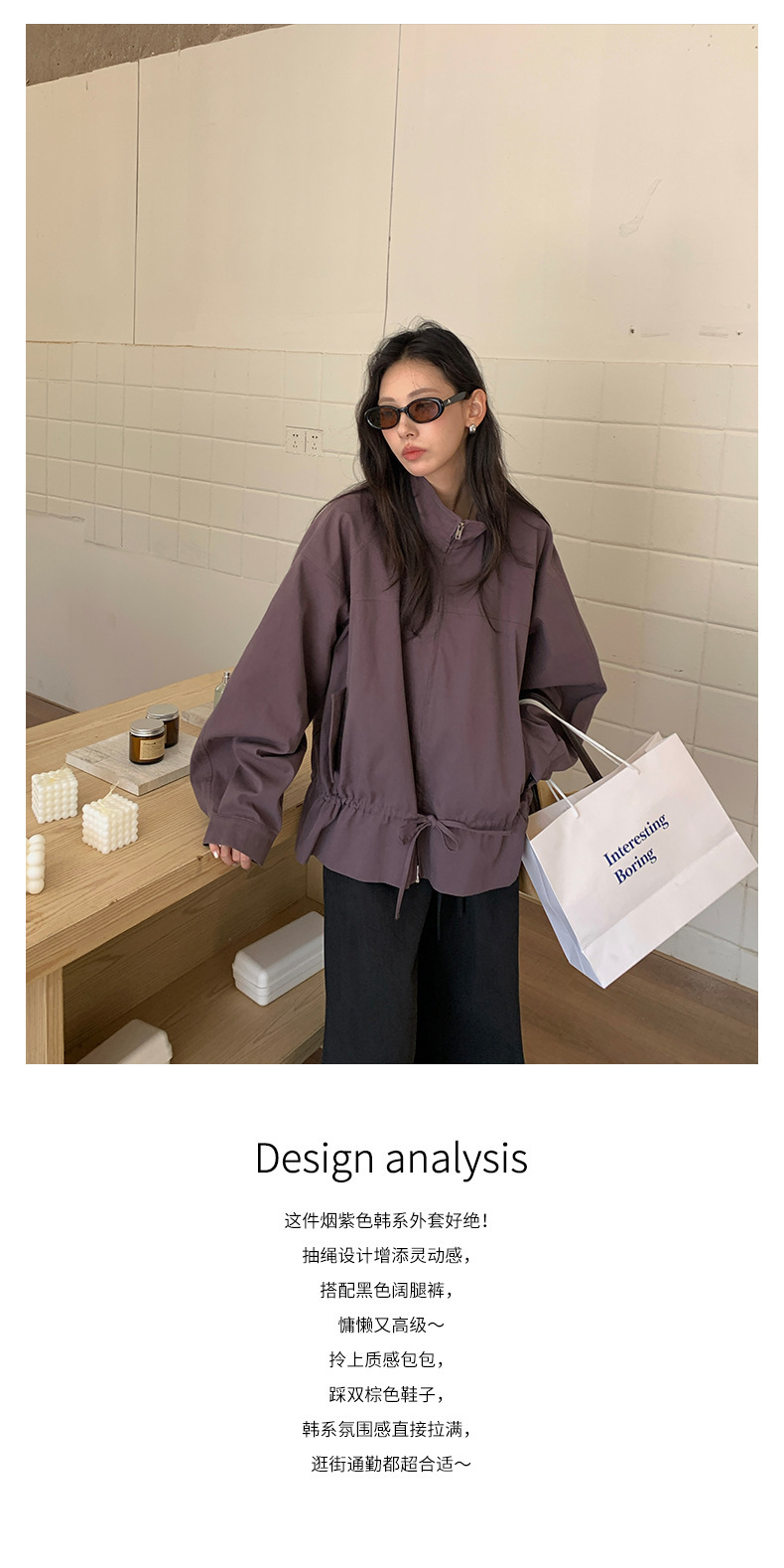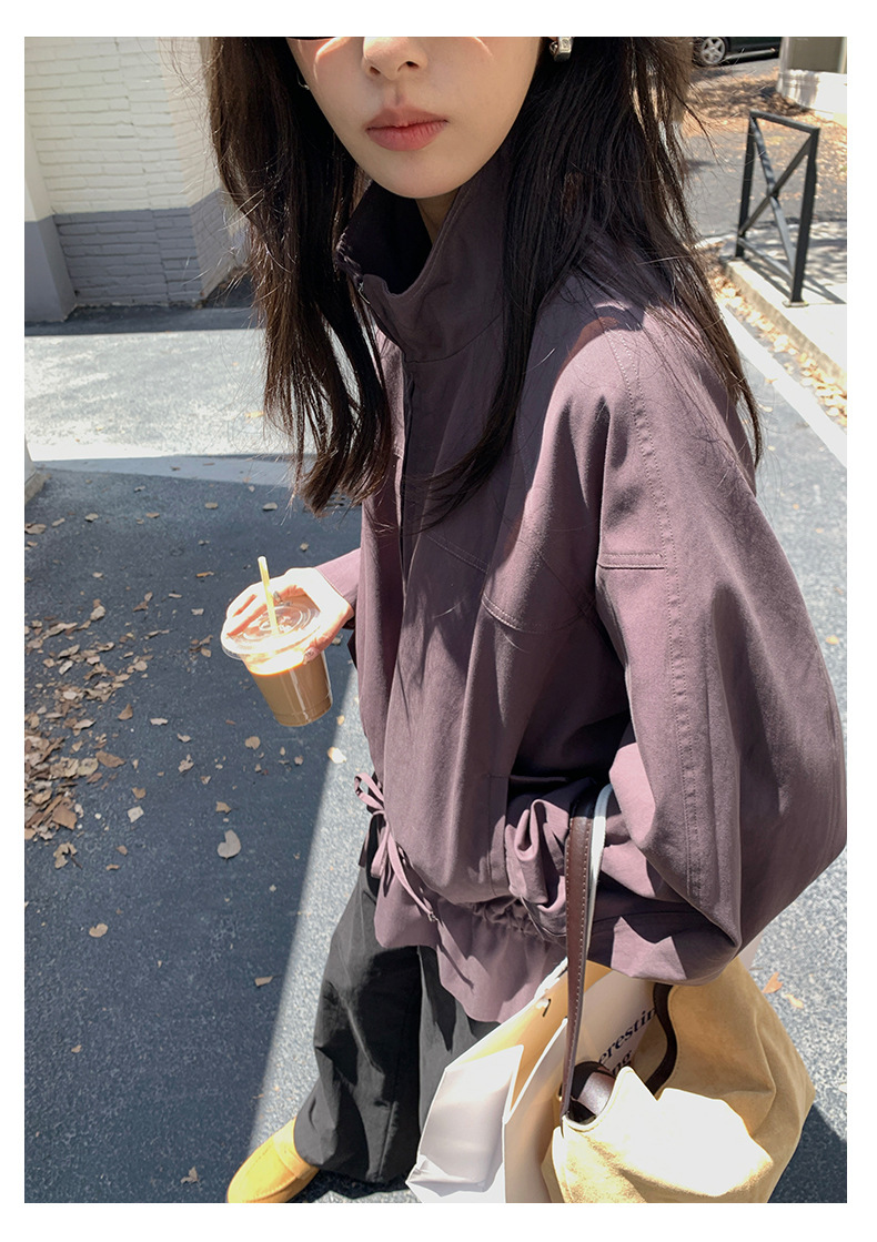 *o-ha-you*【FHZH1BB5030910】秋韓版水洗做舊寬鬆立領短夾克外套抽身收腰顯瘦