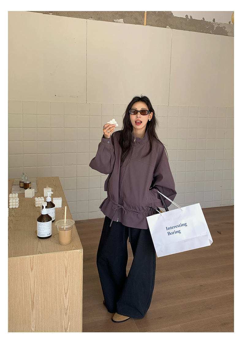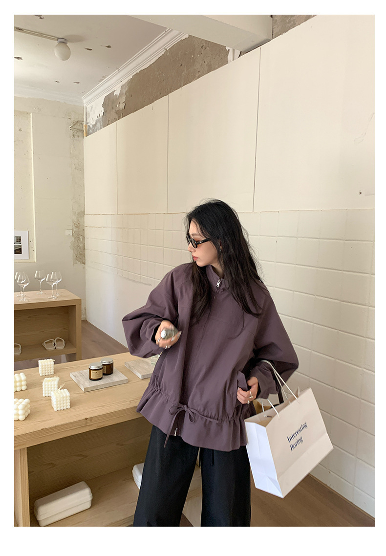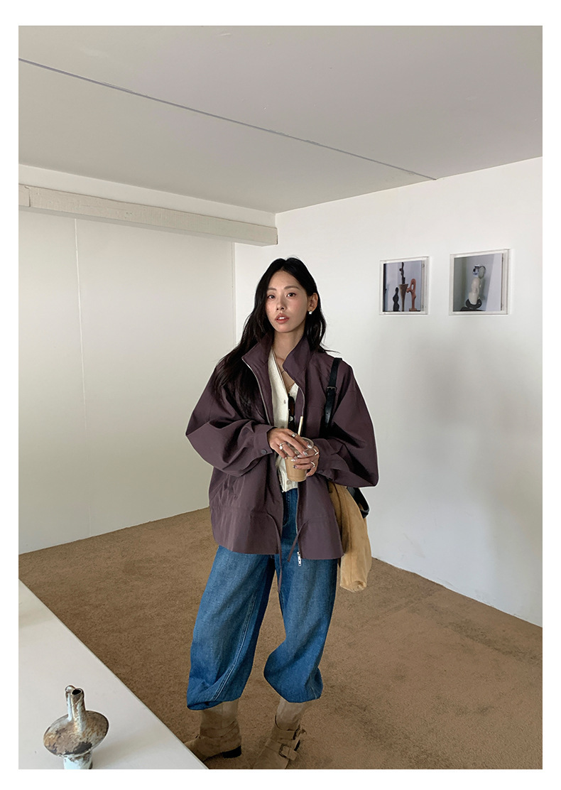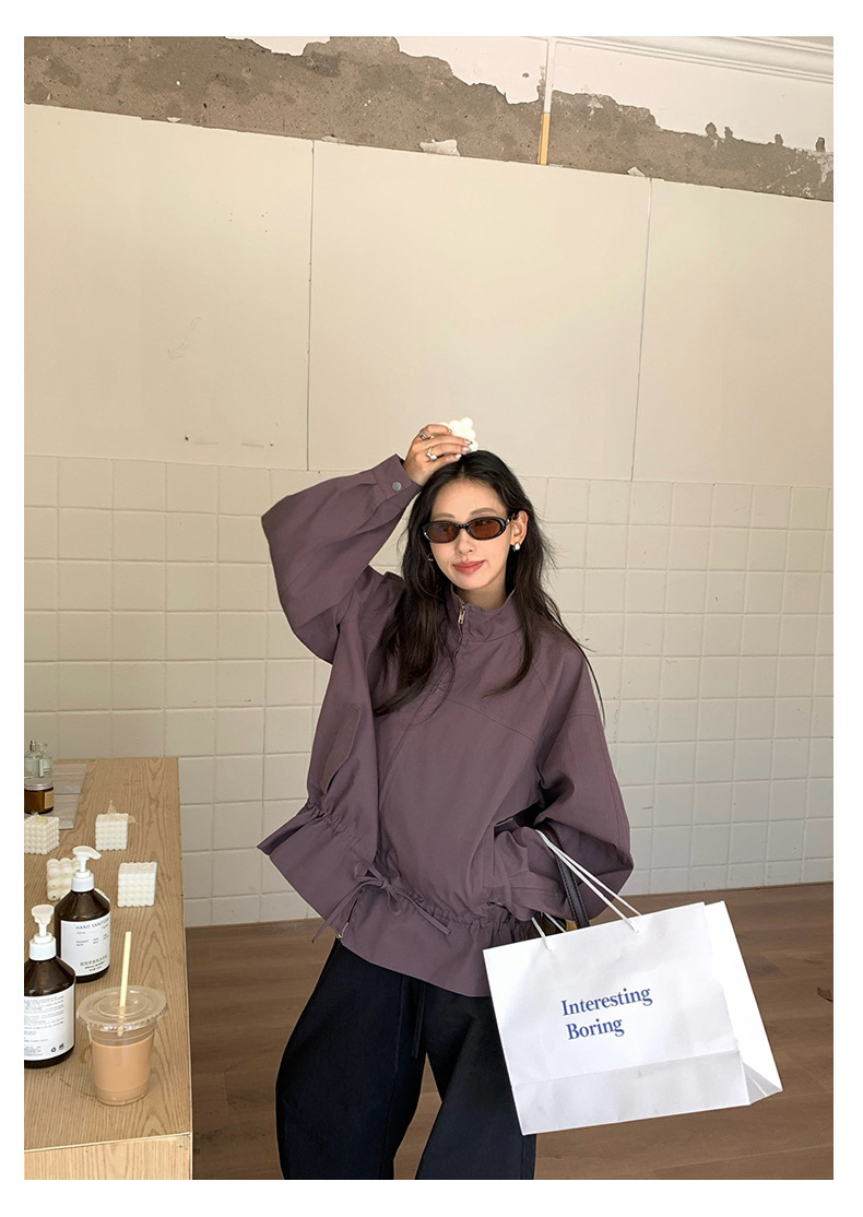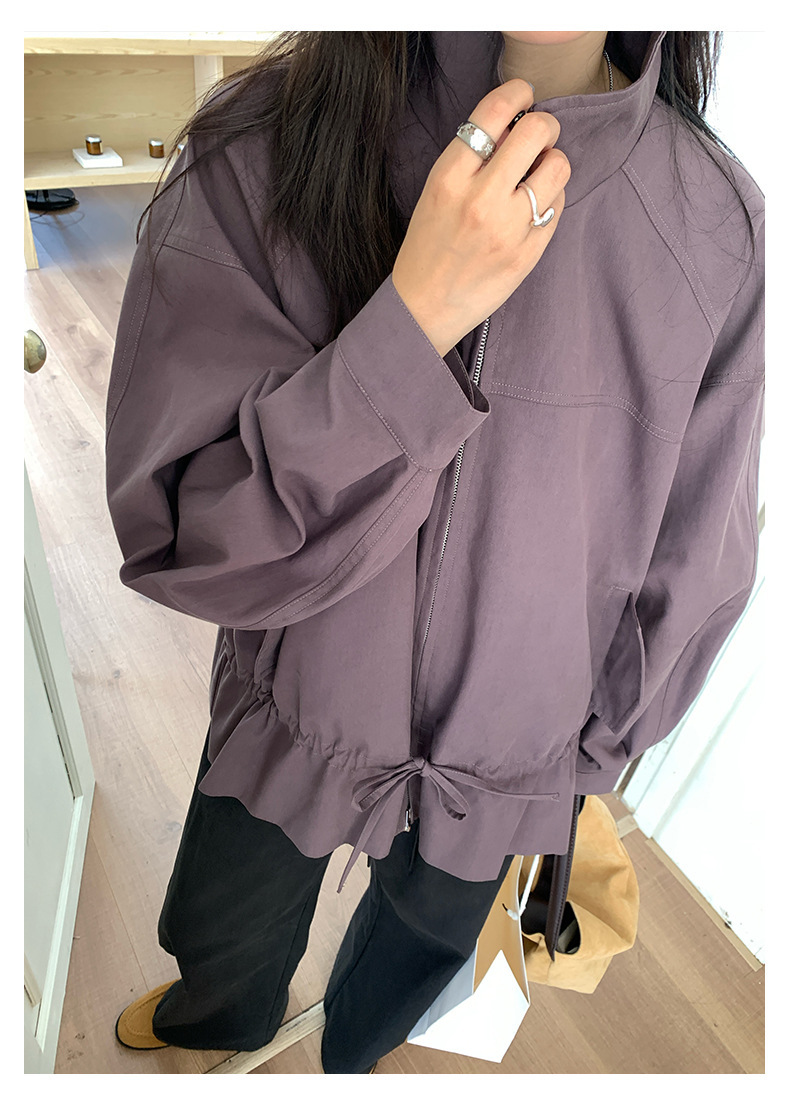 *o-ha-you*【FHZH1BB5030910】秋韓版水洗做舊寬鬆立領短夾克外套抽身收腰顯瘦
