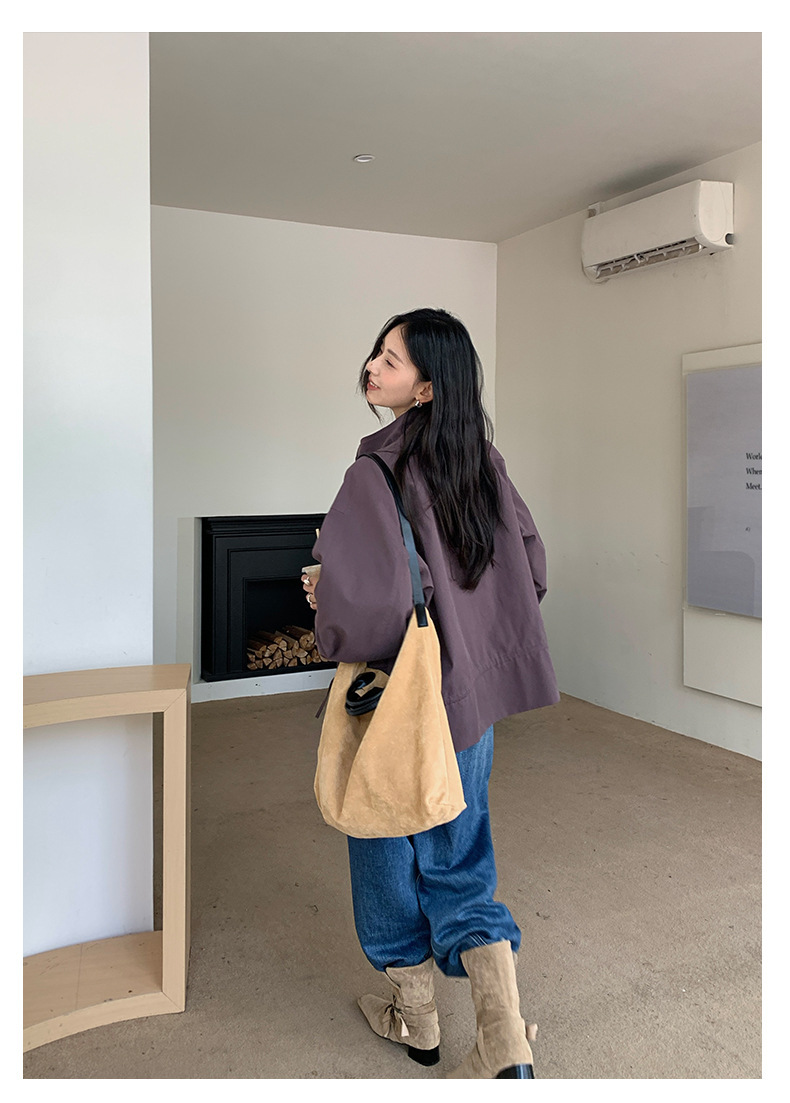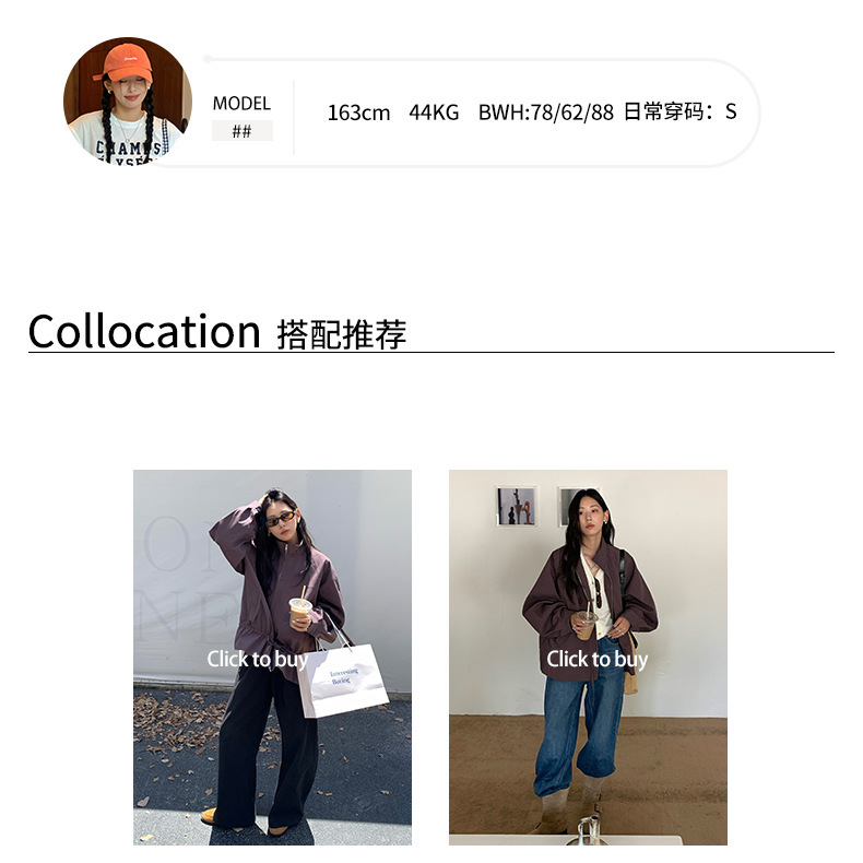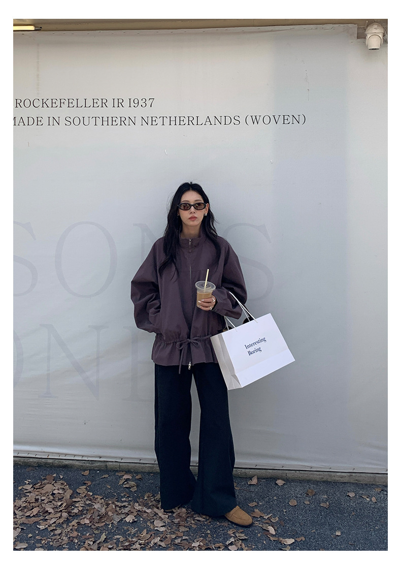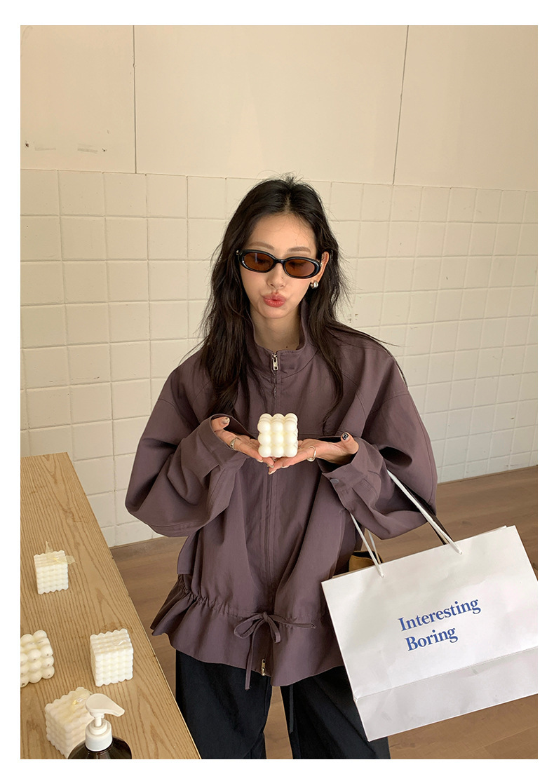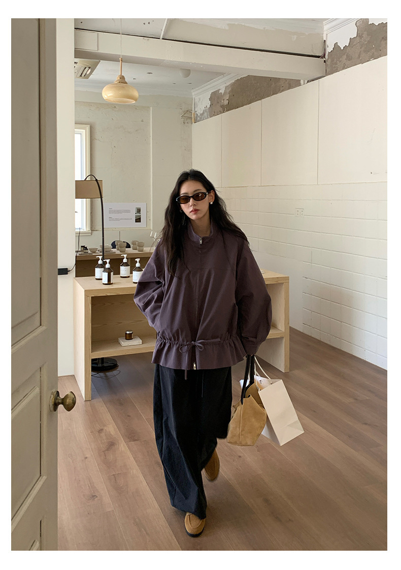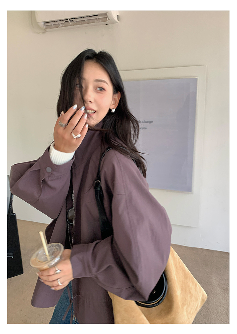 *o-ha-you*【FHZH1BB5030910】秋韓版水洗做舊寬鬆立領短夾克外套抽身收腰顯瘦