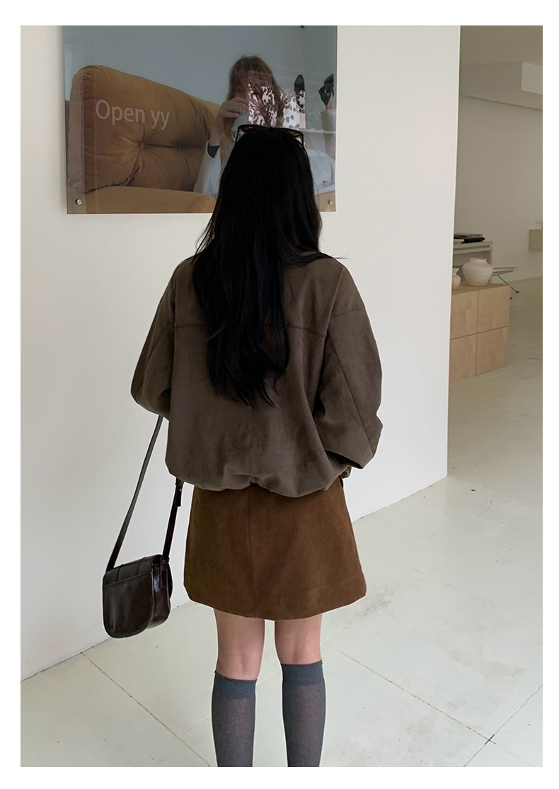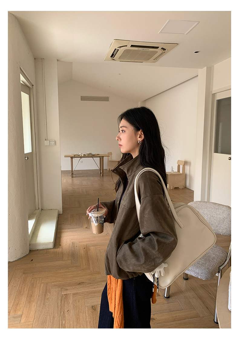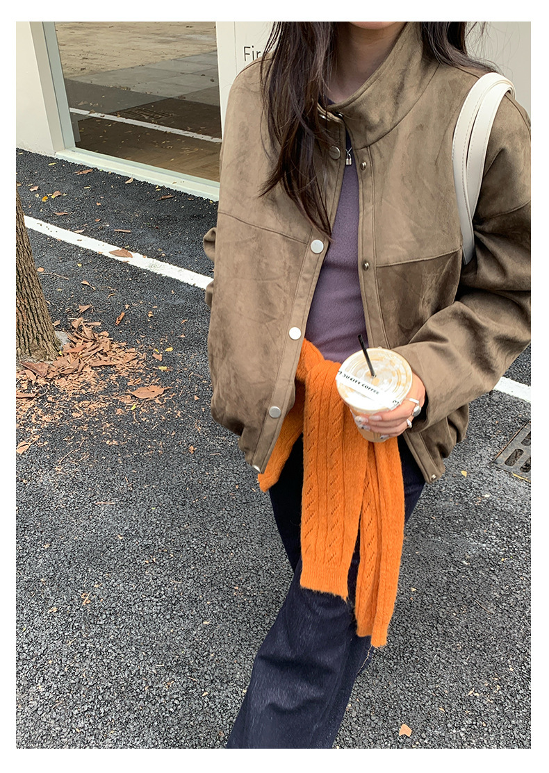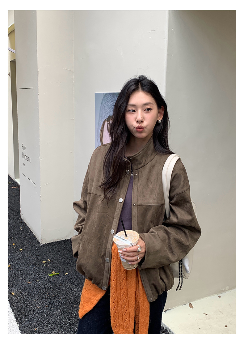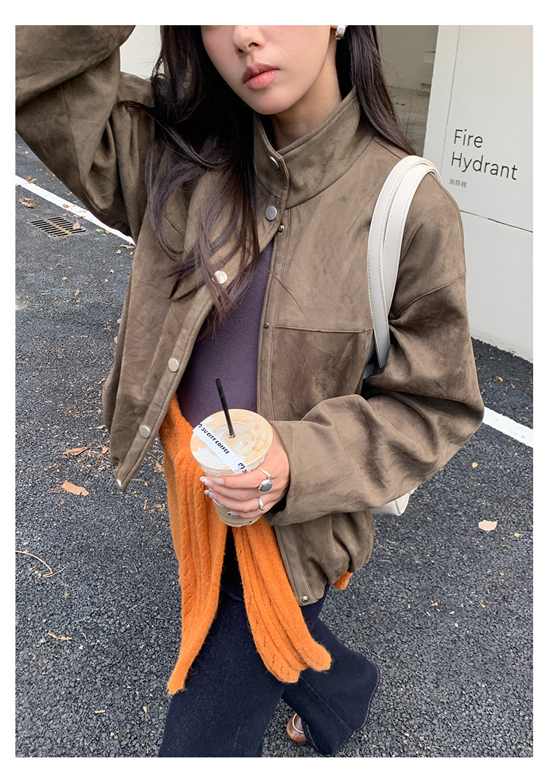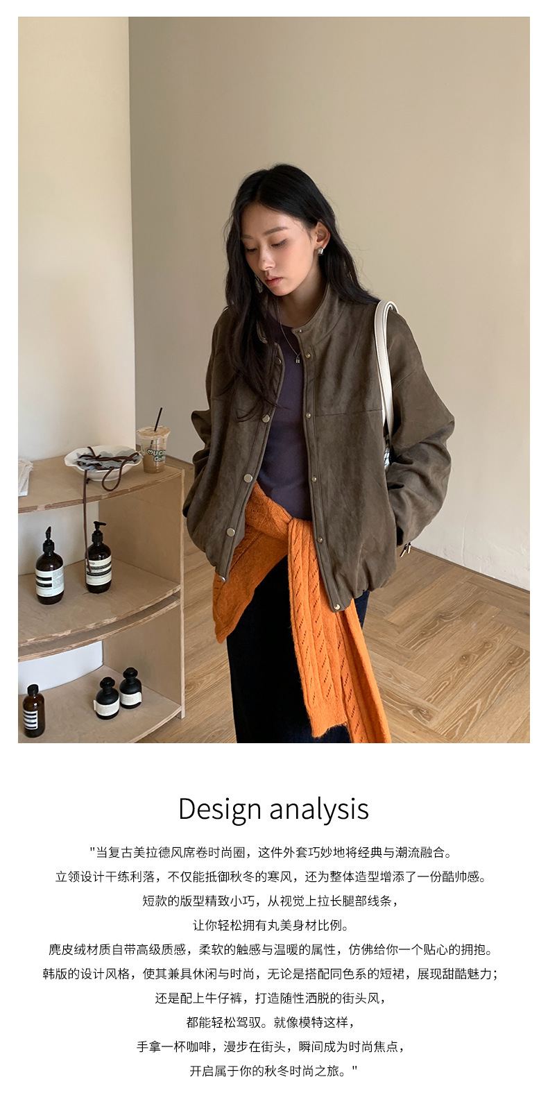 *o-ha-you*【FHZH1BB5030938】復古美拉德立領麂皮絨外套秋冬韓版短版機車夾克上衣