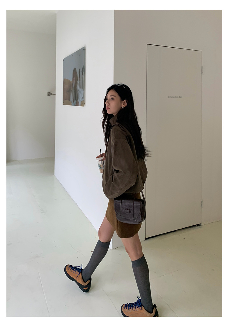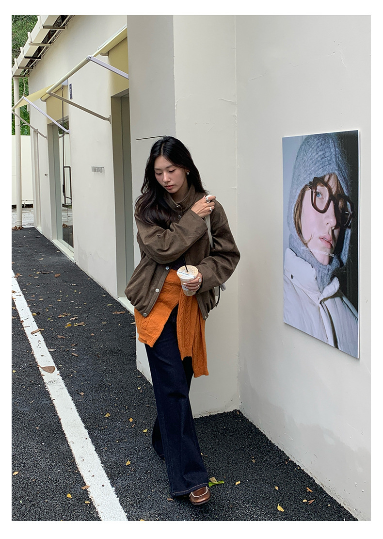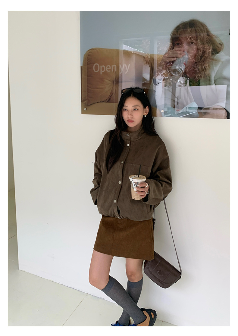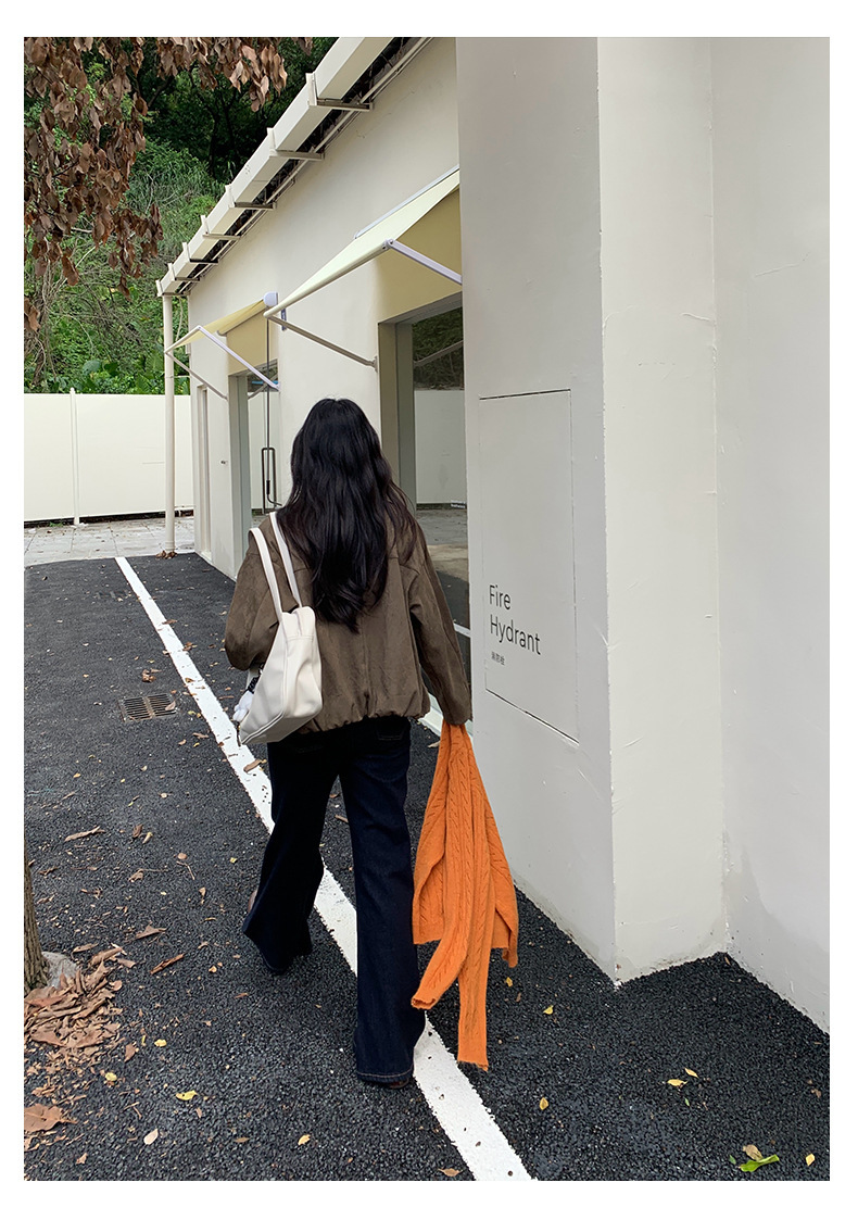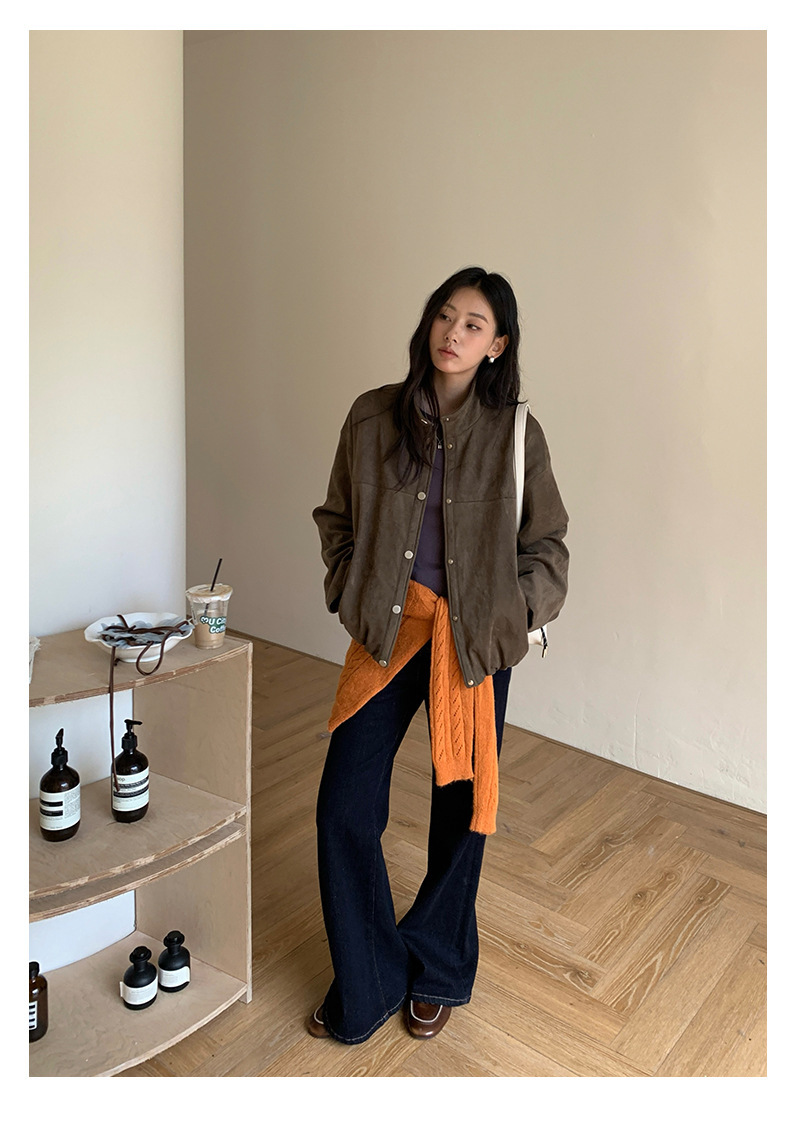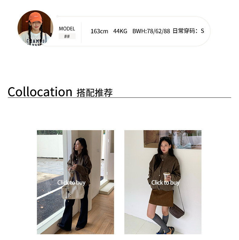 *o-ha-you*【FHZH1BB5030938】復古美拉德立領麂皮絨外套秋冬韓版短版機車夾克上衣