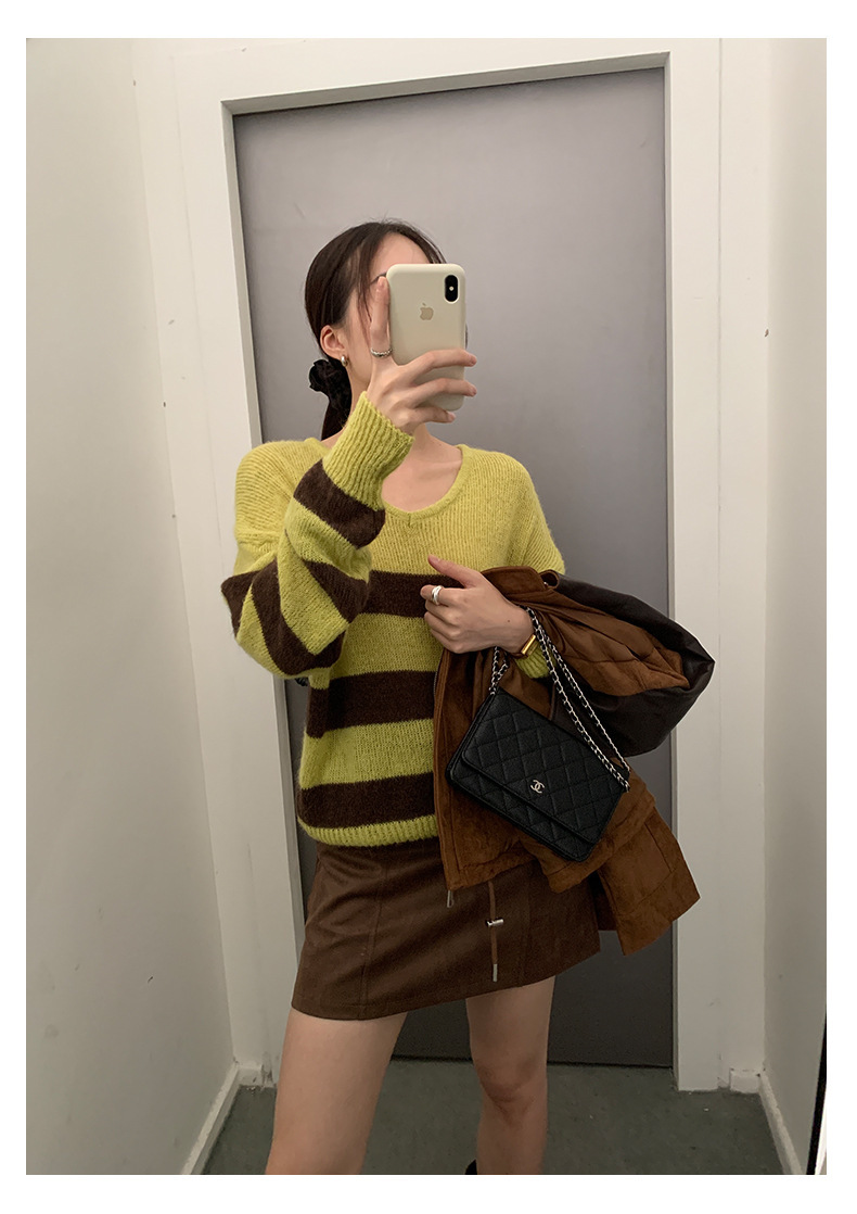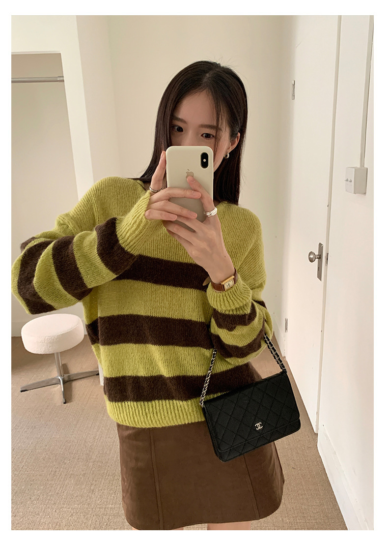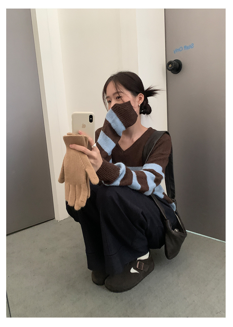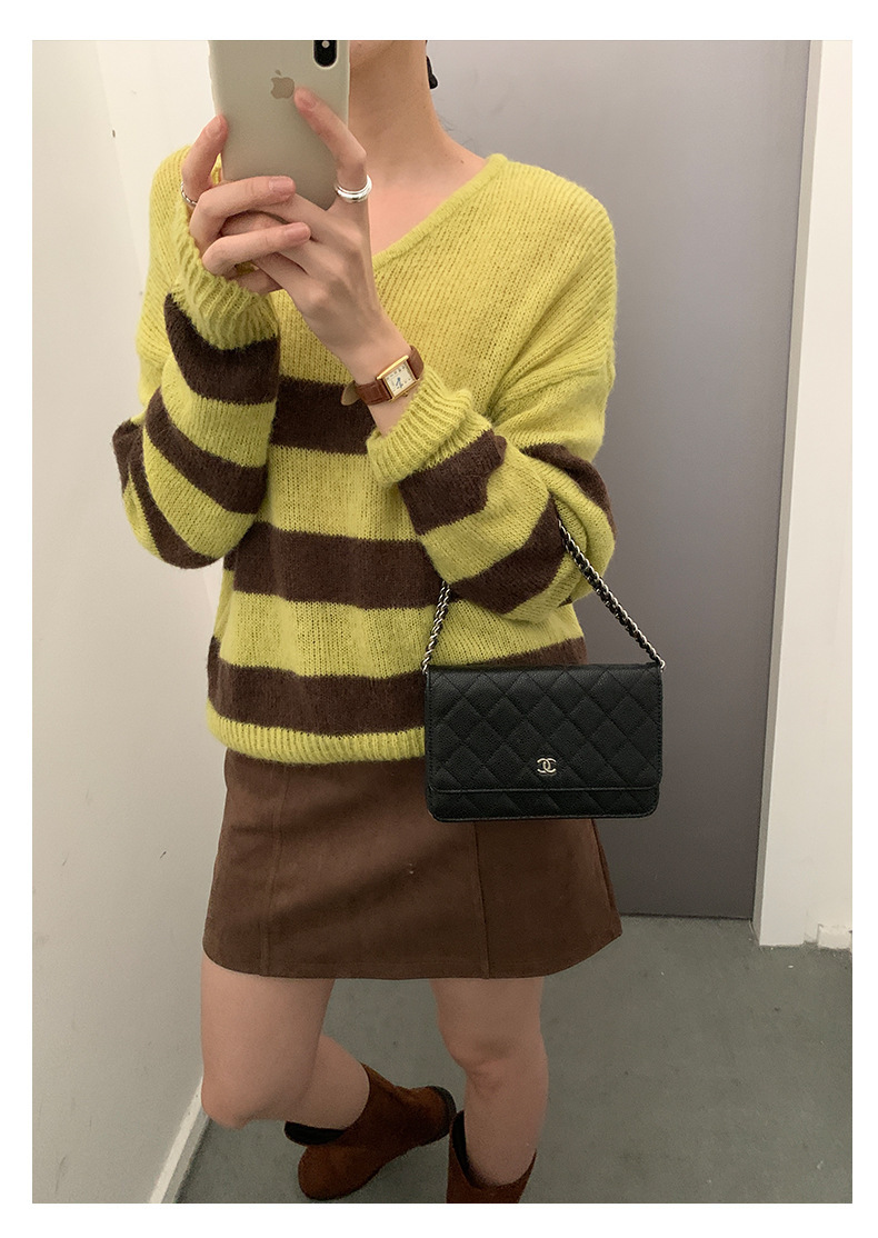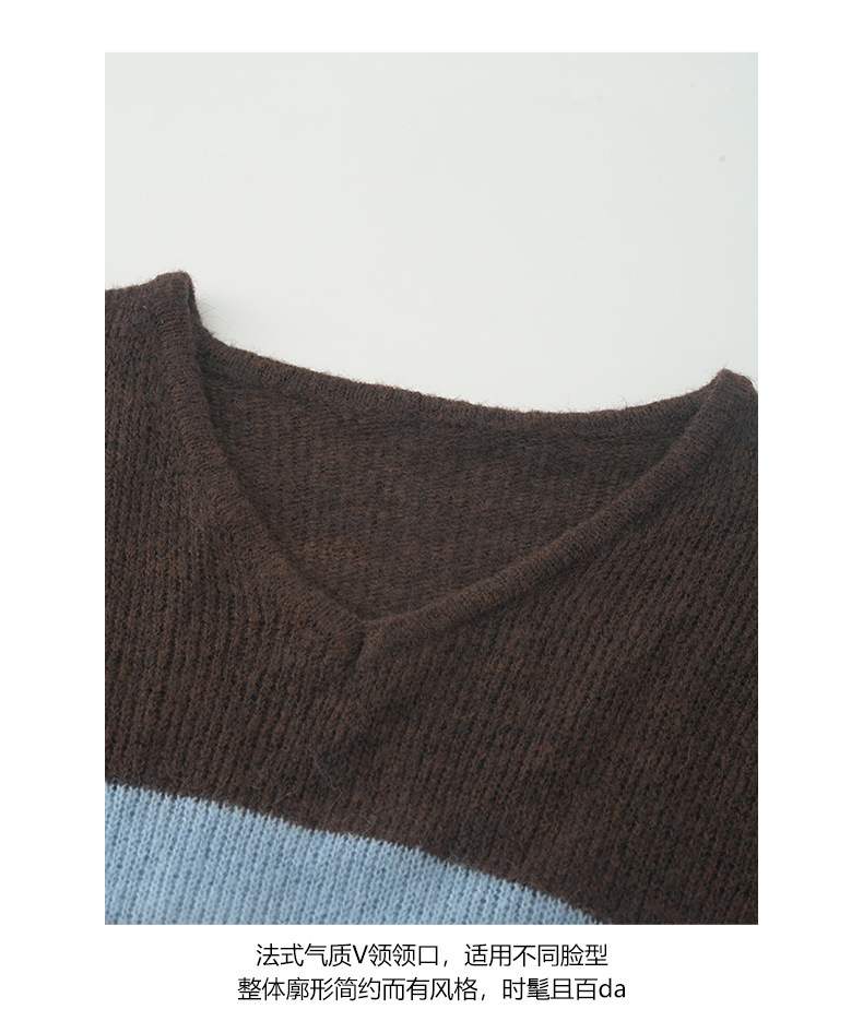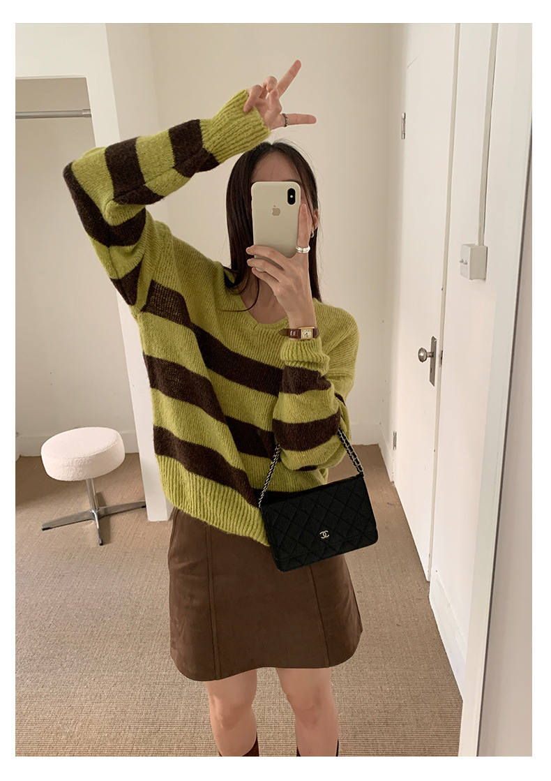 *o-ha-you*【FHZH1BB5041008】韓系慵懶風條紋撞色V領毛衣女2025冬寬鬆休閒長袖上衣-2色
