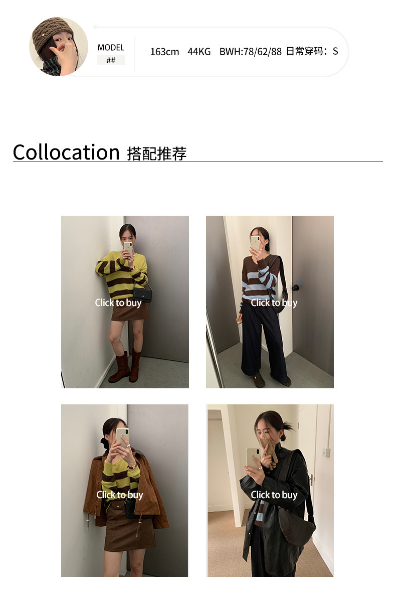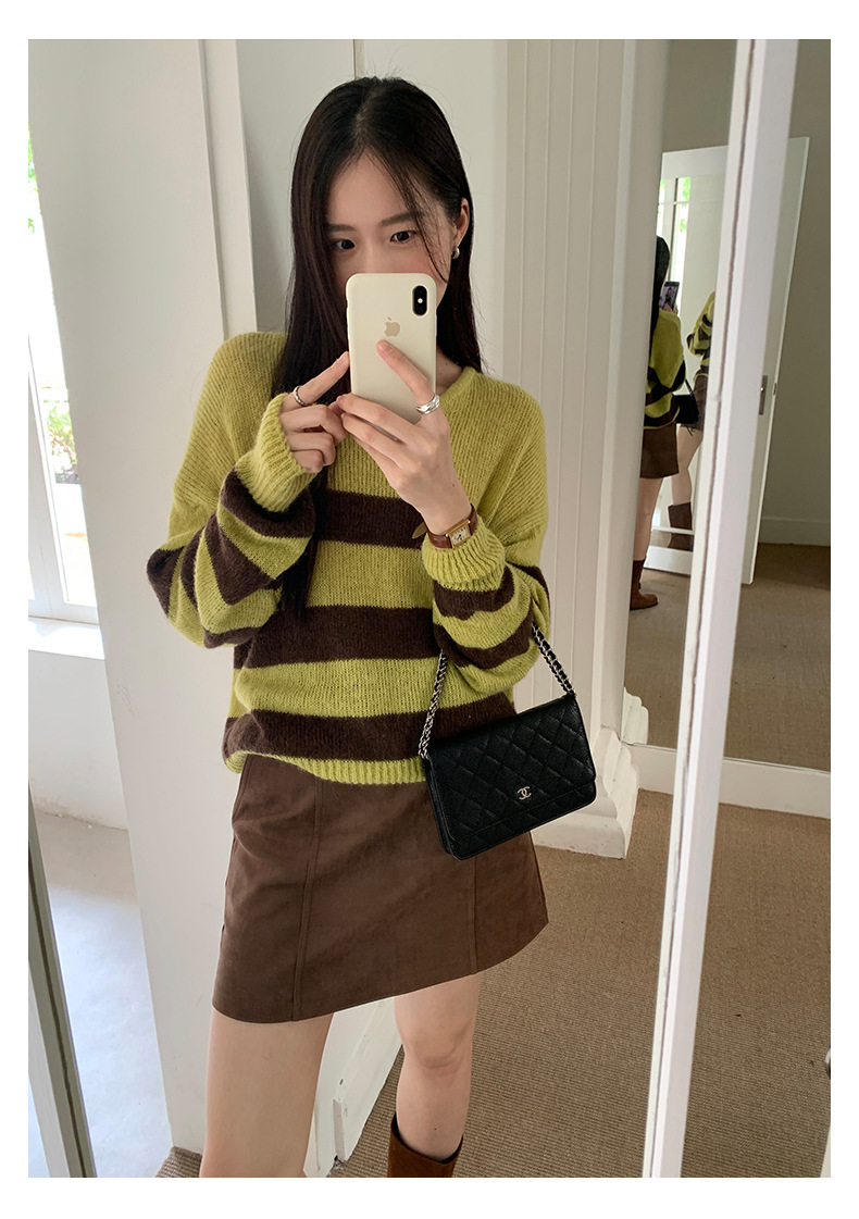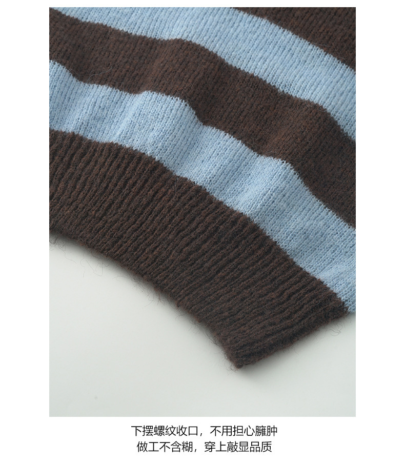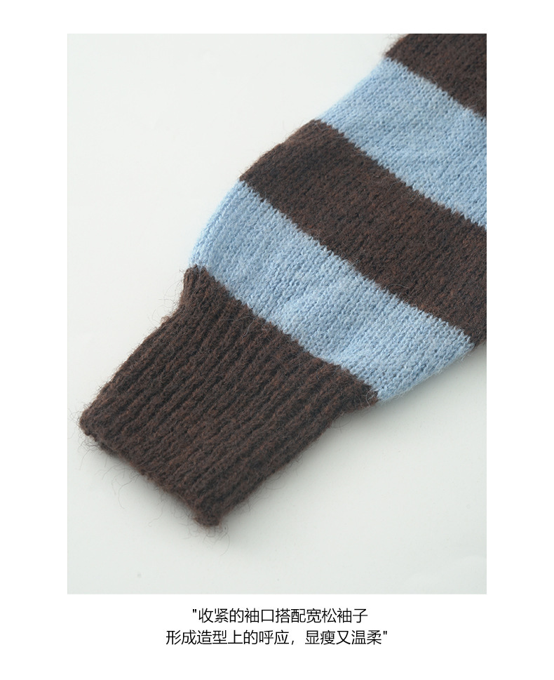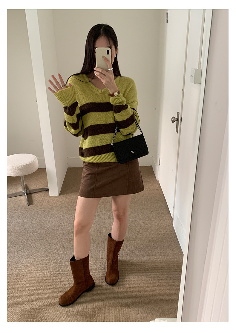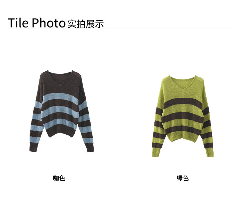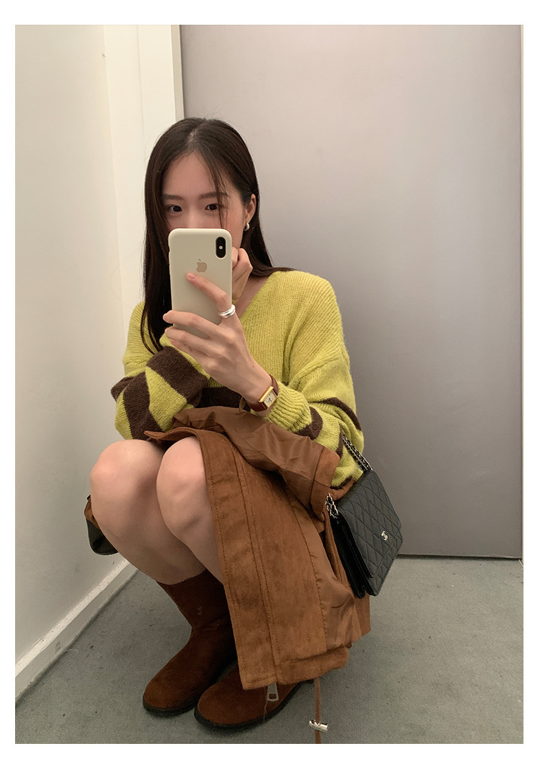 *o-ha-you*【FHZH1BB5041008】韓系慵懶風條紋撞色V領毛衣女2025冬寬鬆休閒長袖上衣-2色