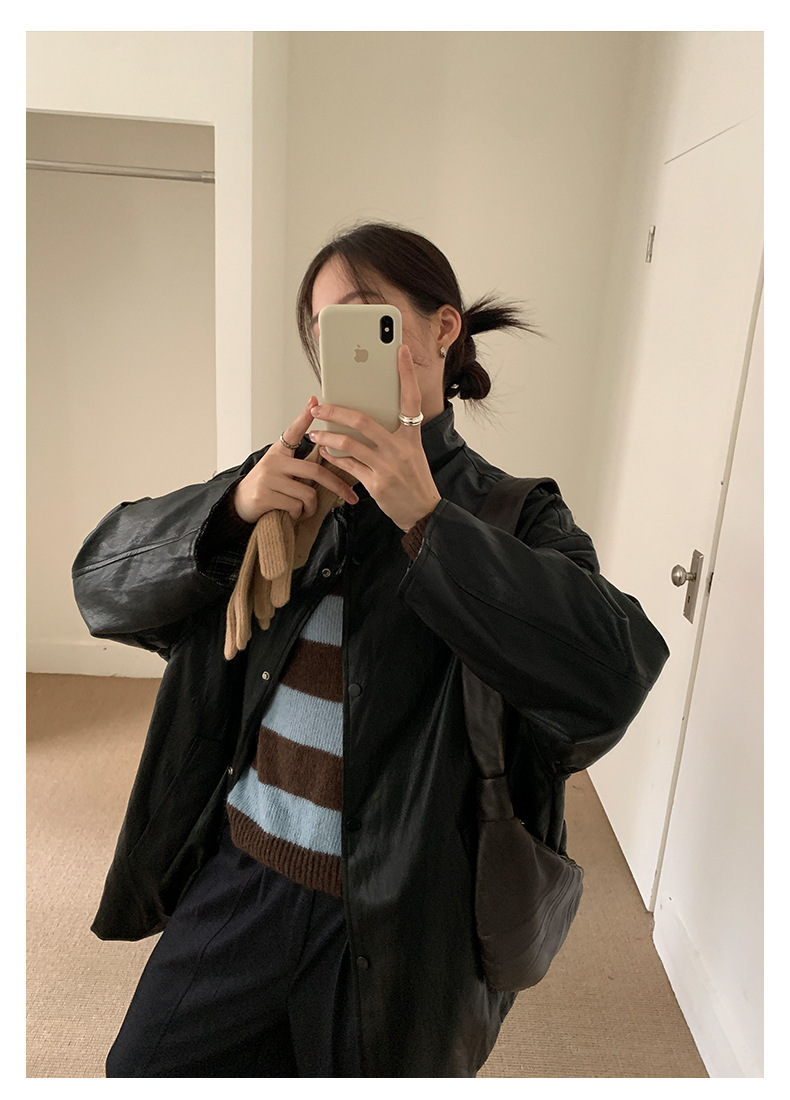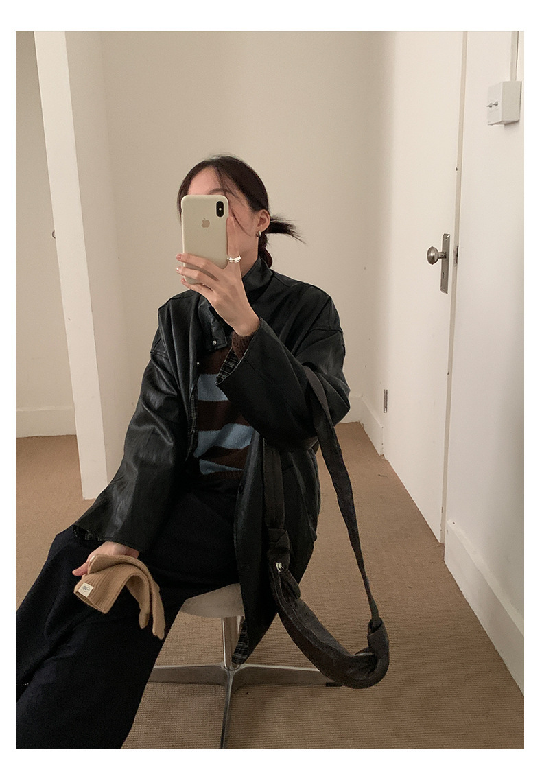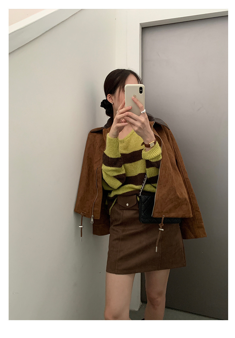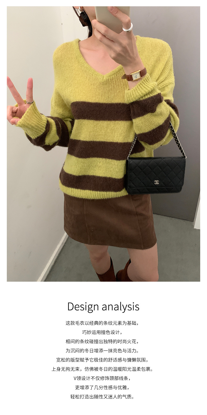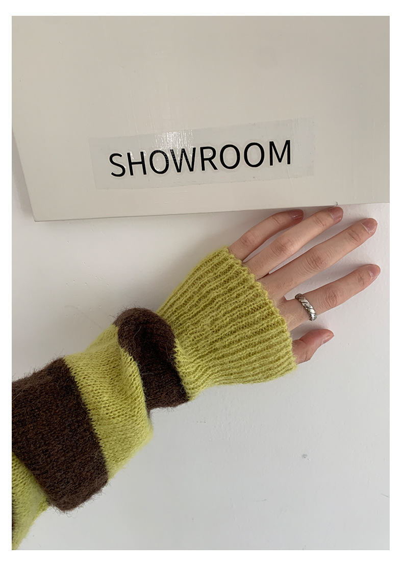 *o-ha-you*【FHZH1BB5041008】韓系慵懶風條紋撞色V領毛衣女2025冬寬鬆休閒長袖上衣-2色