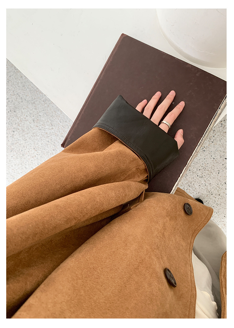 *o-ha-you*【FHZH1BB5041045】復古美拉德繫帶束腰麂皮絨外套秋冬中長款休閒氣質大衣