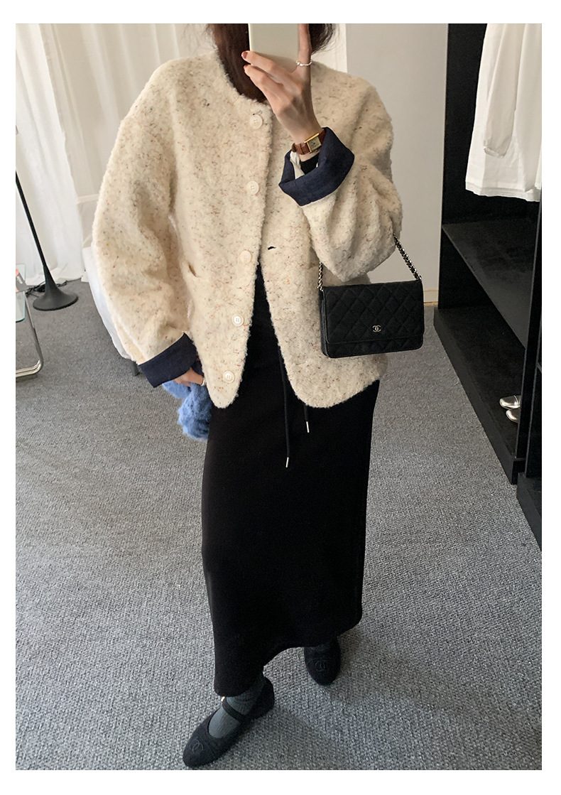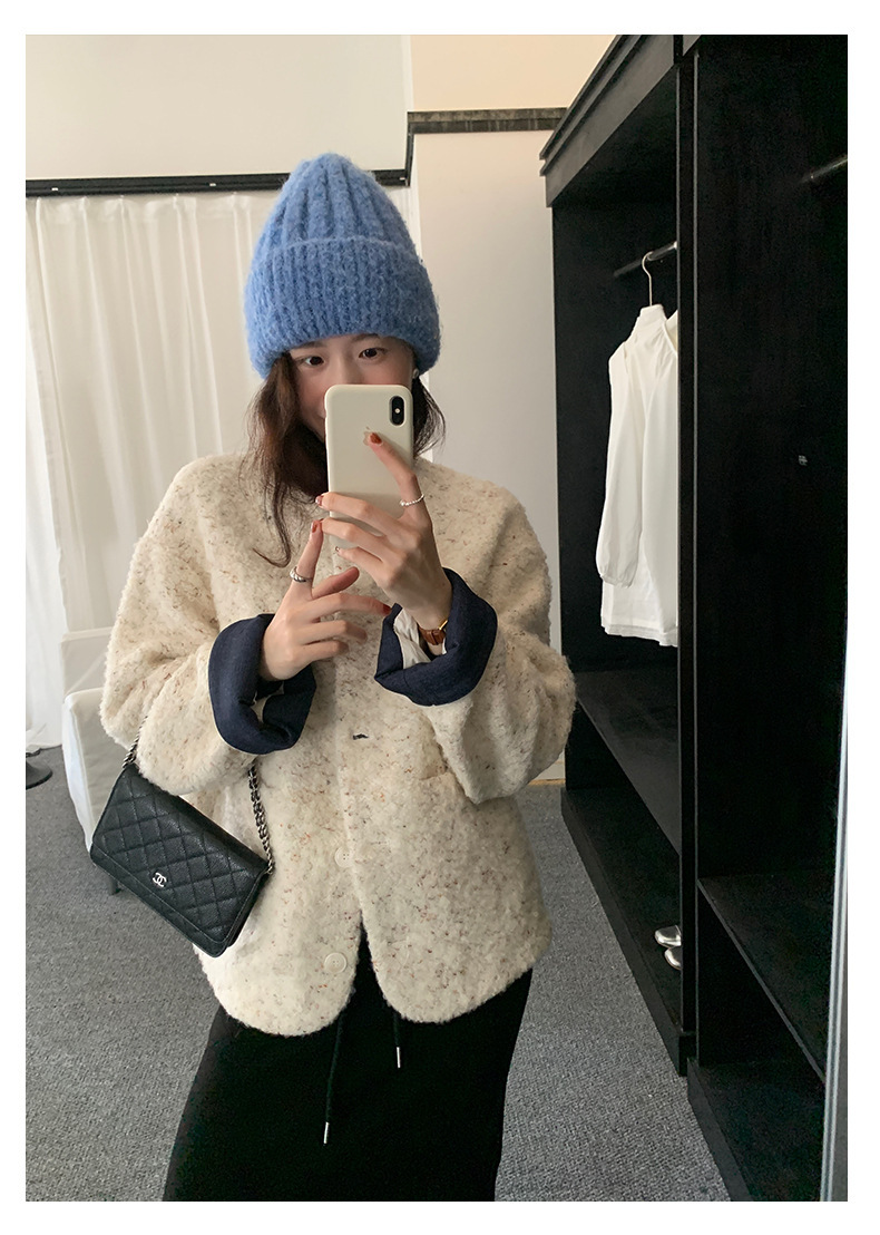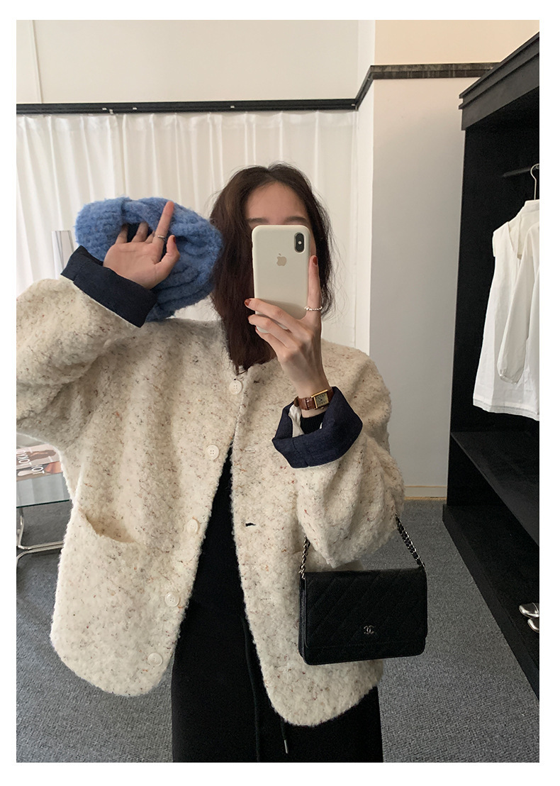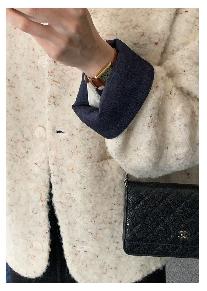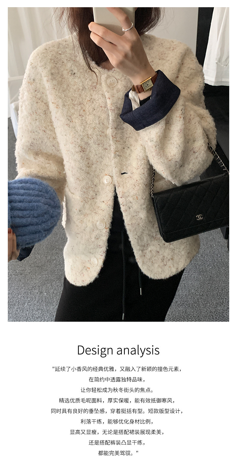 *o-ha-you*【FHZH1BB5041046】韓系袖口撞色設計小香風外套秋冬新款休閒氣質毛呢大衣