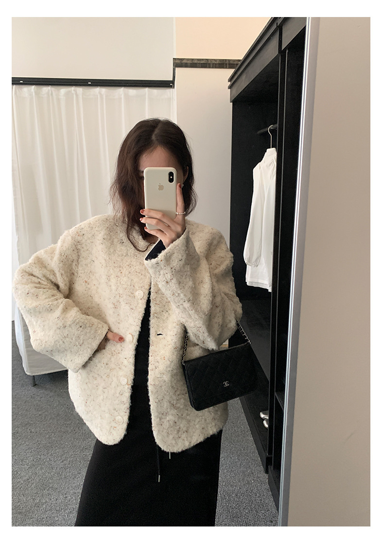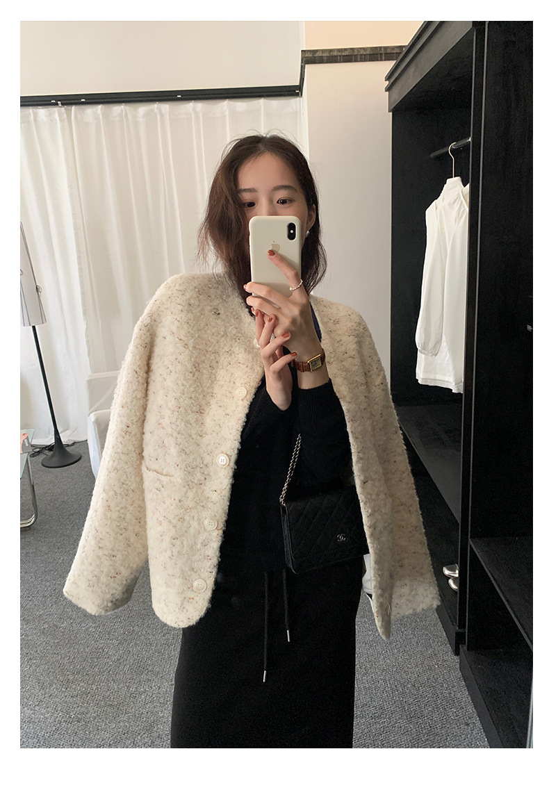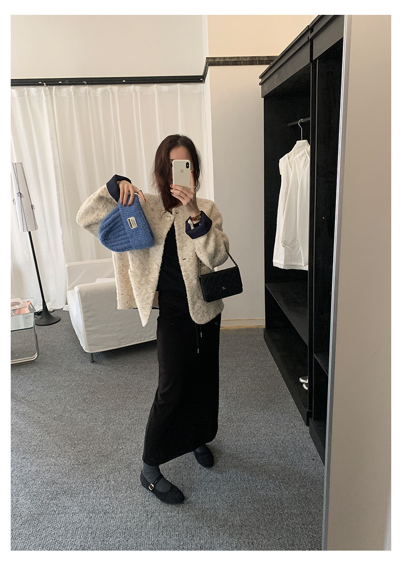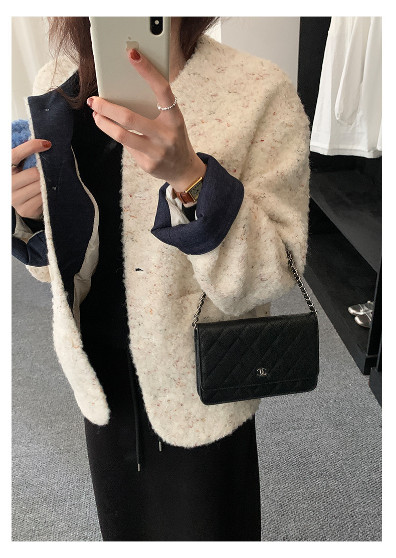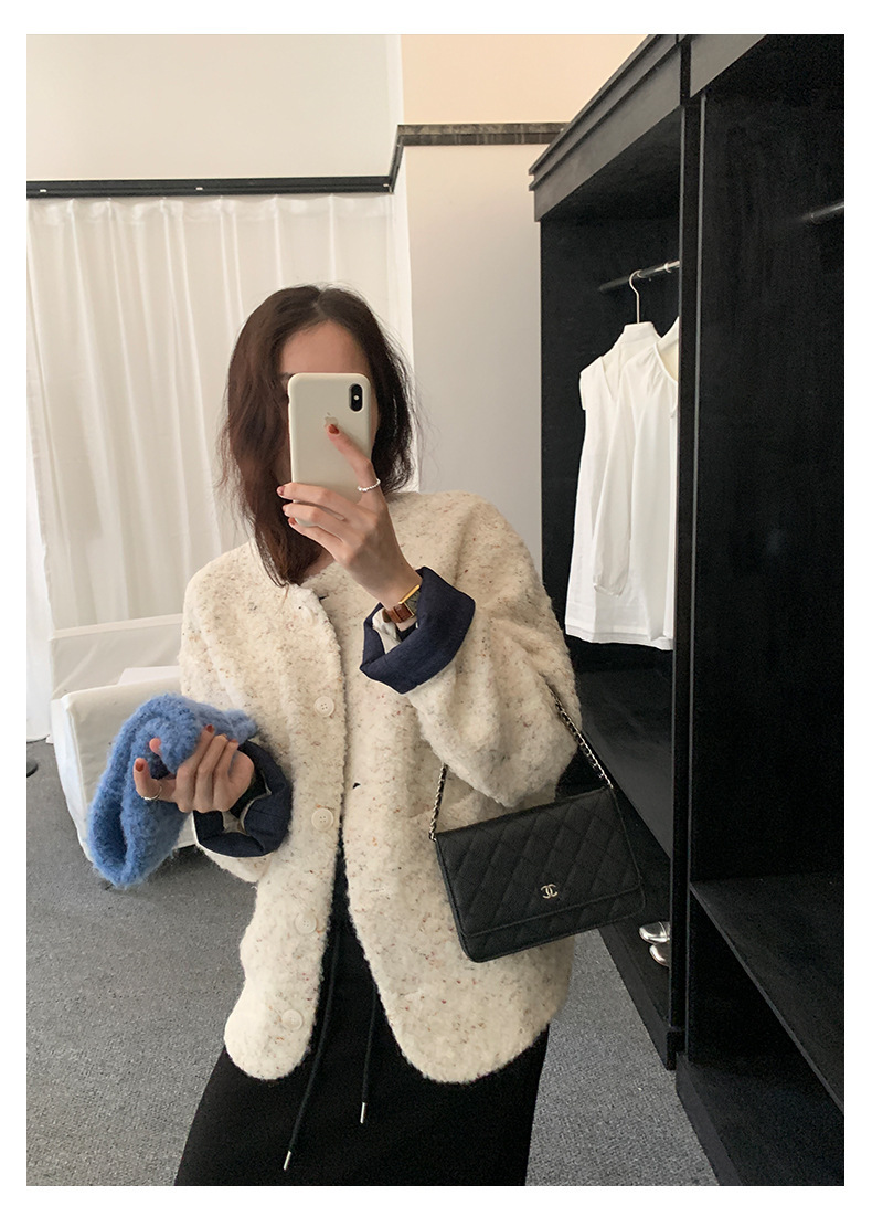 *o-ha-you*【FHZH1BB5041046】韓系袖口撞色設計小香風外套秋冬新款休閒氣質毛呢大衣