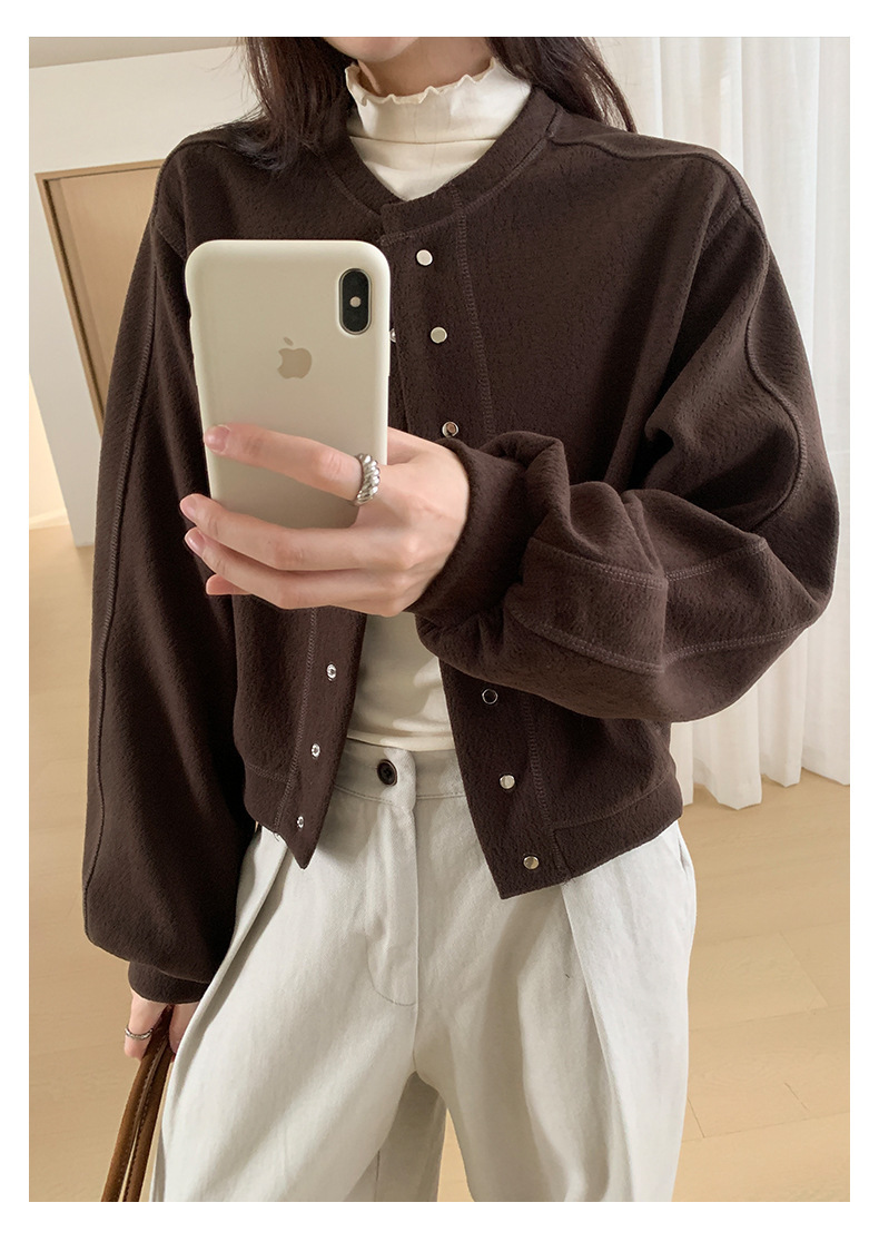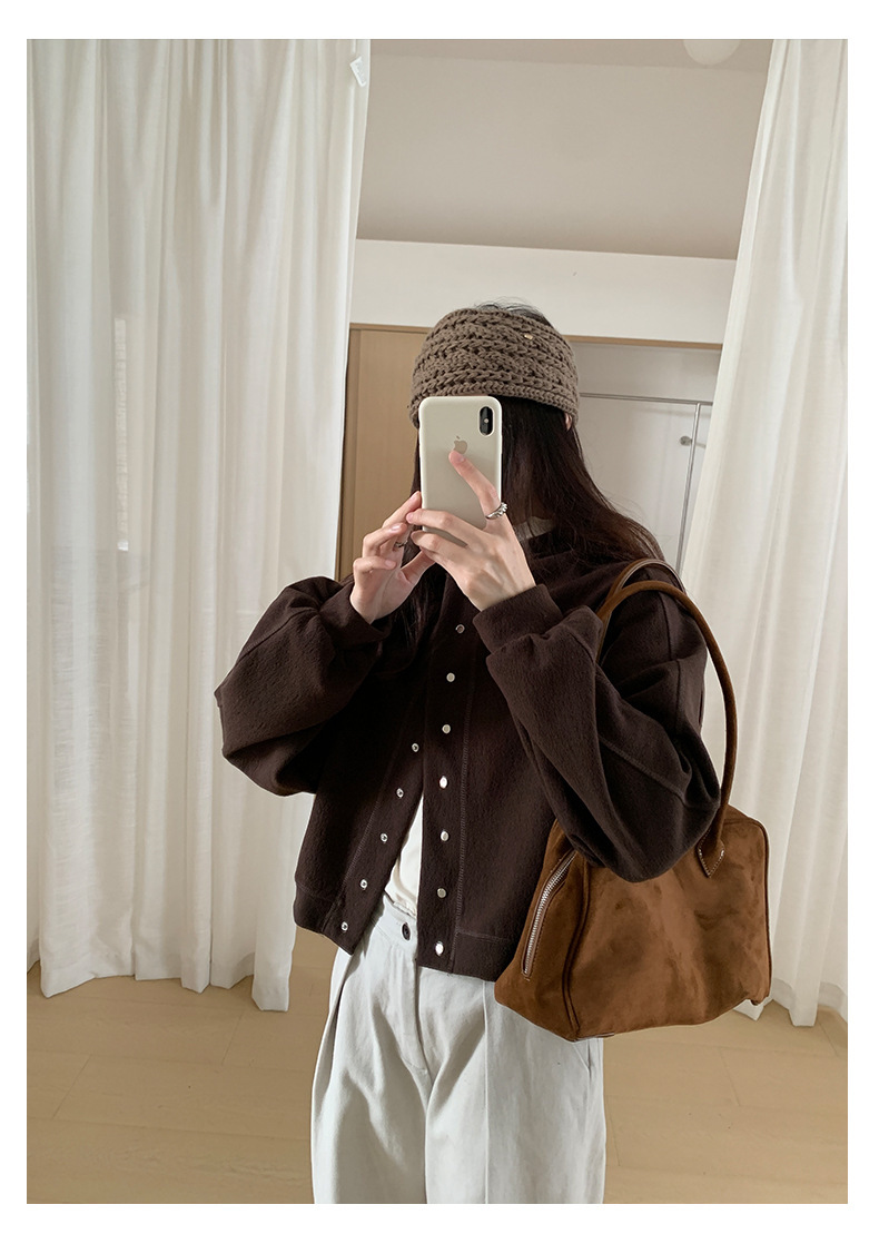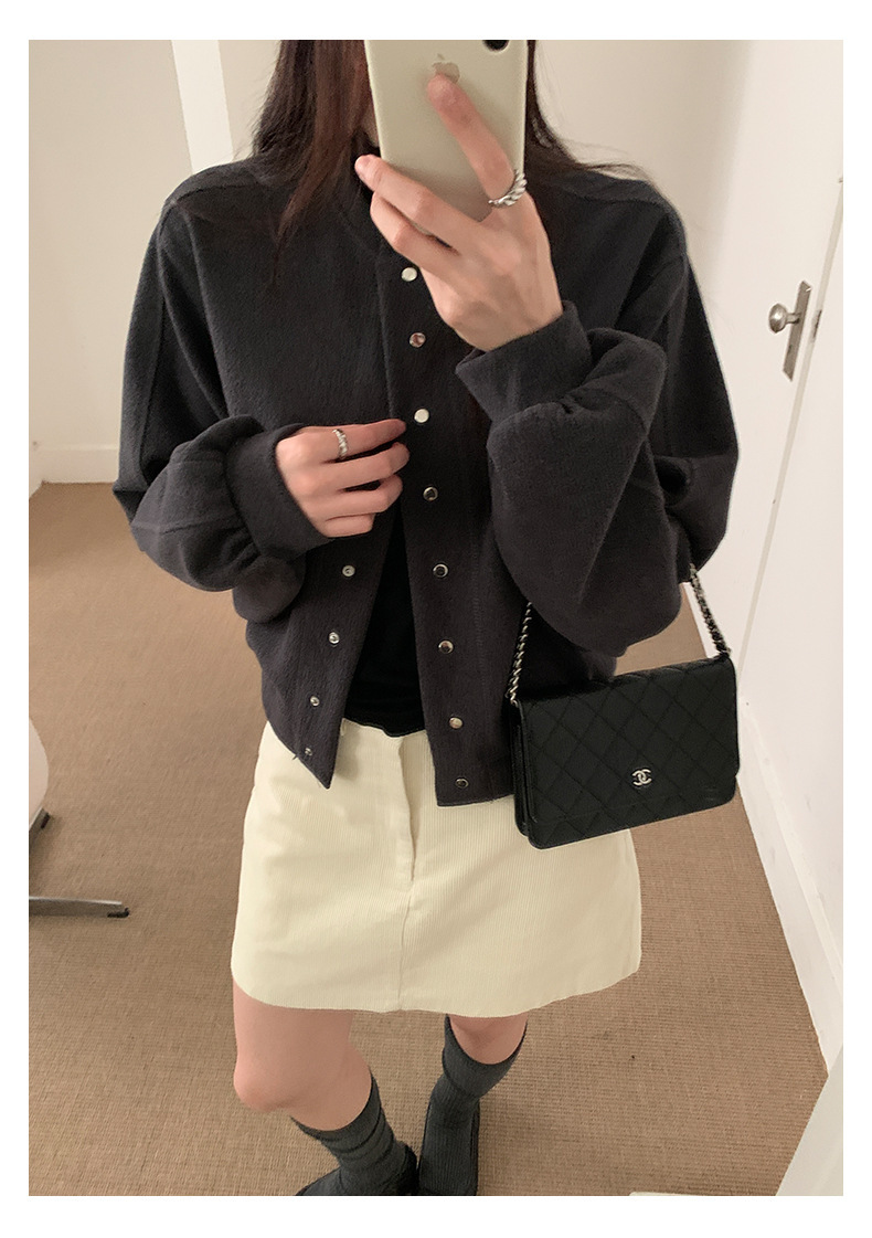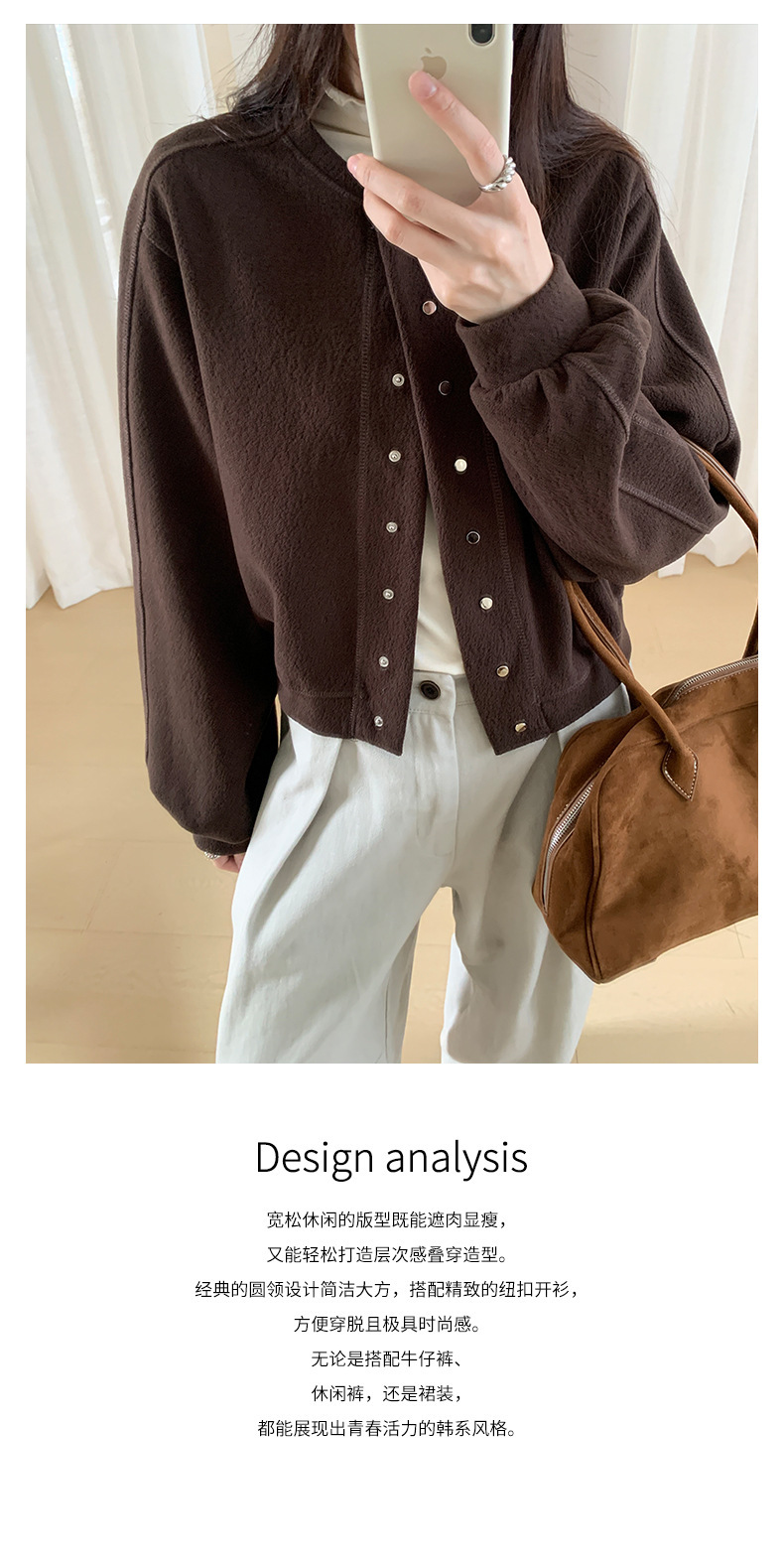 *o-ha-you*【FHZH1BB5041047】韓系疊穿圓領棒球服外套女秋冬寬鬆休閒小個子開襟上衣-2色