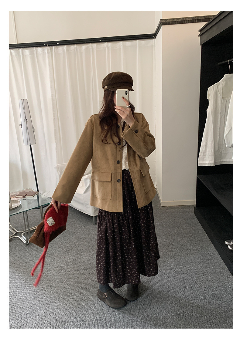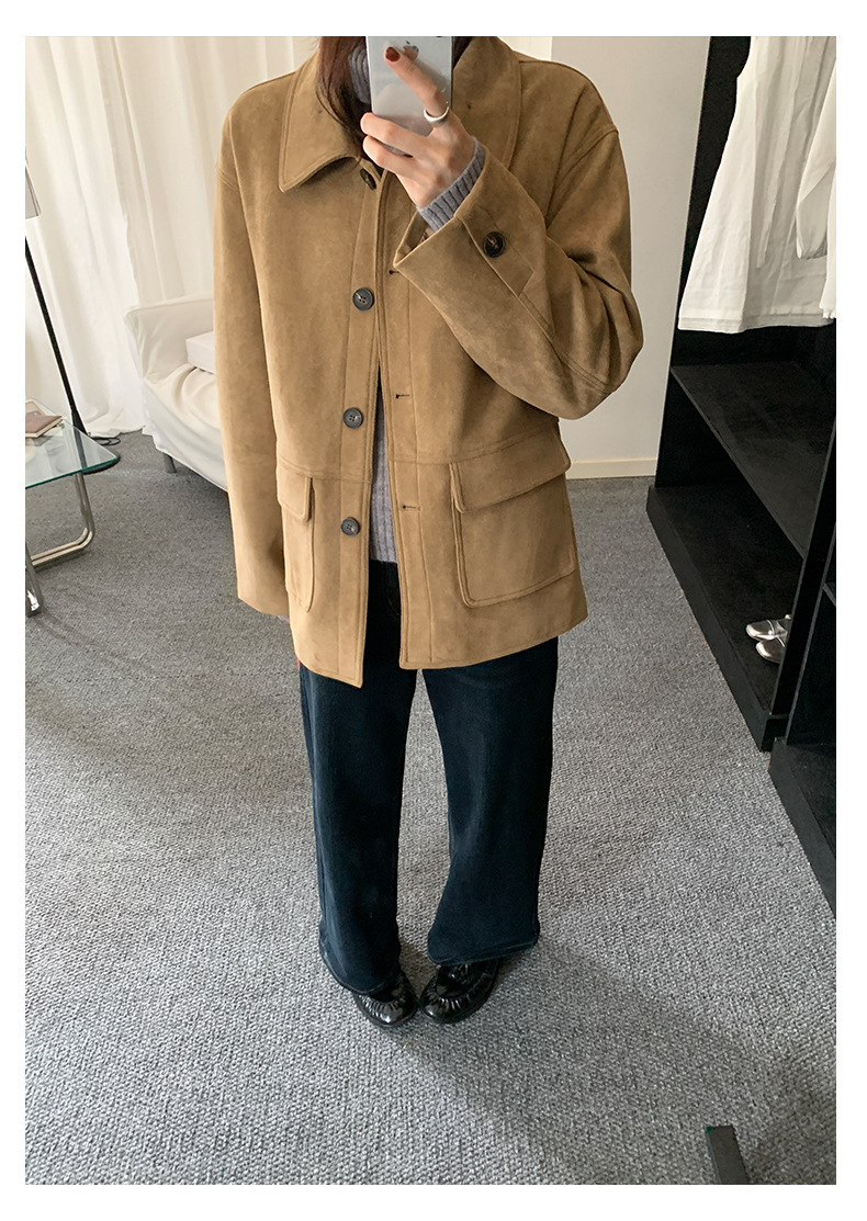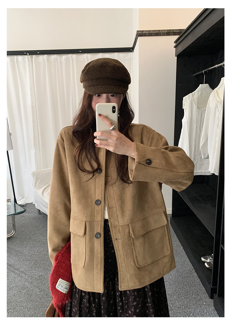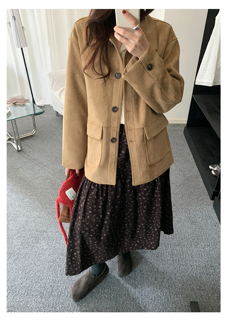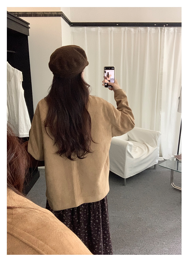 *o-ha-you*【FHZH1BB5041072】復古美拉德麂皮絨西裝外套女秋冬機車服中長款休閒大衣