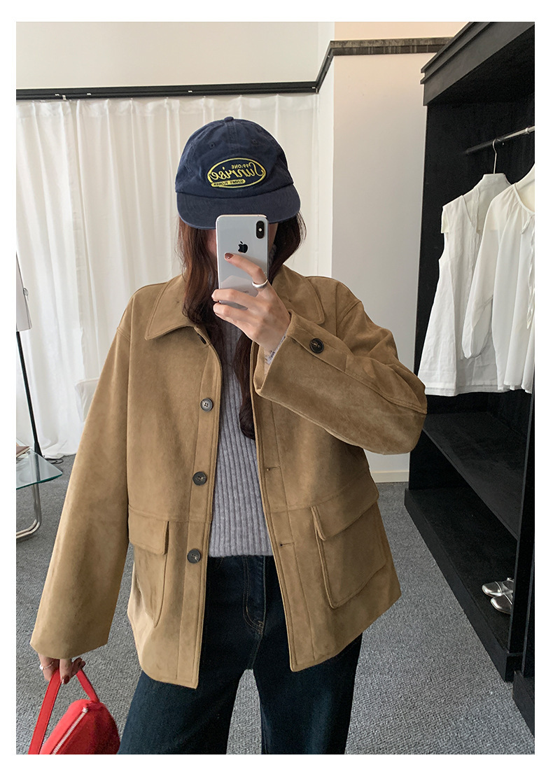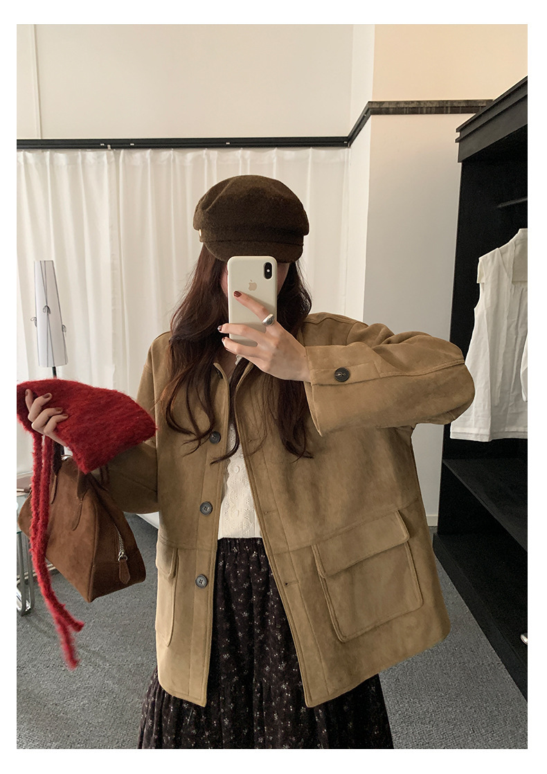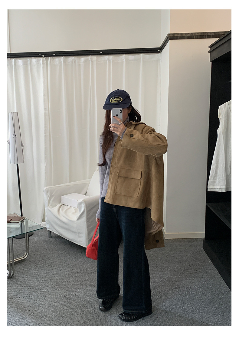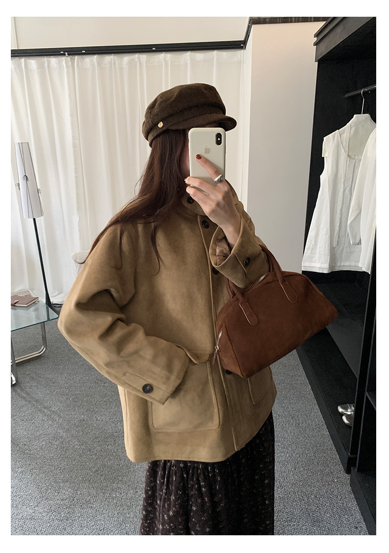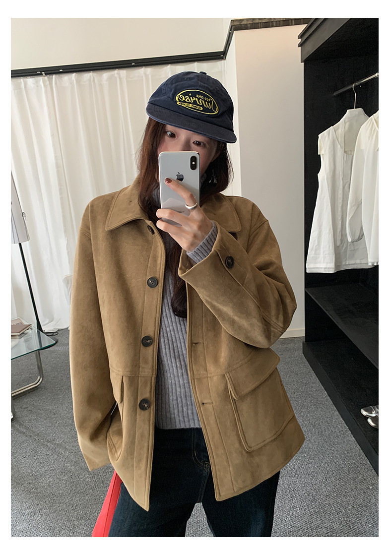 *o-ha-you*【FHZH1BB5041072】復古美拉德麂皮絨西裝外套女秋冬機車服中長款休閒大衣