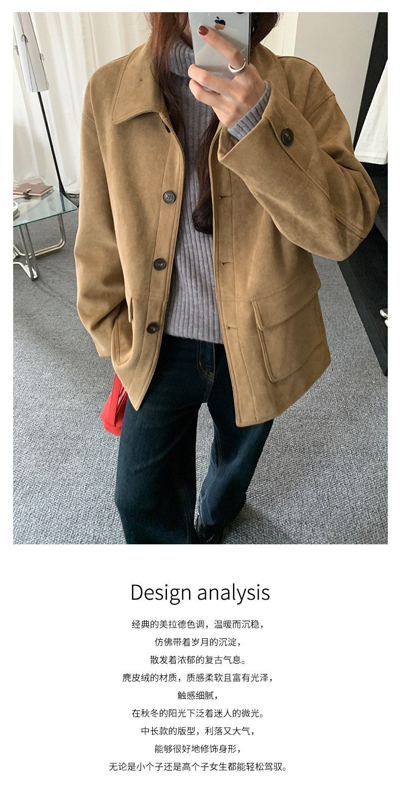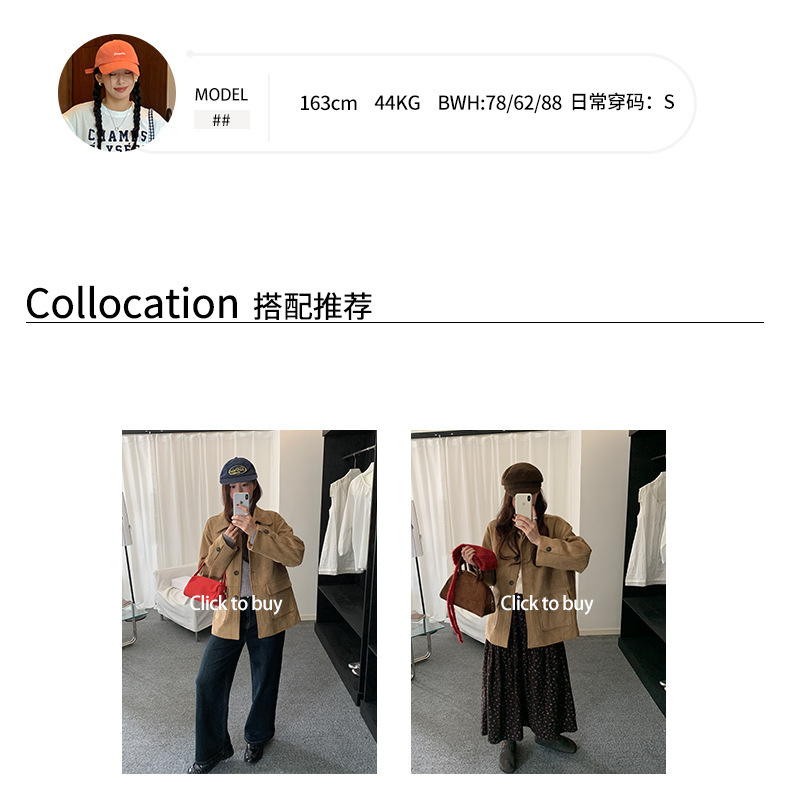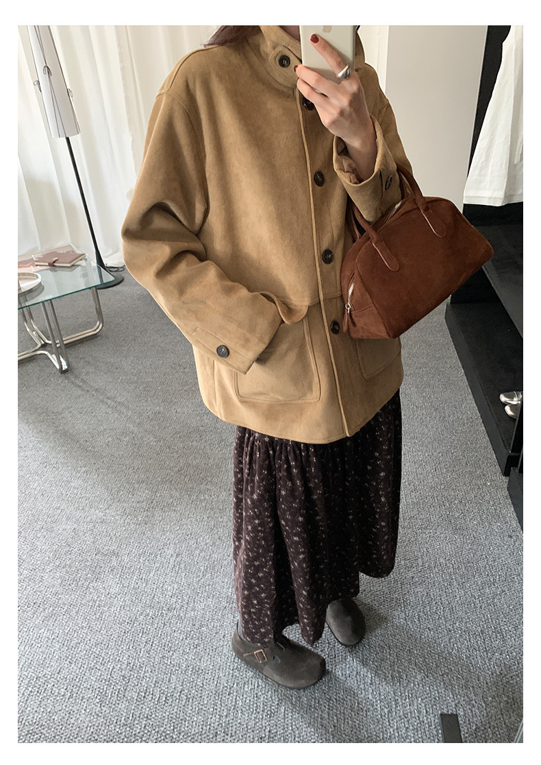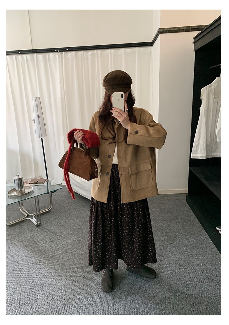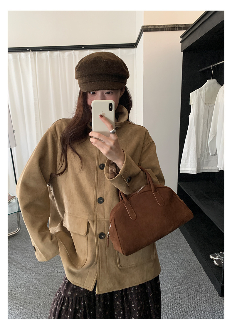 *o-ha-you*【FHZH1BB5041072】復古美拉德麂皮絨西裝外套女秋冬機車服中長款休閒大衣