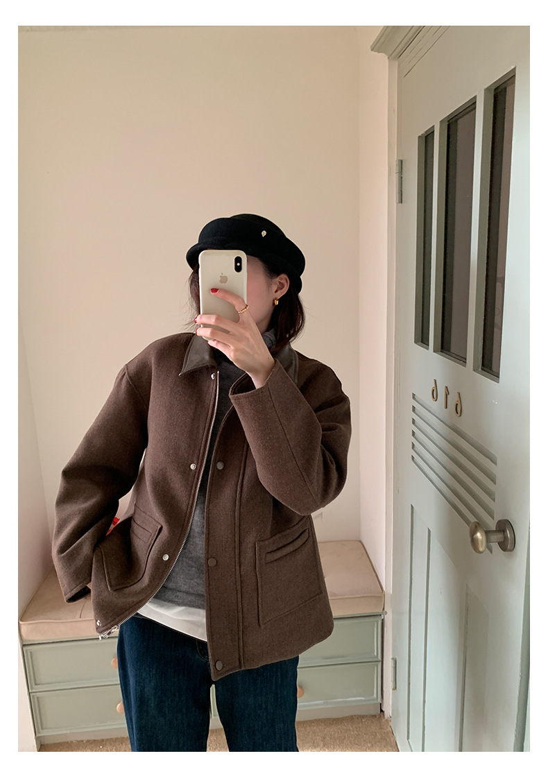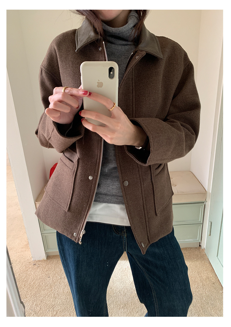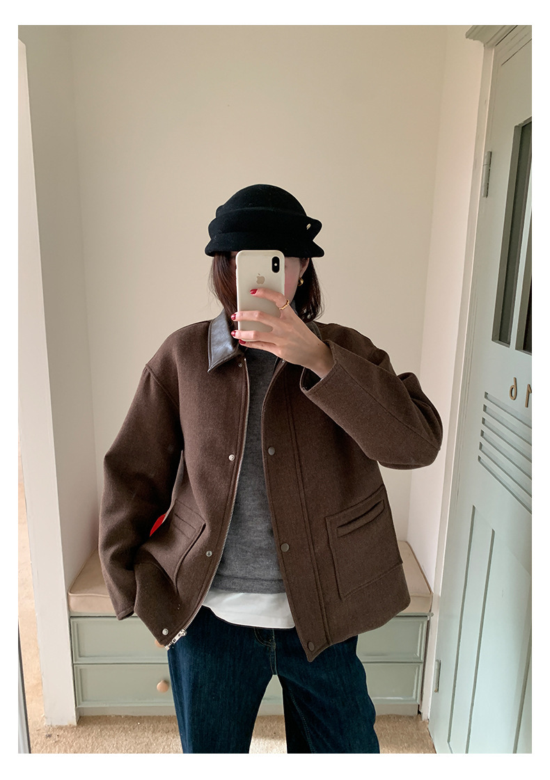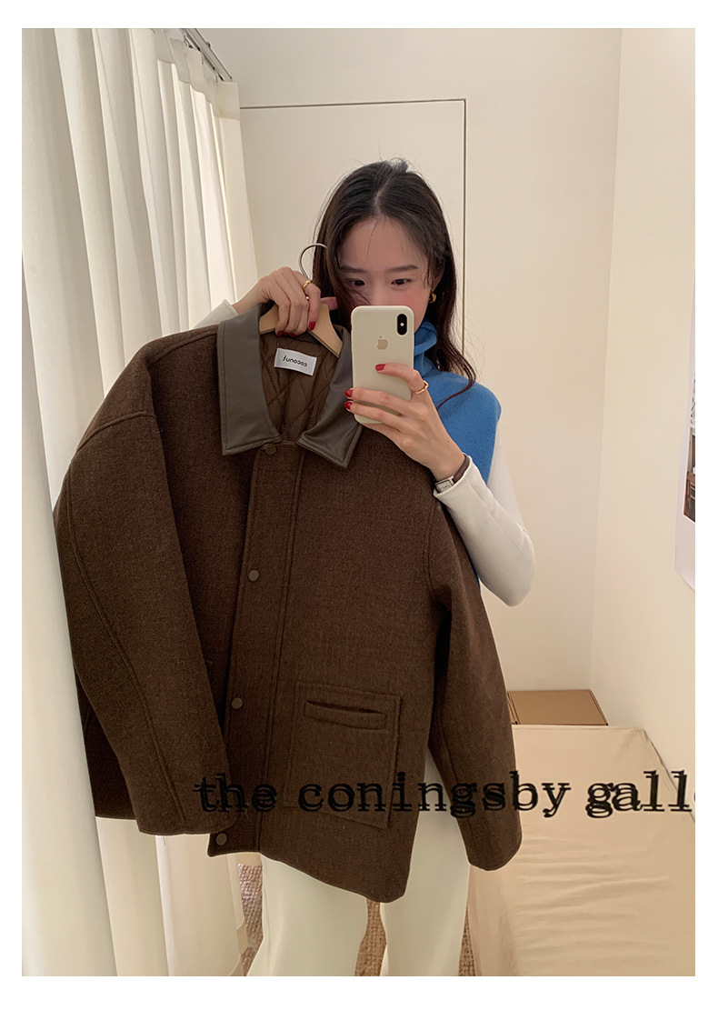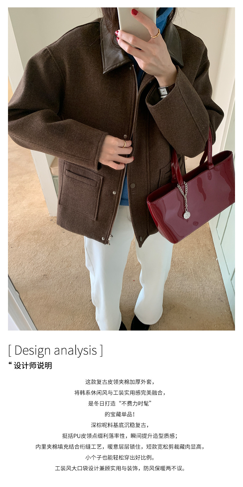 *o-ha-you*【FHZH1BB5041149】復古皮領夾棉加厚外套女冬季新款韓版休閒工裝夾克上衣