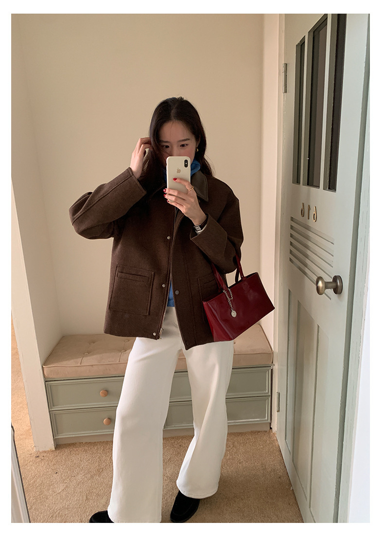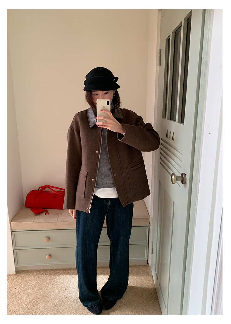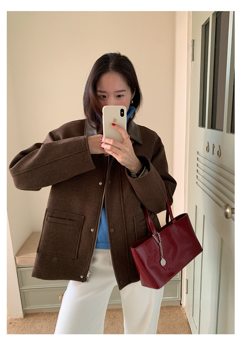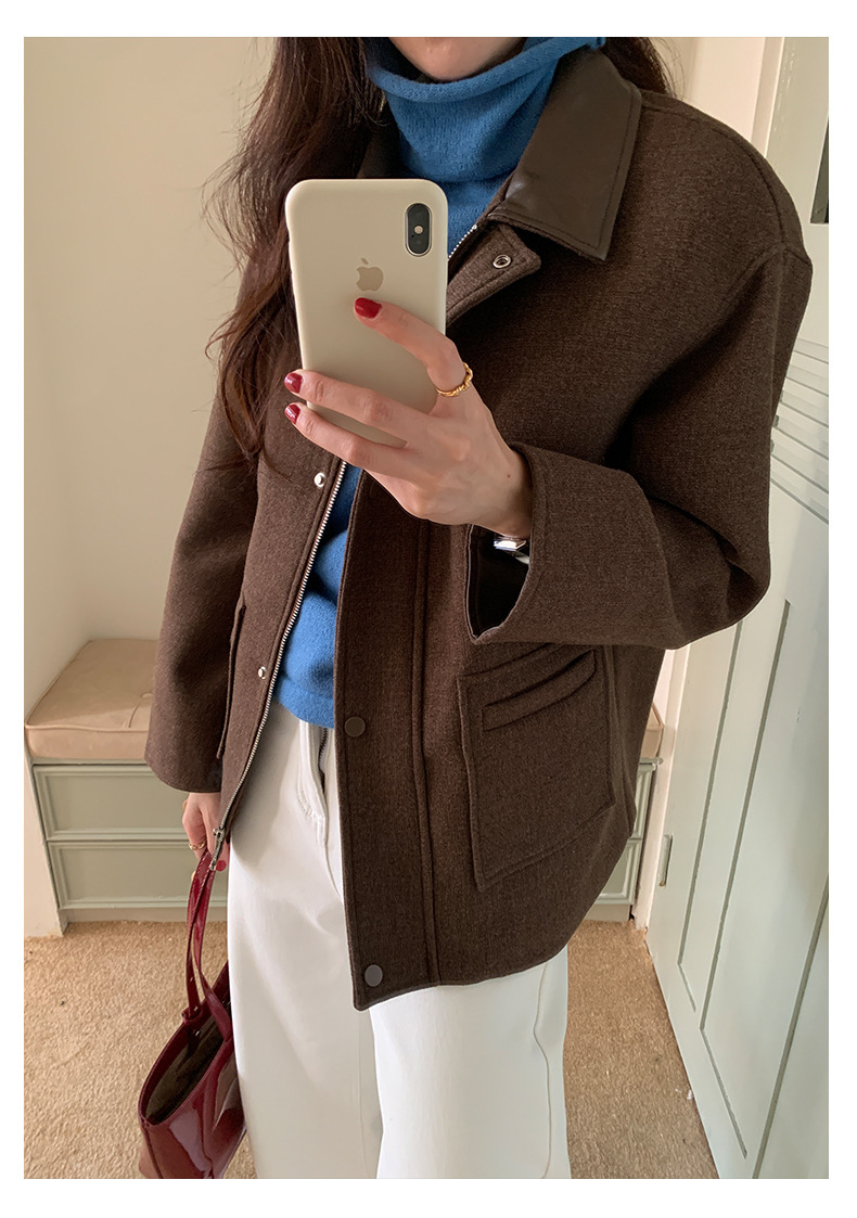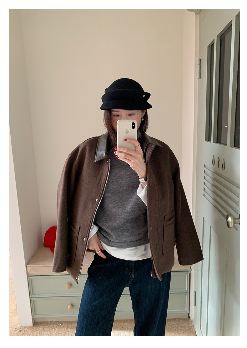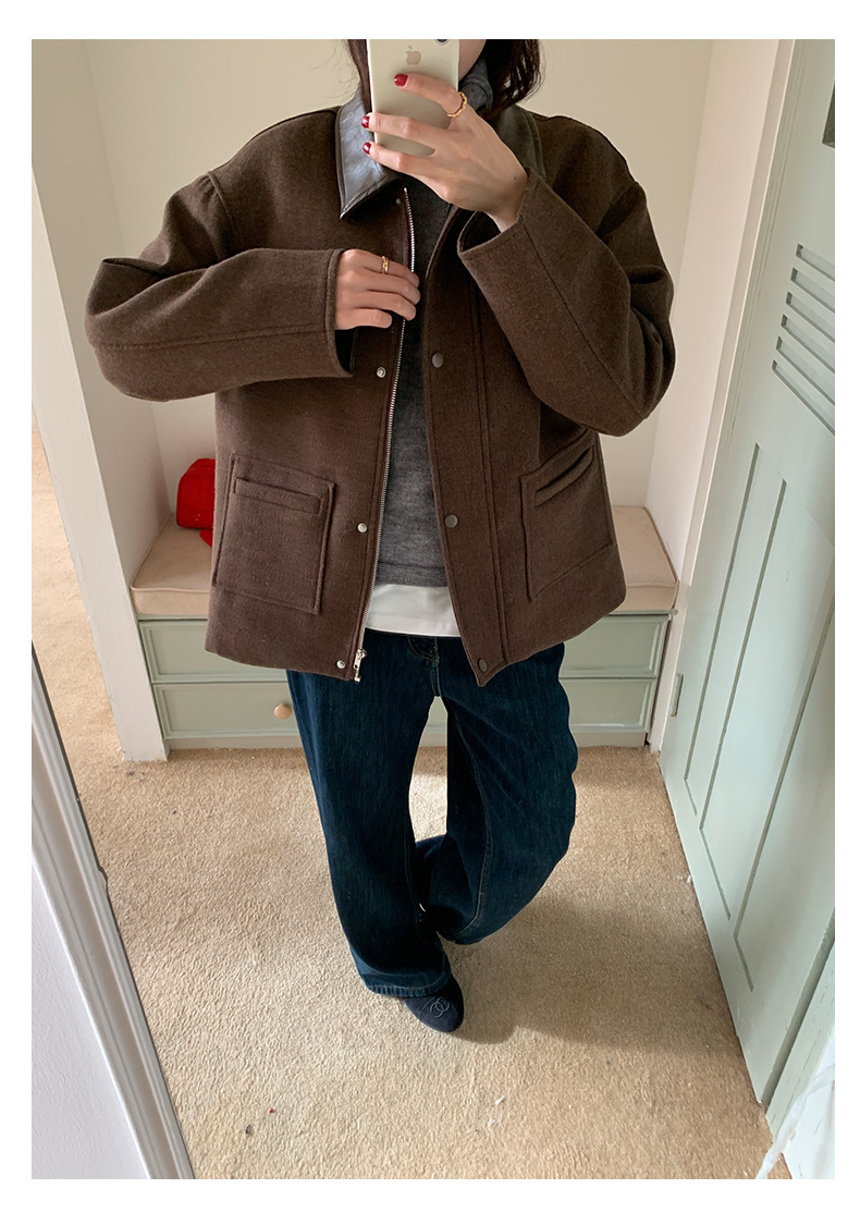 *o-ha-you*【FHZH1BB5041149】復古皮領夾棉加厚外套女冬季新款韓版休閒工裝夾克上衣