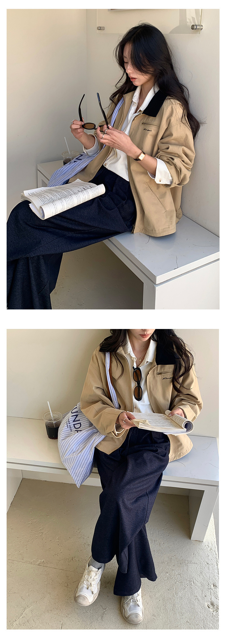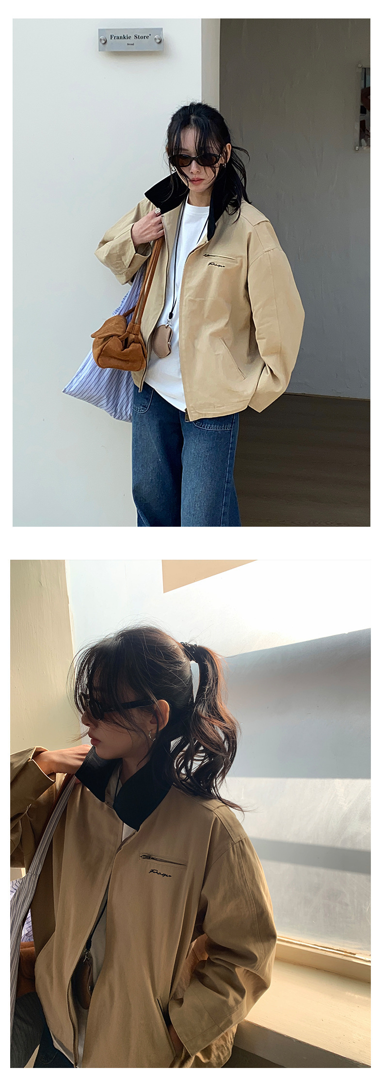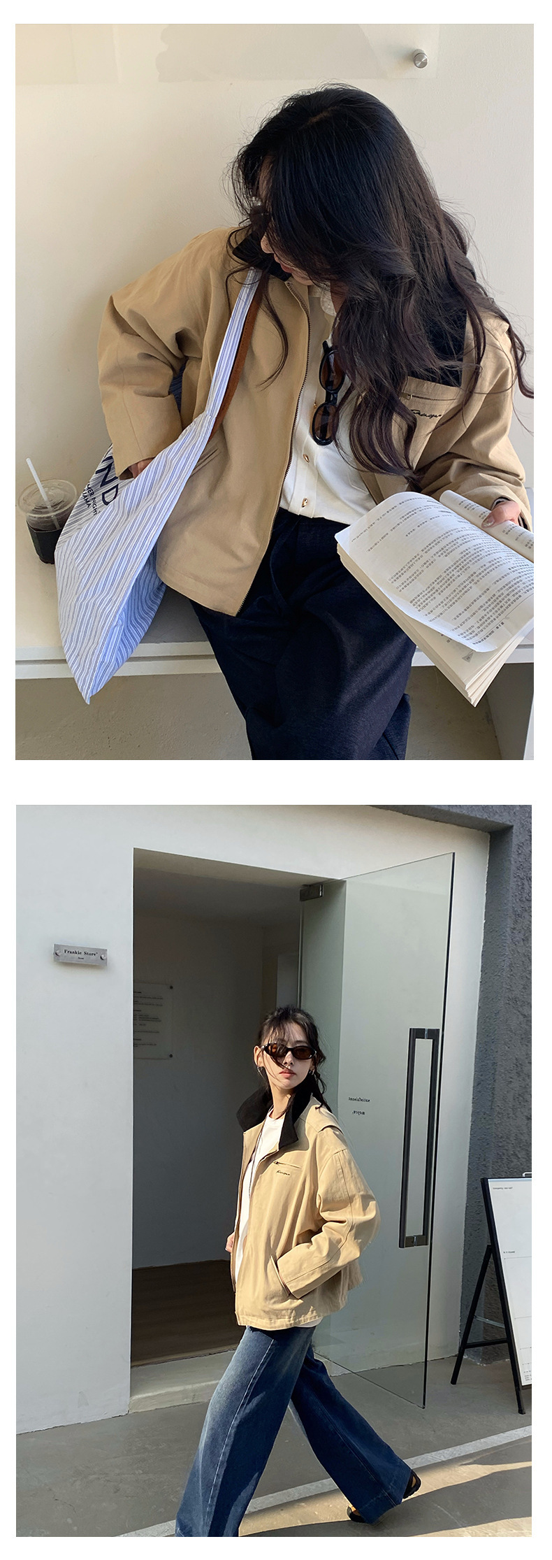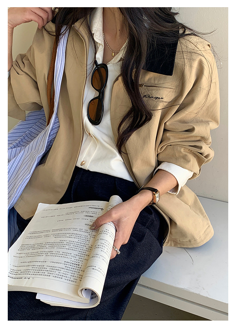 *o-ha-you*【FHZH1BC5010013】小眾設計復古撞色翻領夾克外套2025早春休閒風衣