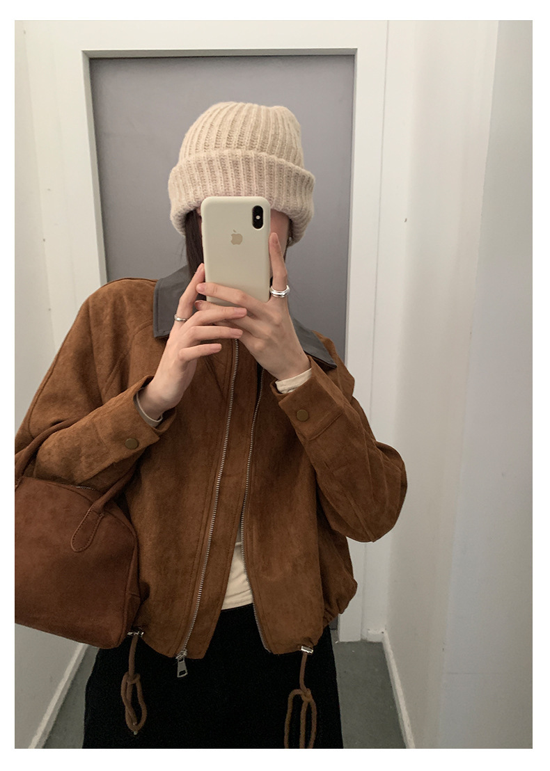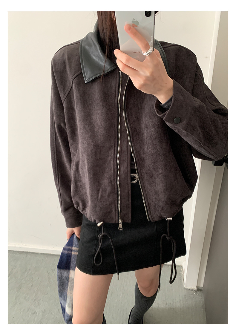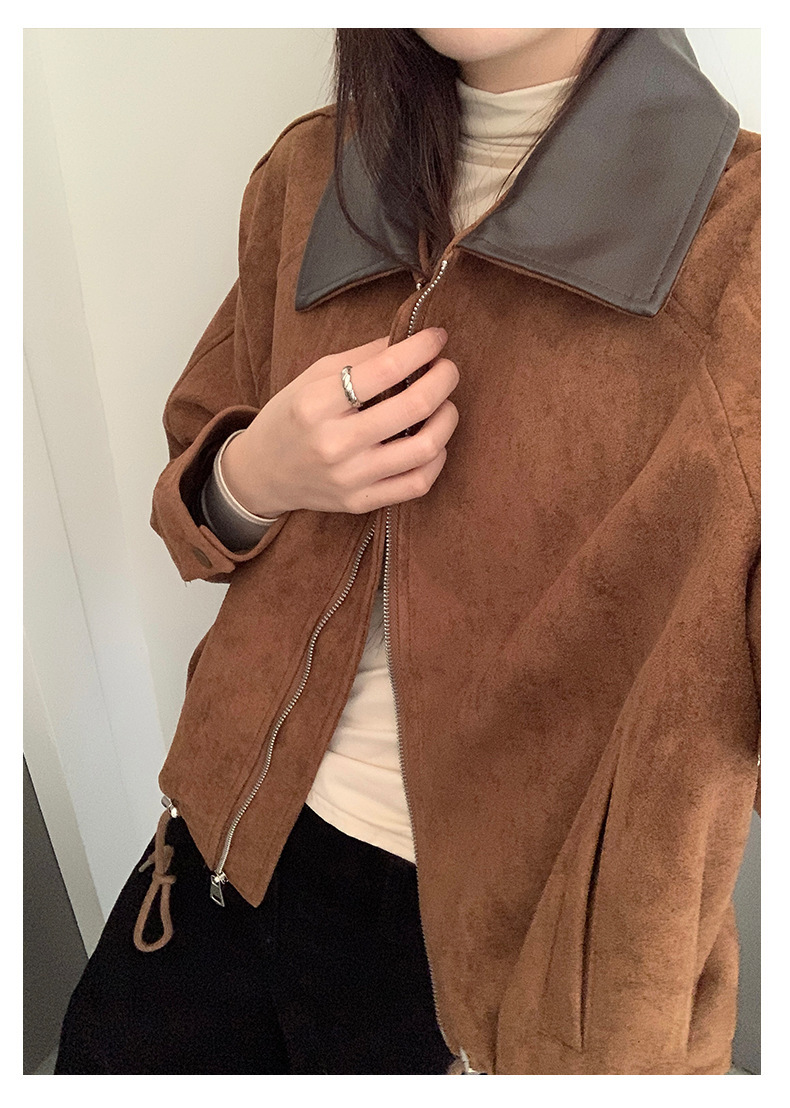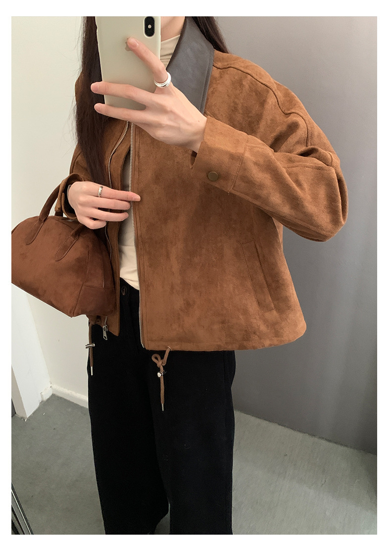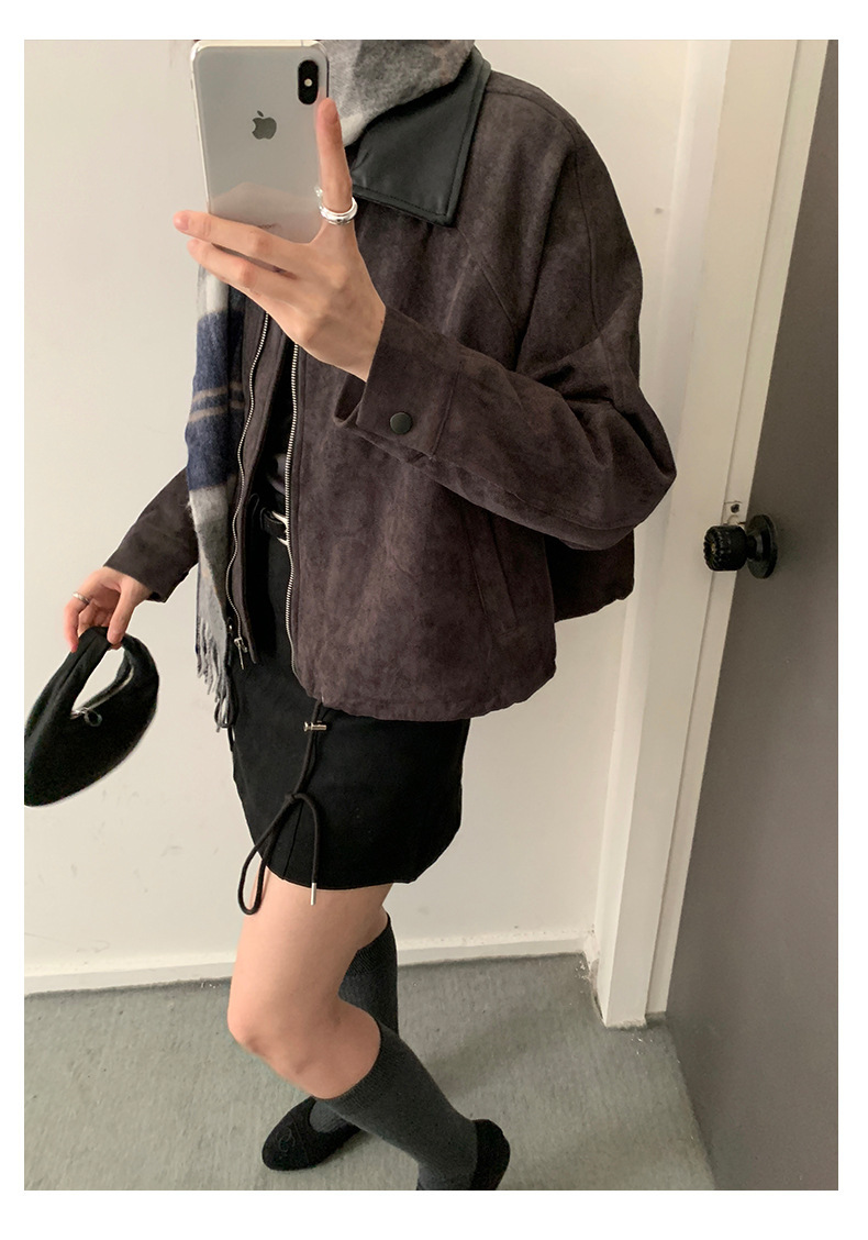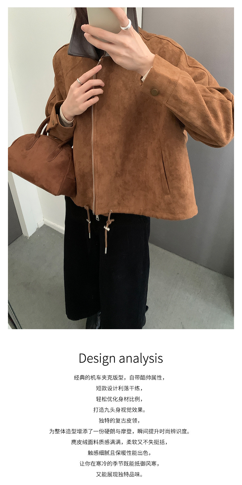 *o-ha-you*【FHZH1BC5041009】復古皮領麂皮絨短外套女2025冬新款百搭機車夾克上衣-2色