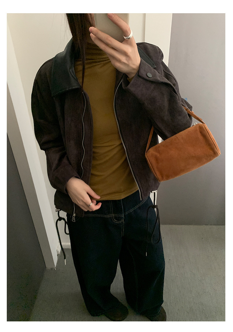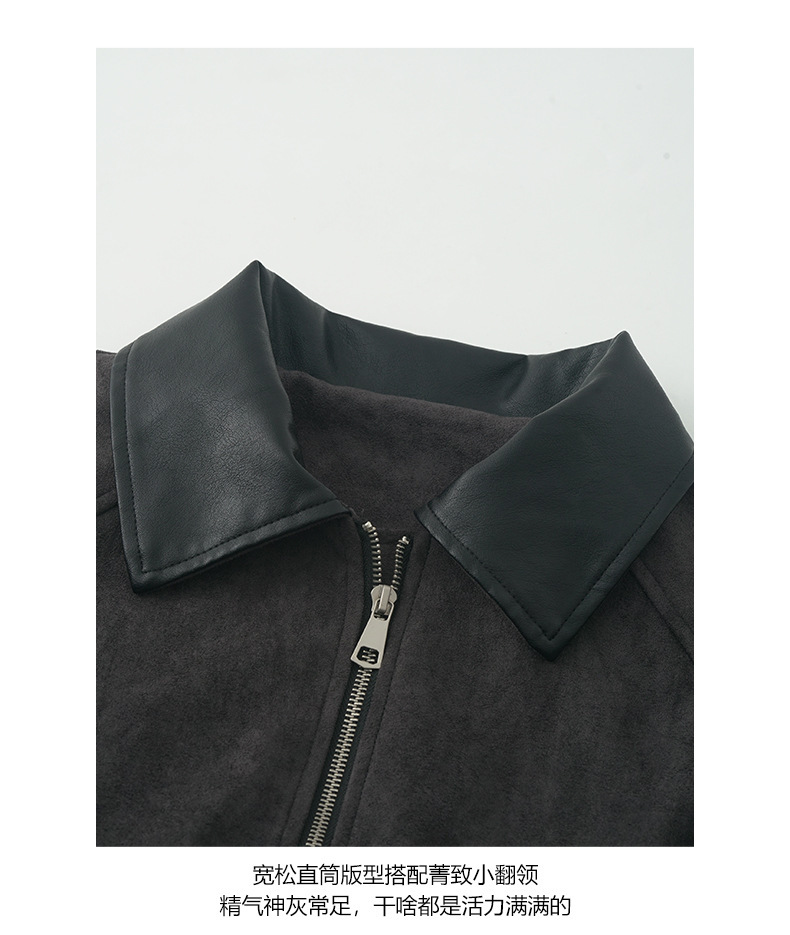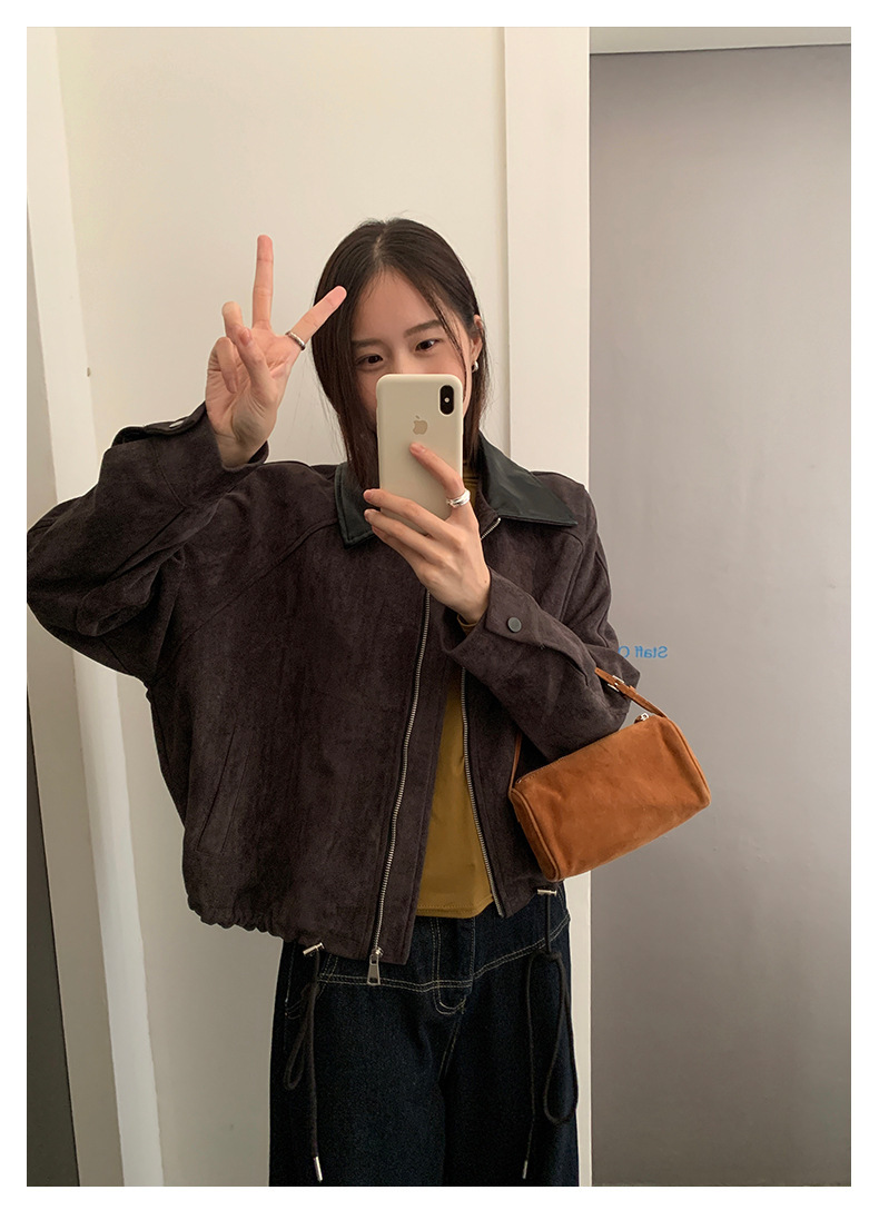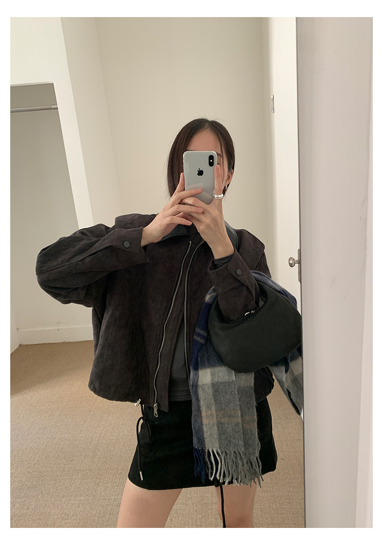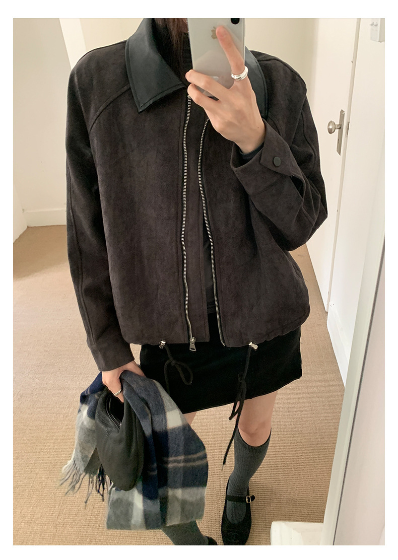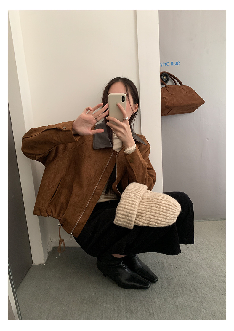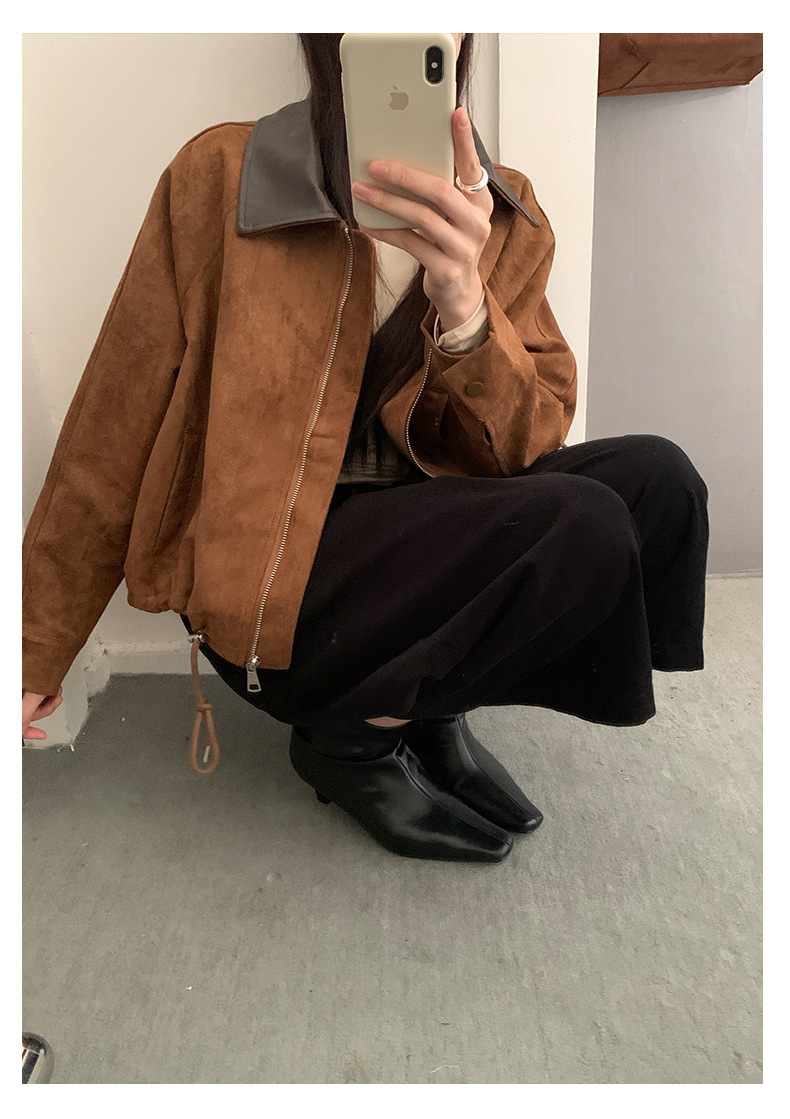 *o-ha-you*【FHZH1BC5041009】復古皮領麂皮絨短外套女2025冬新款百搭機車夾克上衣-2色