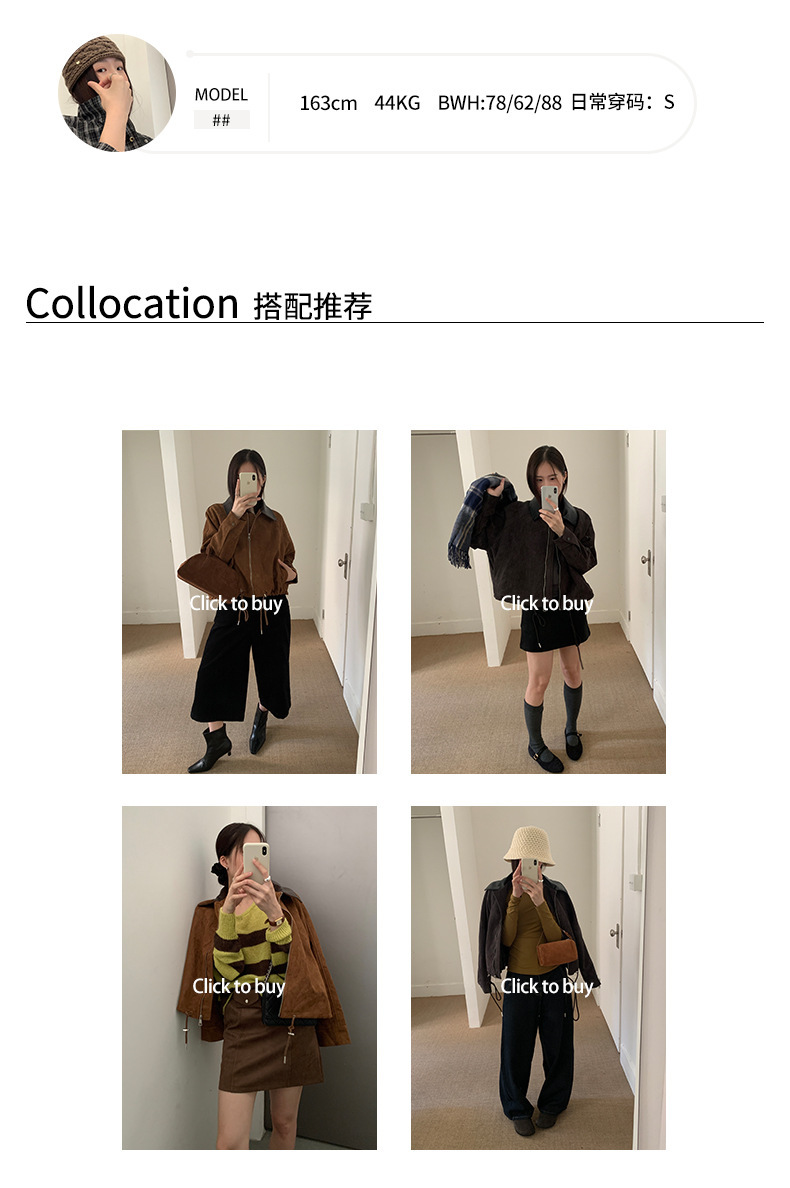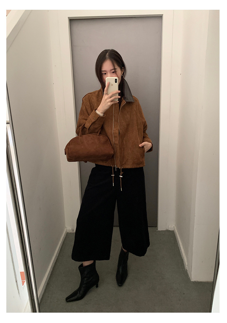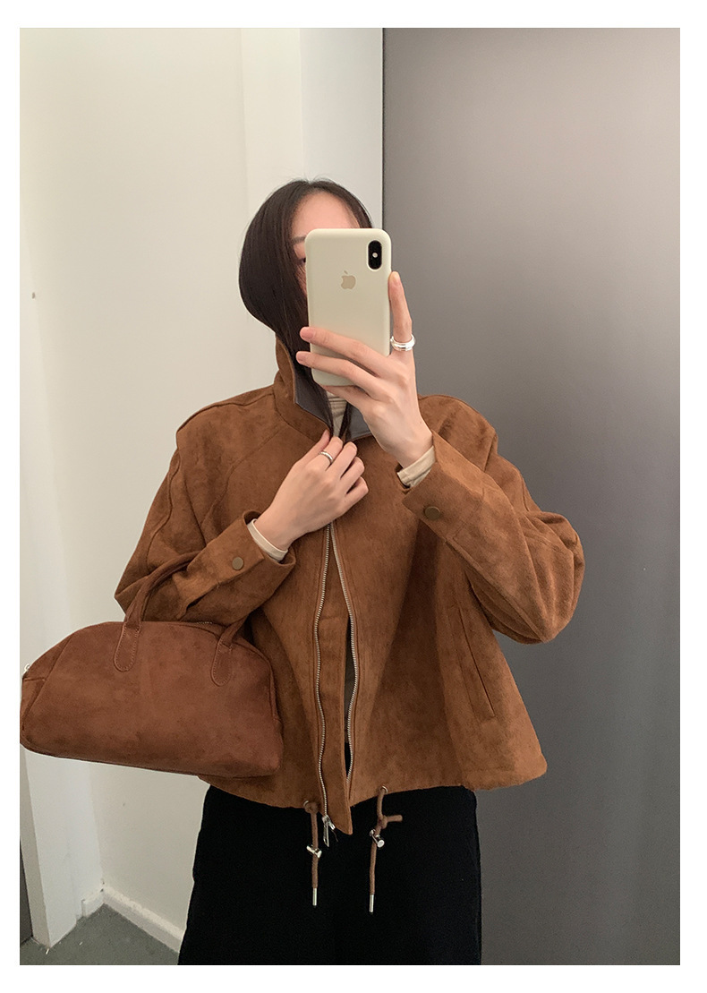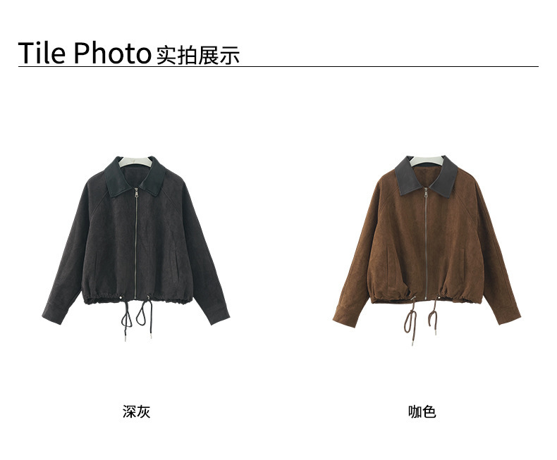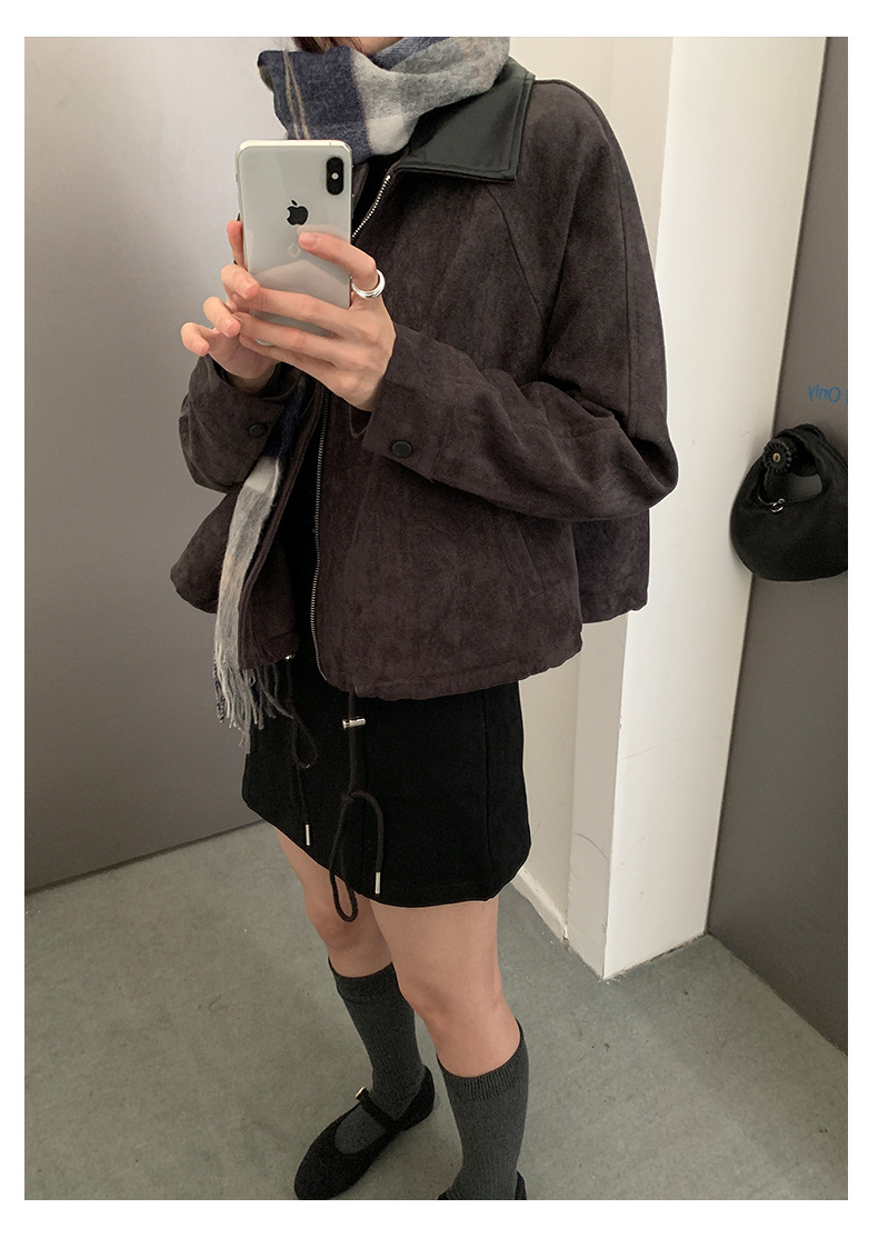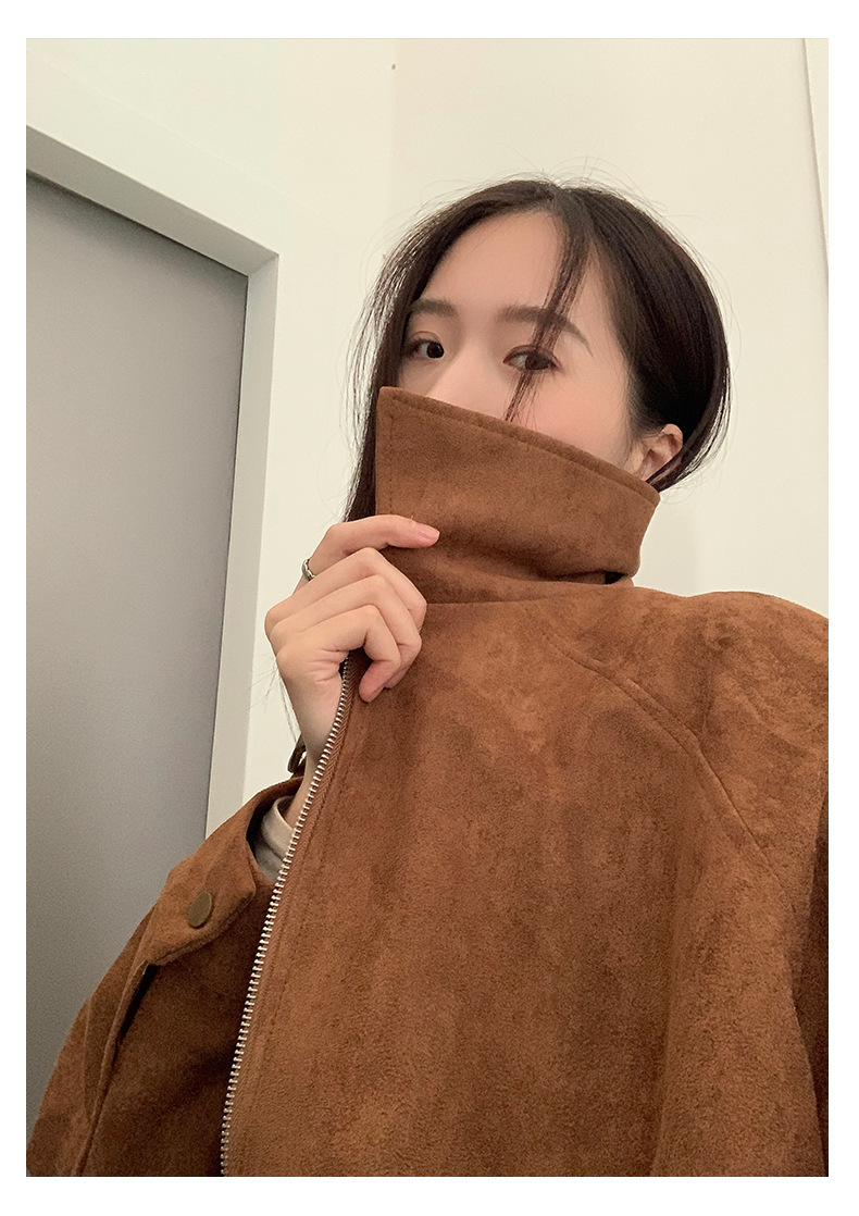 *o-ha-you*【FHZH1BC5041009】復古皮領麂皮絨短外套女2025冬新款百搭機車夾克上衣-2色