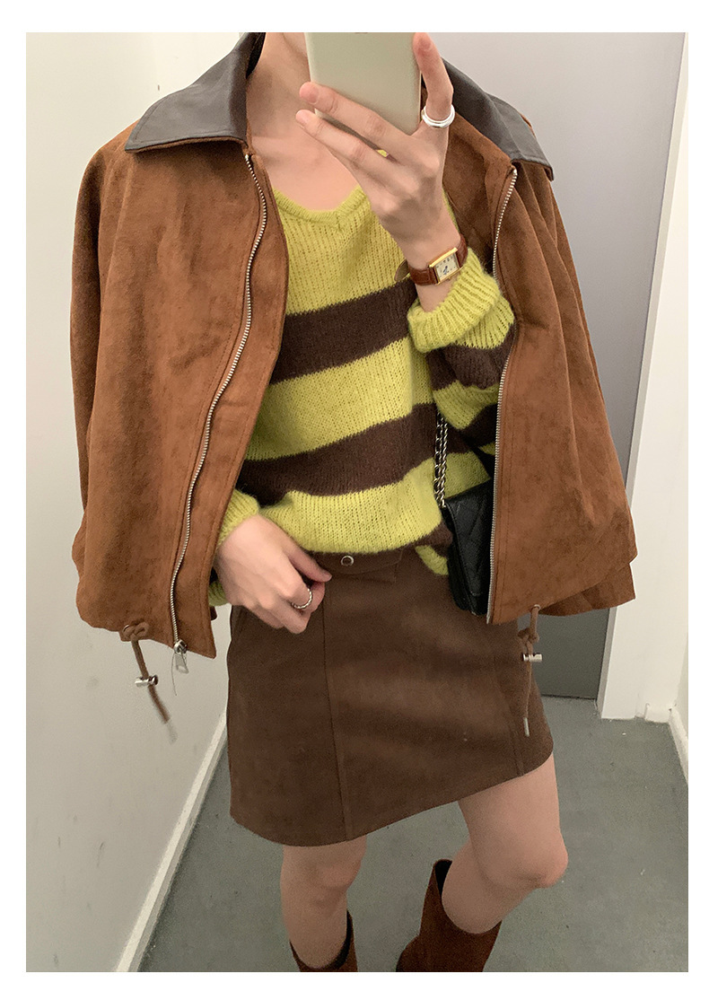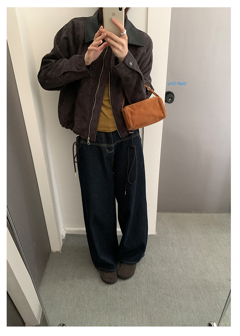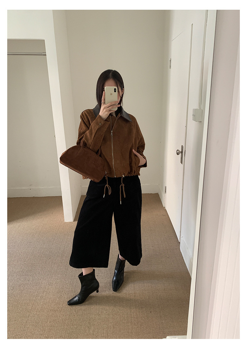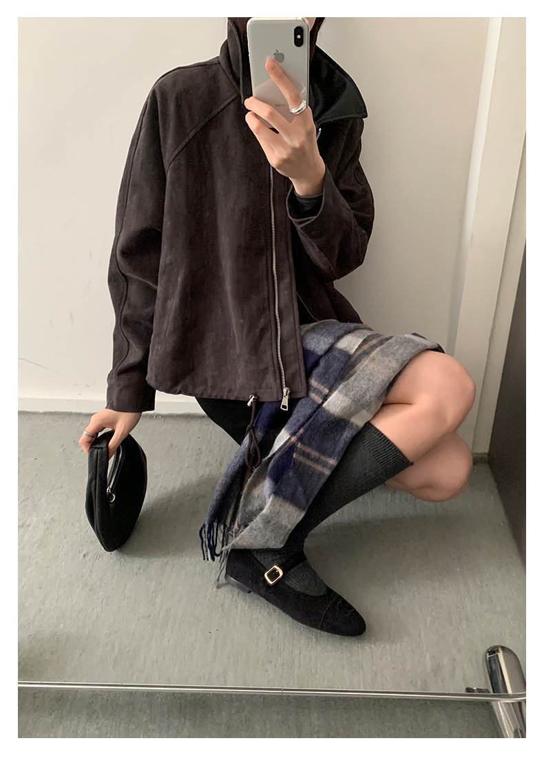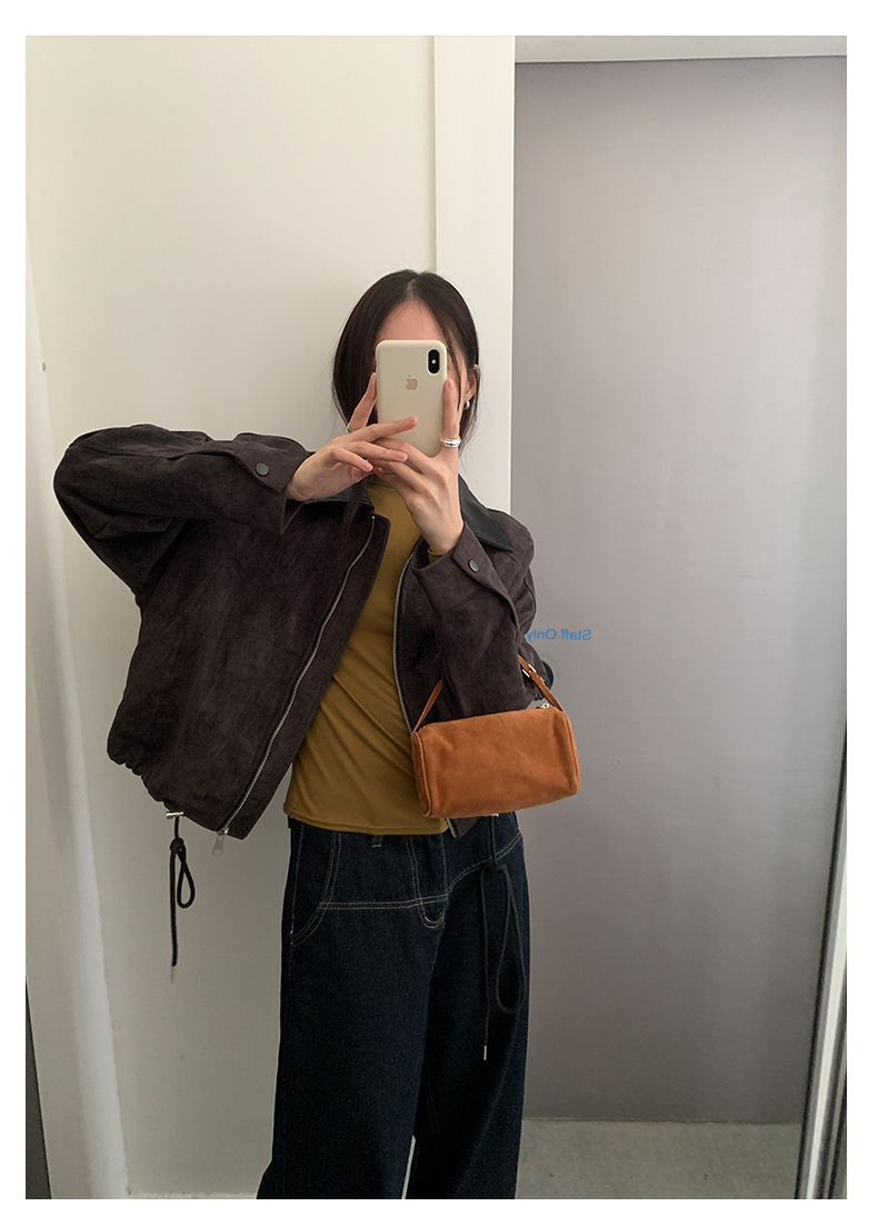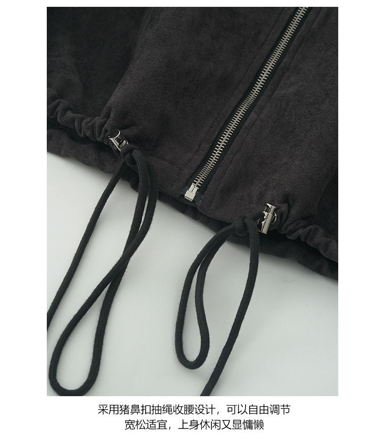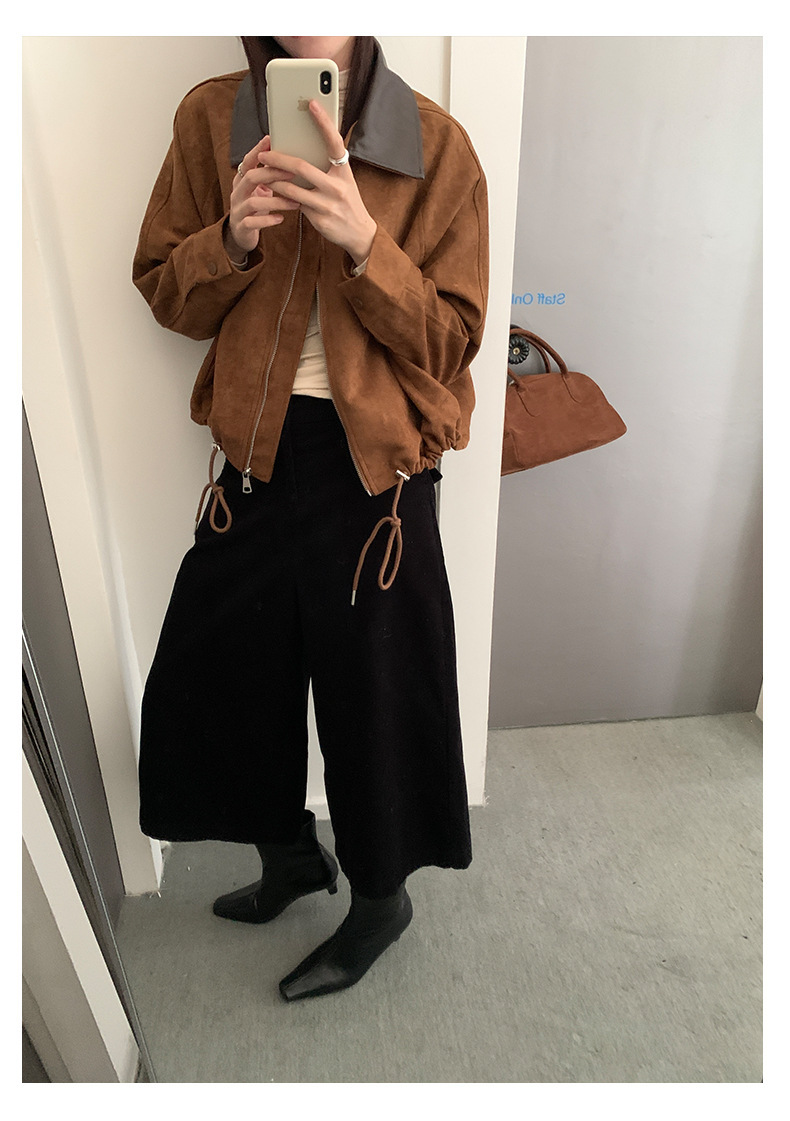 *o-ha-you*【FHZH1BC5041009】復古皮領麂皮絨短外套女2025冬新款百搭機車夾克上衣-2色