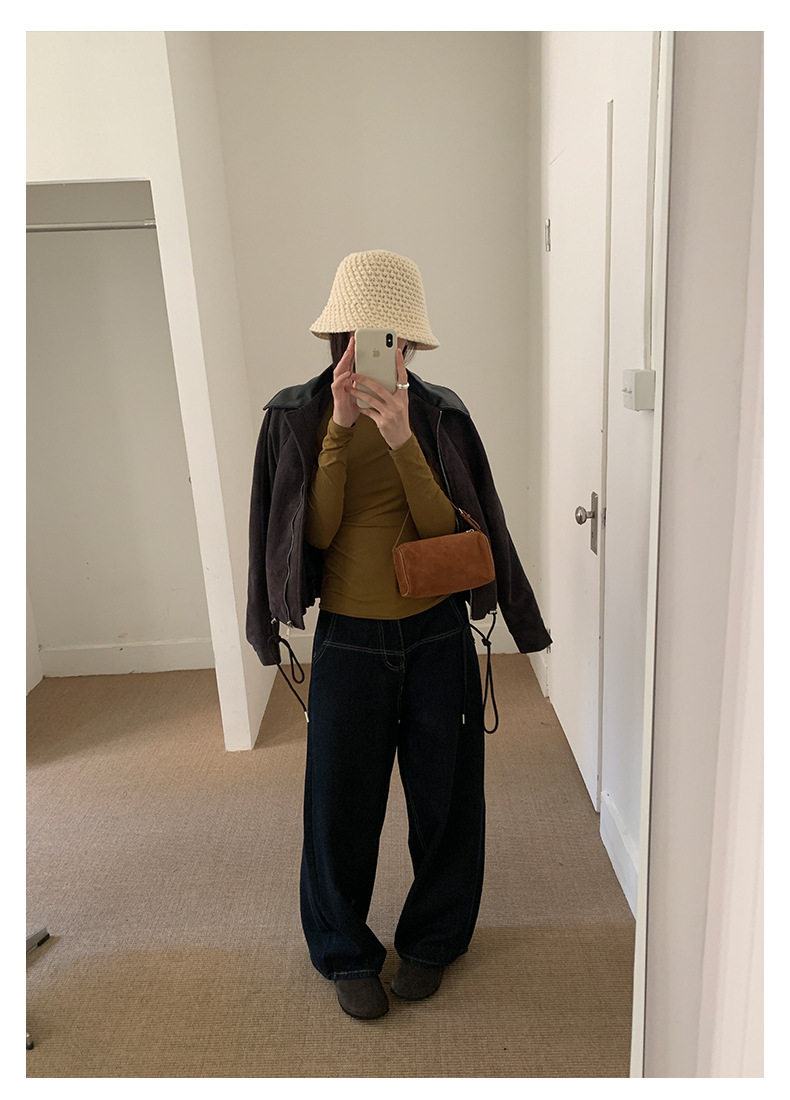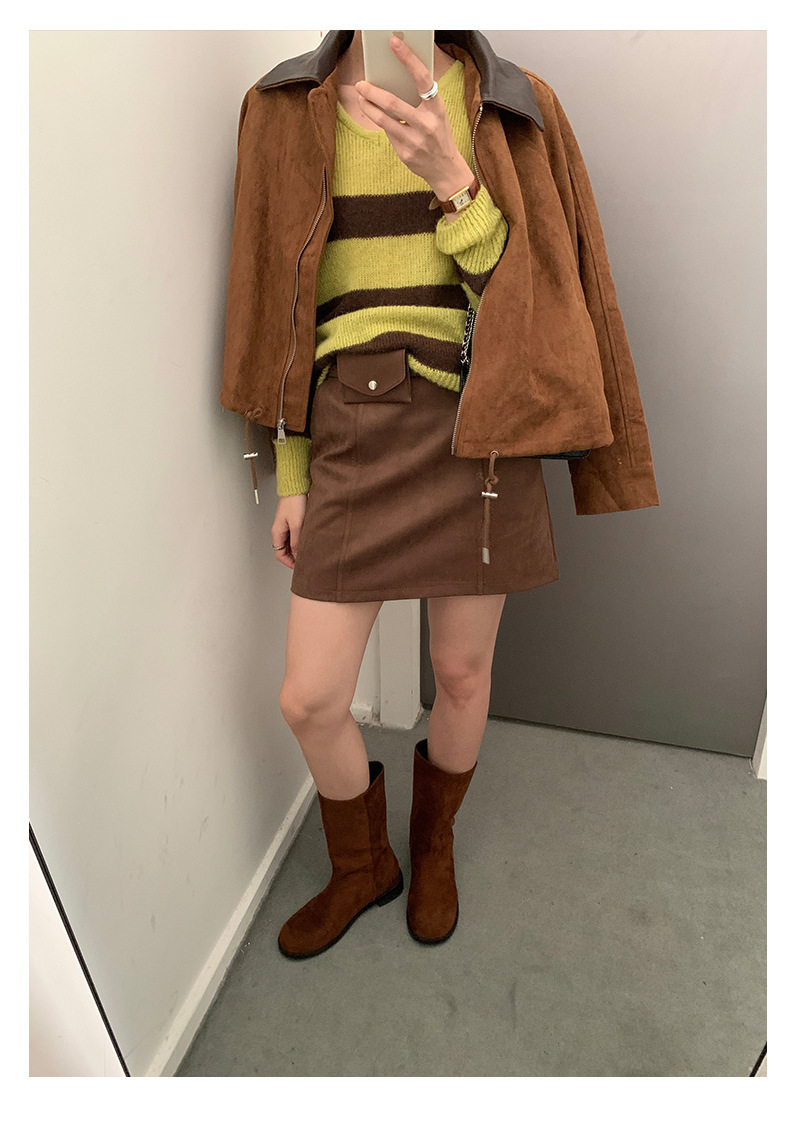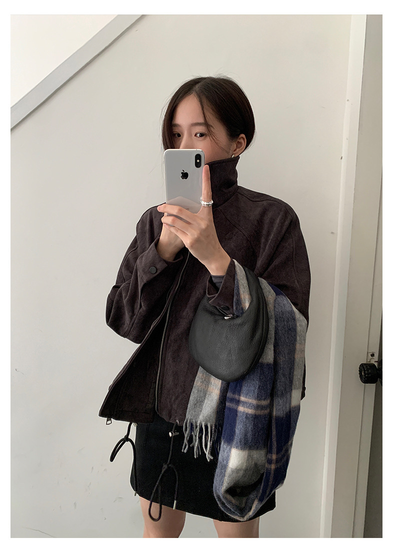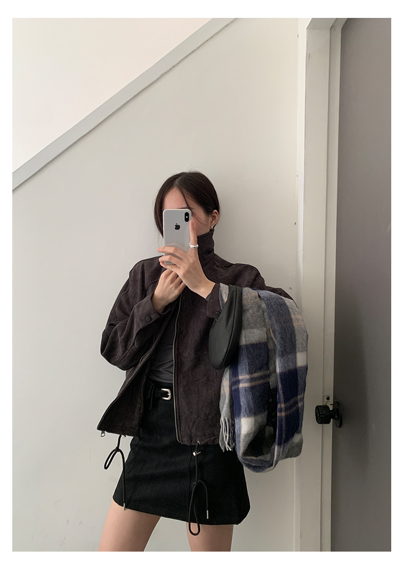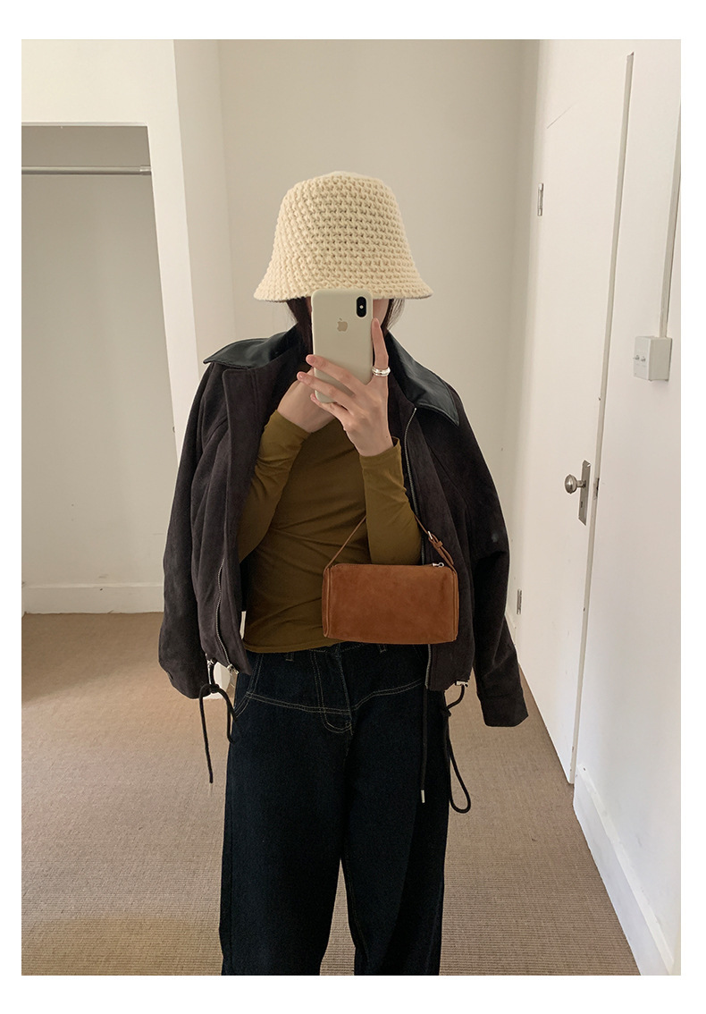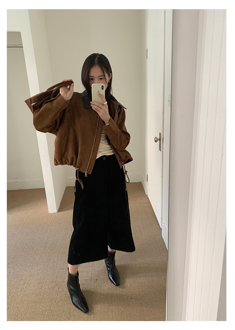 *o-ha-you*【FHZH1BC5041009】復古皮領麂皮絨短外套女2025冬新款百搭機車夾克上衣-2色