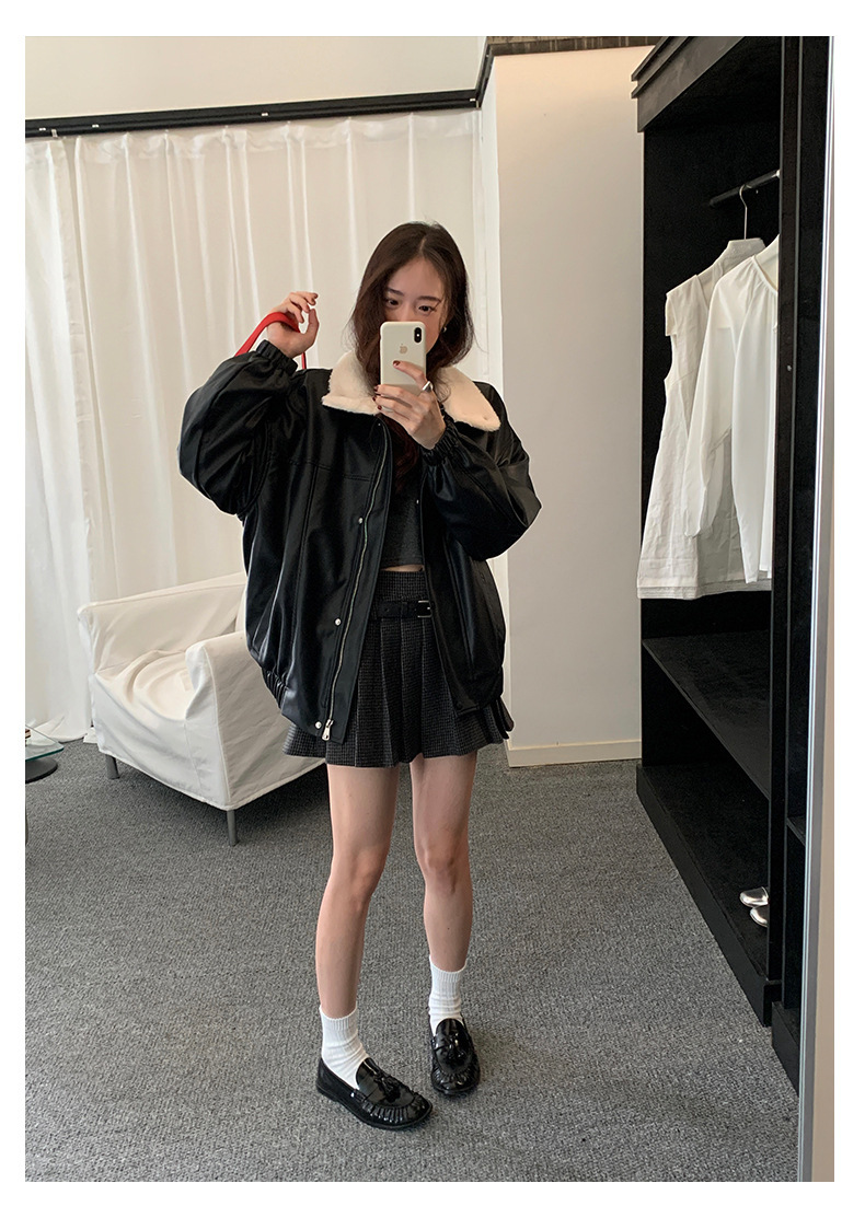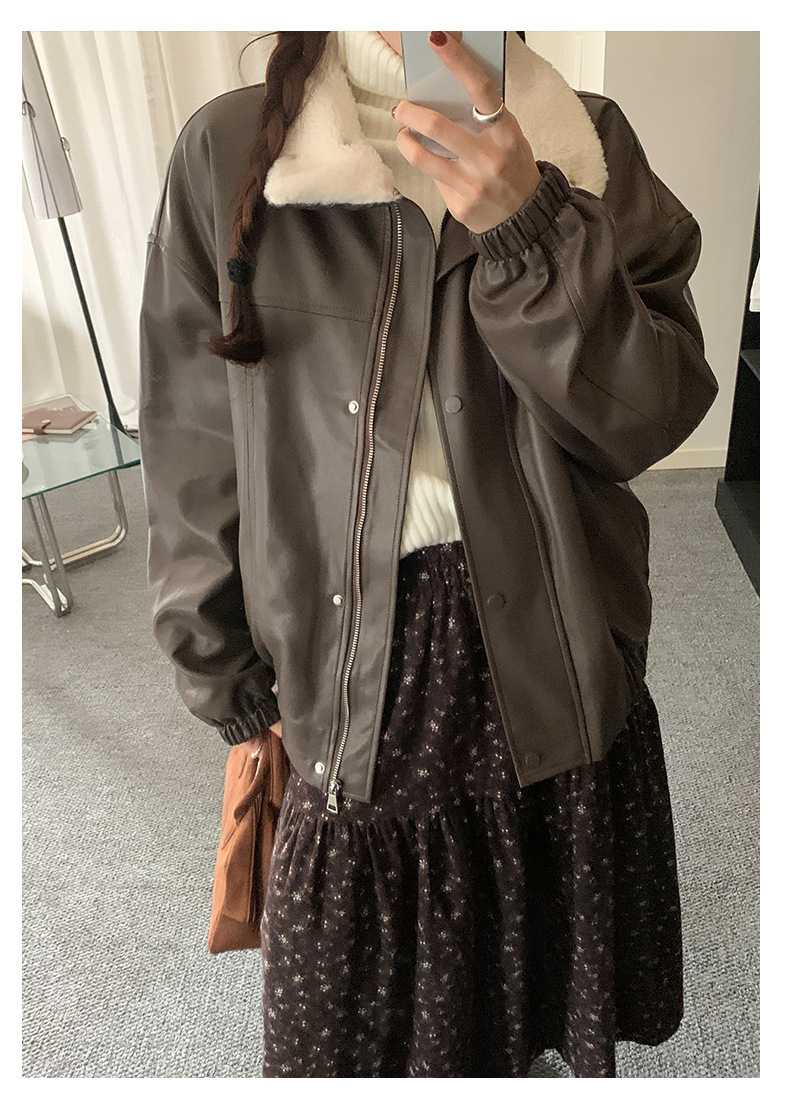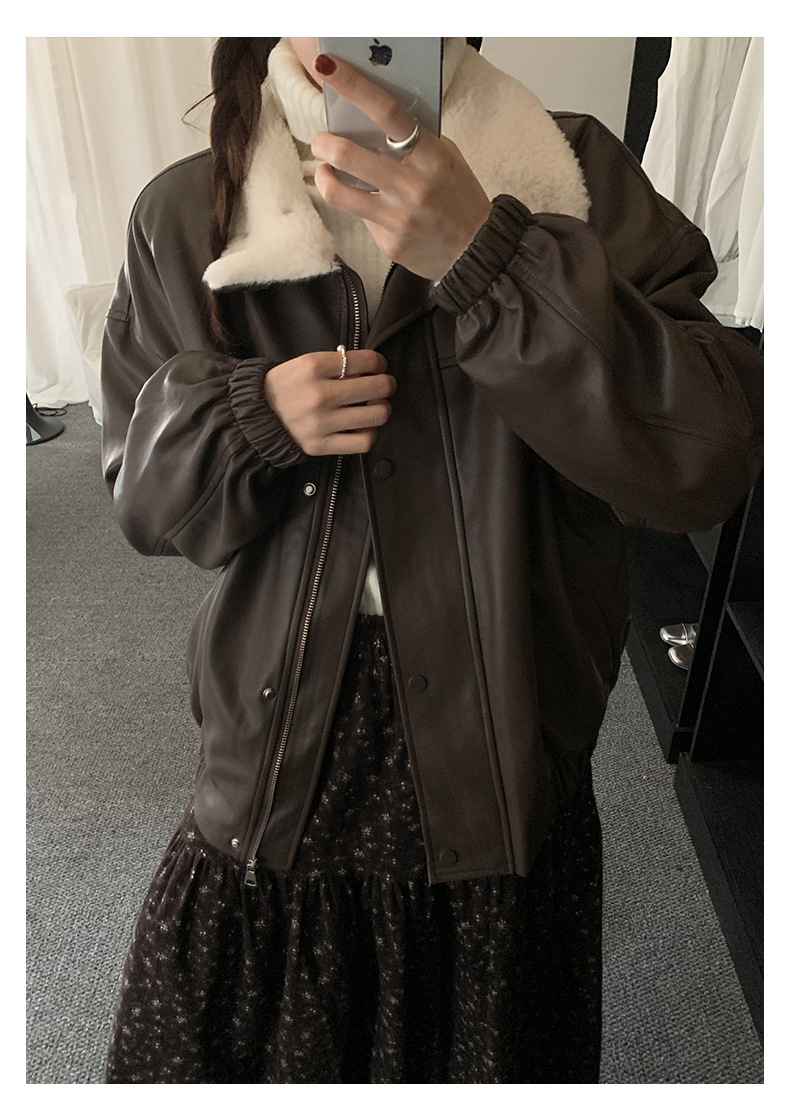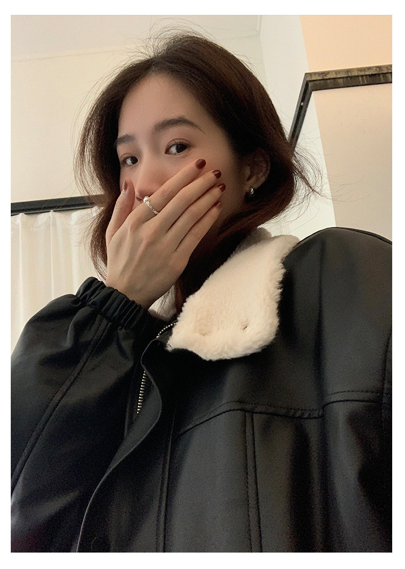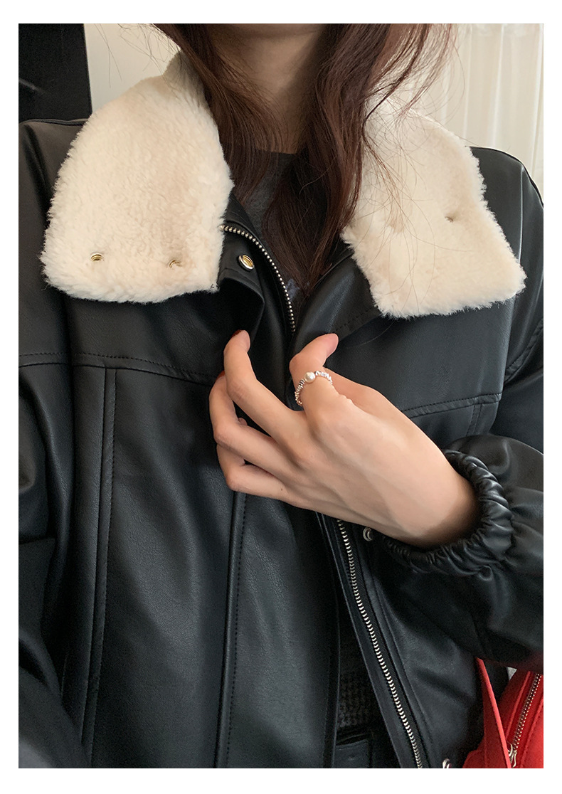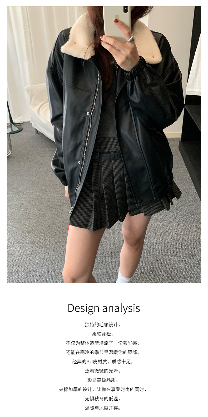 *o-ha-you*【FHZH1BD5041073】高級感毛領PU皮衣夾棉加厚外套女秋冬韓系機車夾克上衣-2色