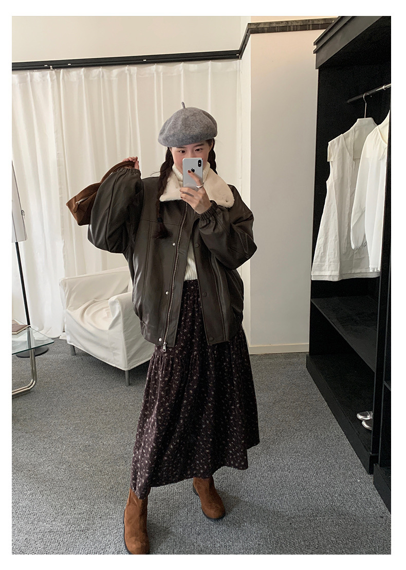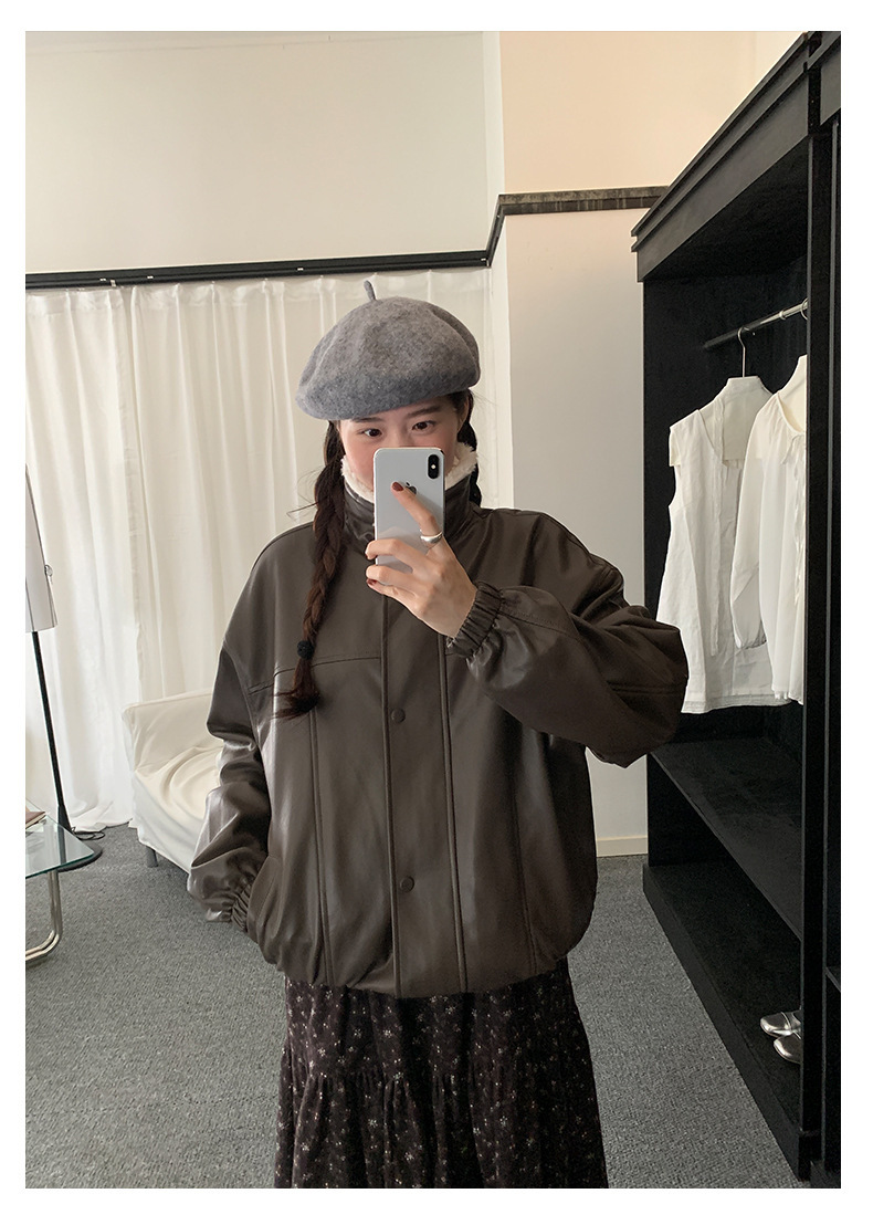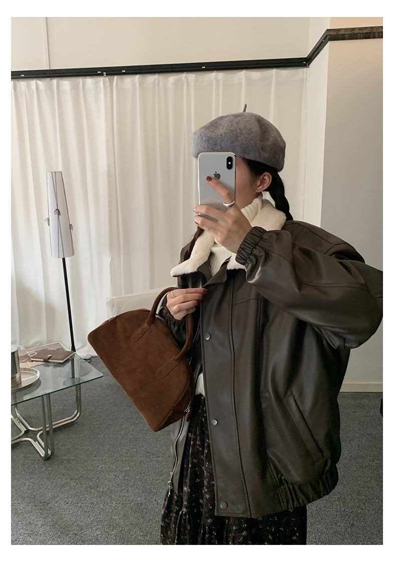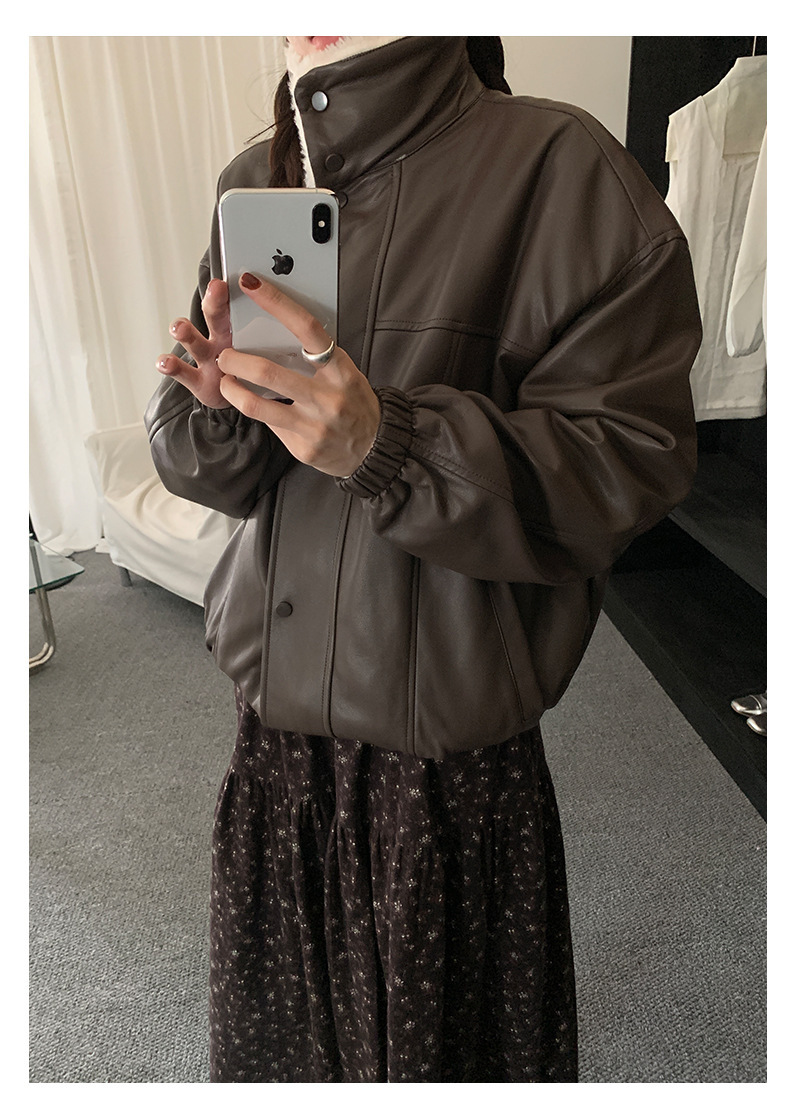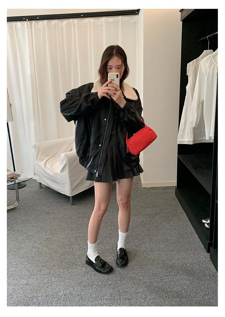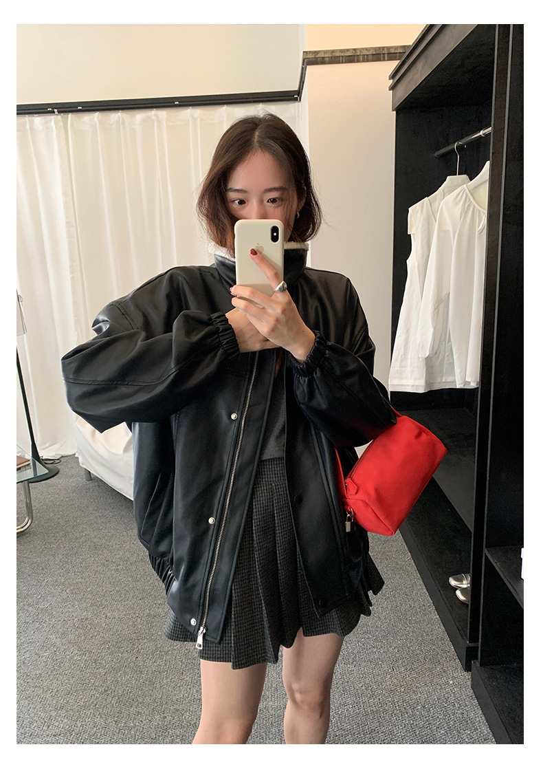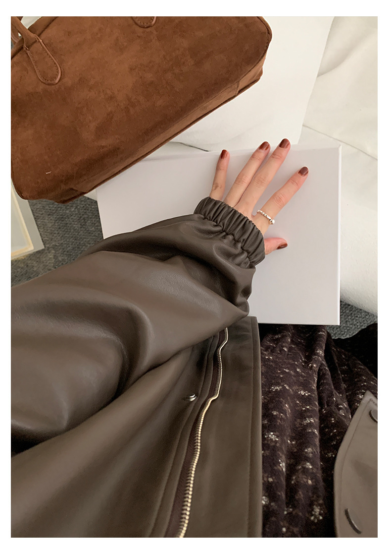 *o-ha-you*【FHZH1BD5041073】高級感毛領PU皮衣夾棉加厚外套女秋冬韓系機車夾克上衣-2色
