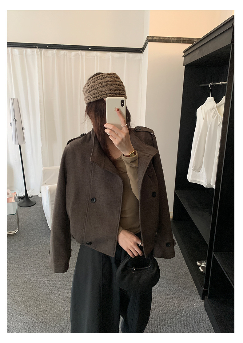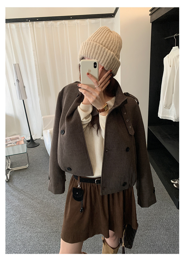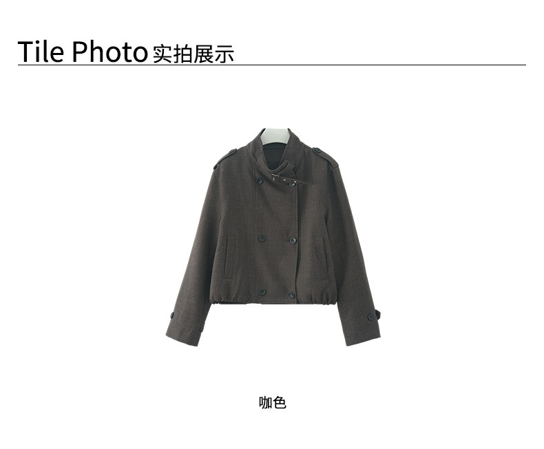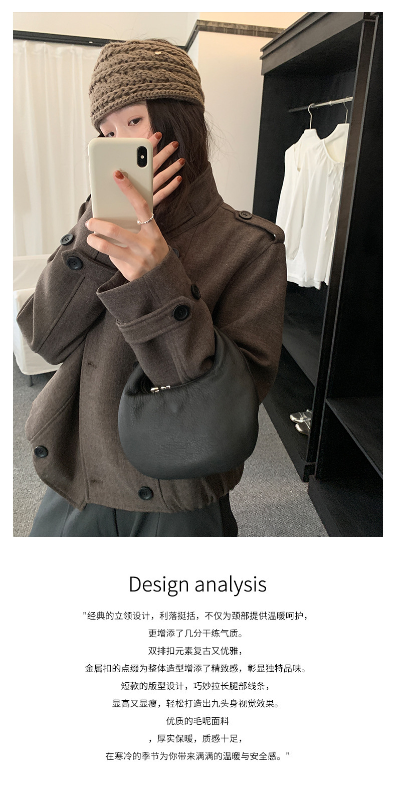 *o-ha-you*【FHZH1BE5041026】高級感雙排扣立領毛呢外套女秋冬韓系短版休閒夾克上衣