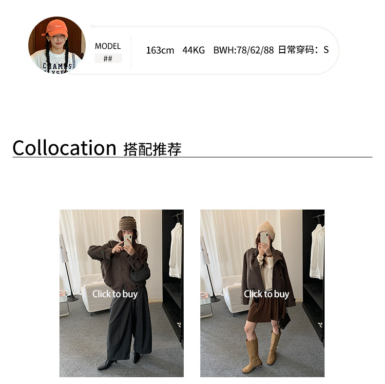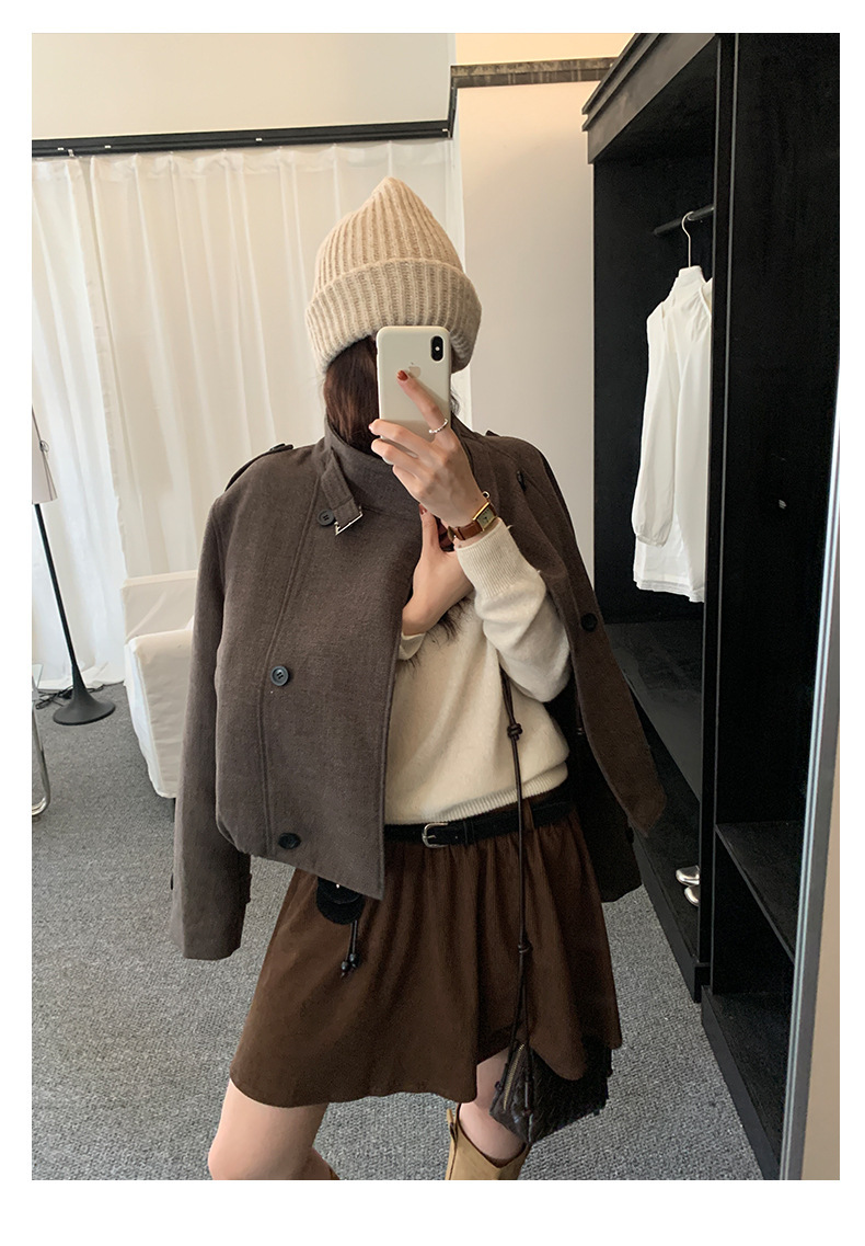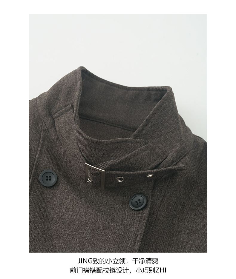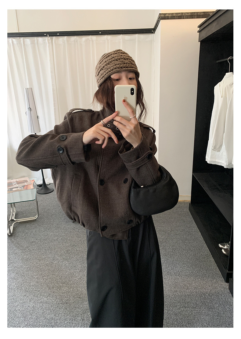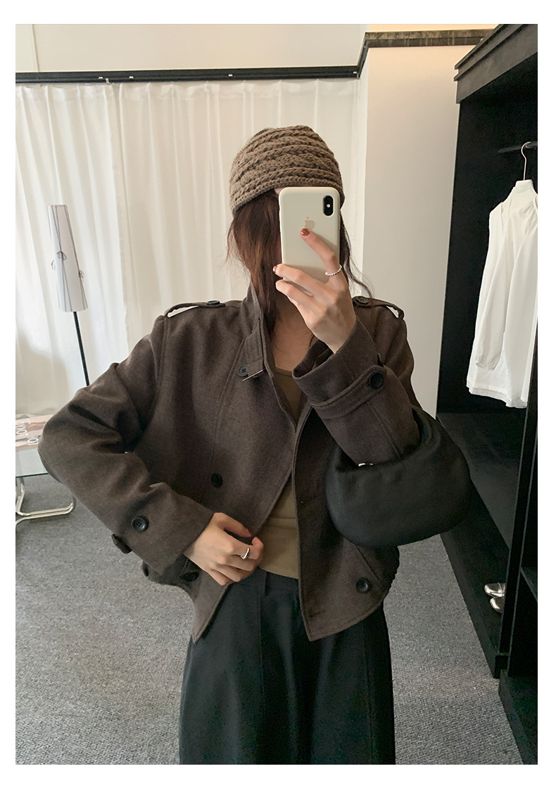 *o-ha-you*【FHZH1BE5041026】高級感雙排扣立領毛呢外套女秋冬韓系短版休閒夾克上衣