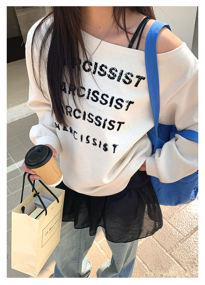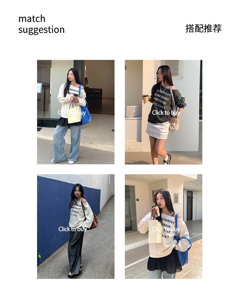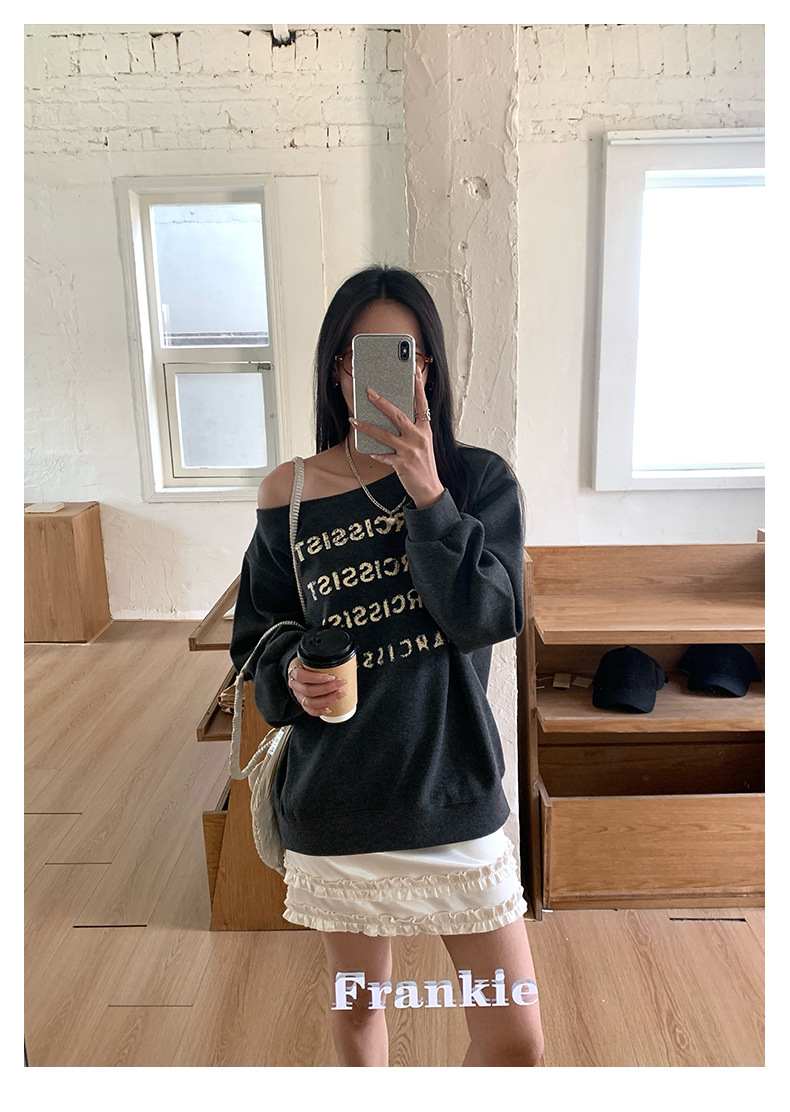 *o-ha-you*【FHZH1BF5010200】韓風斜肩印花衛衣2025春季寬鬆休閒長袖套頭上衣-2色