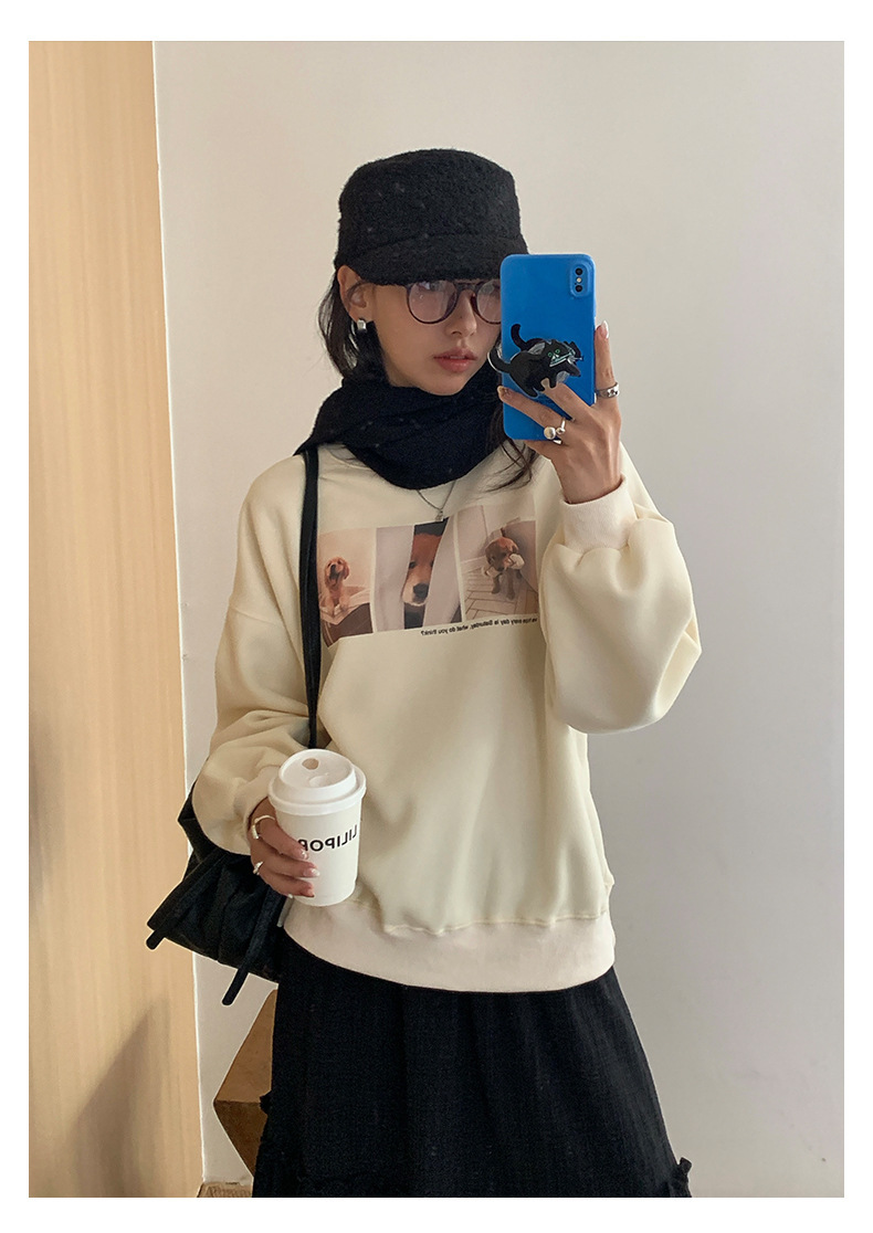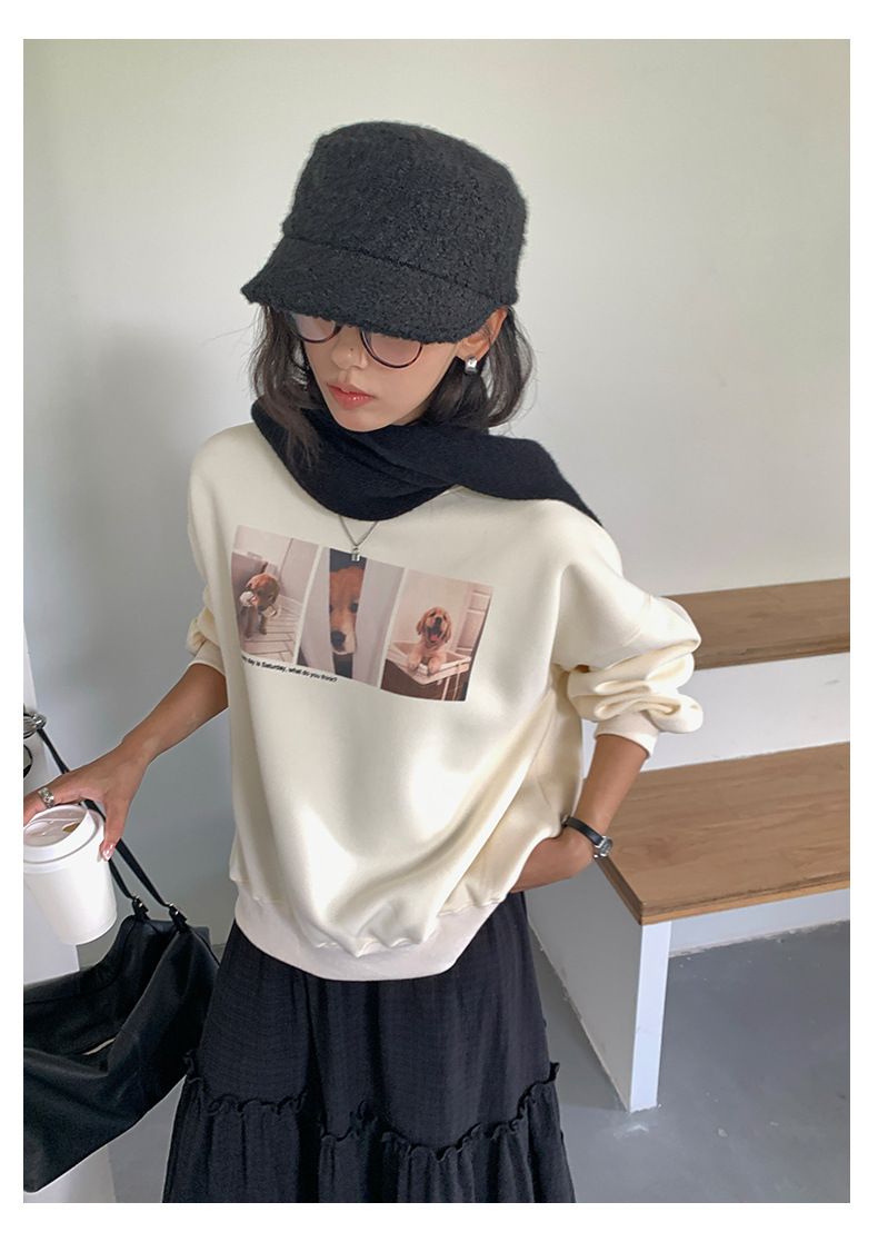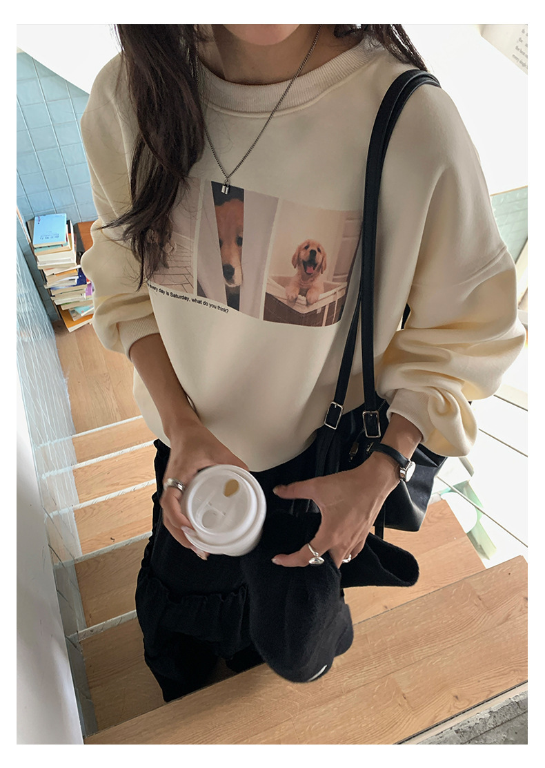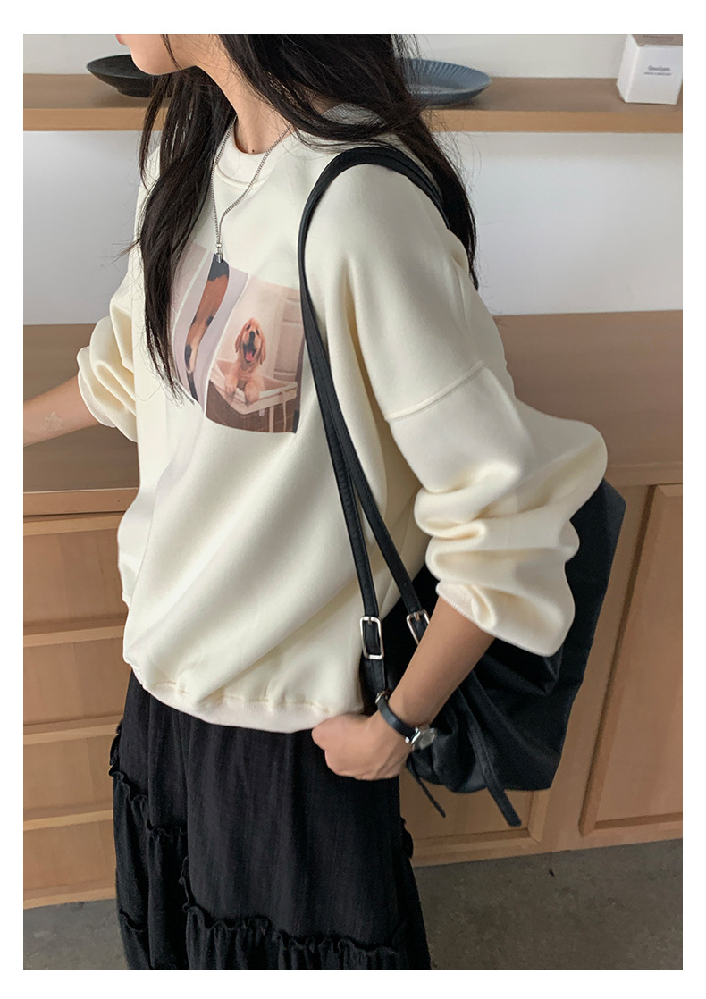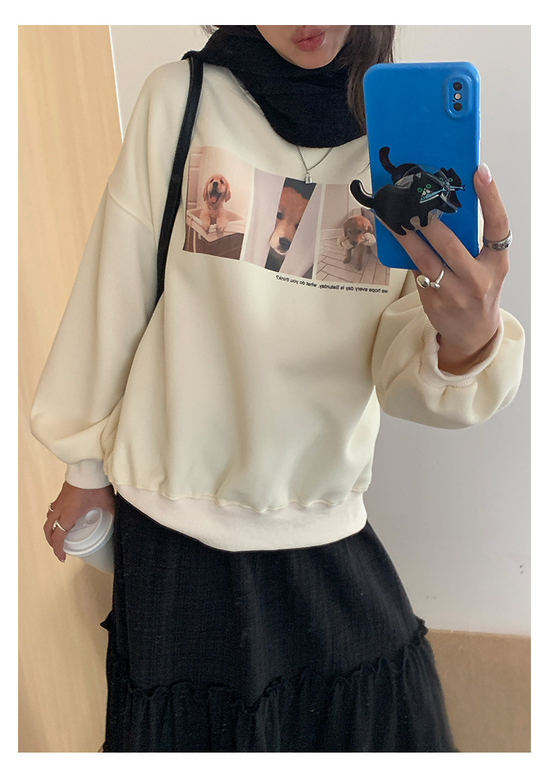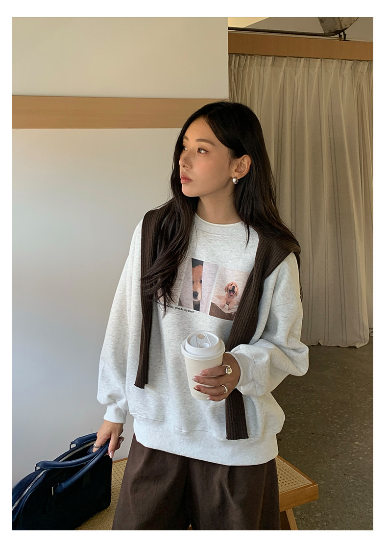 *o-ha-you*【FHZH1BF5030079】減齡狗狗印花長袖衛衣女2025秋季韓版百搭通勤套頭上衣-3色