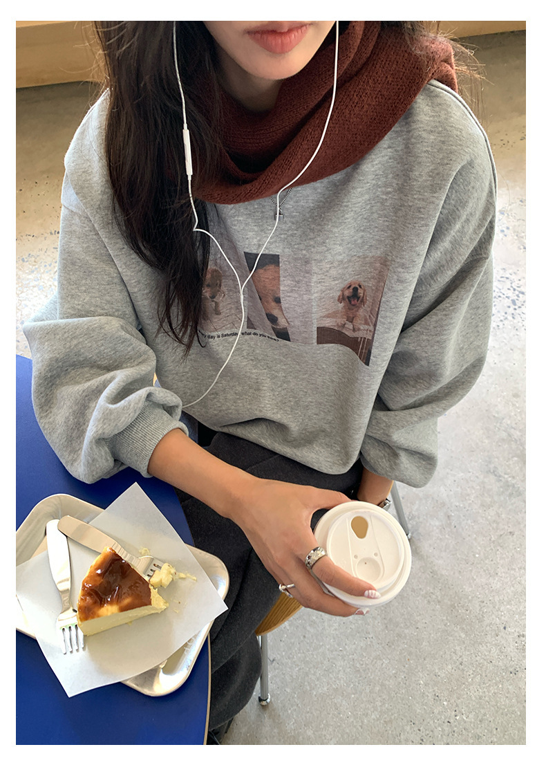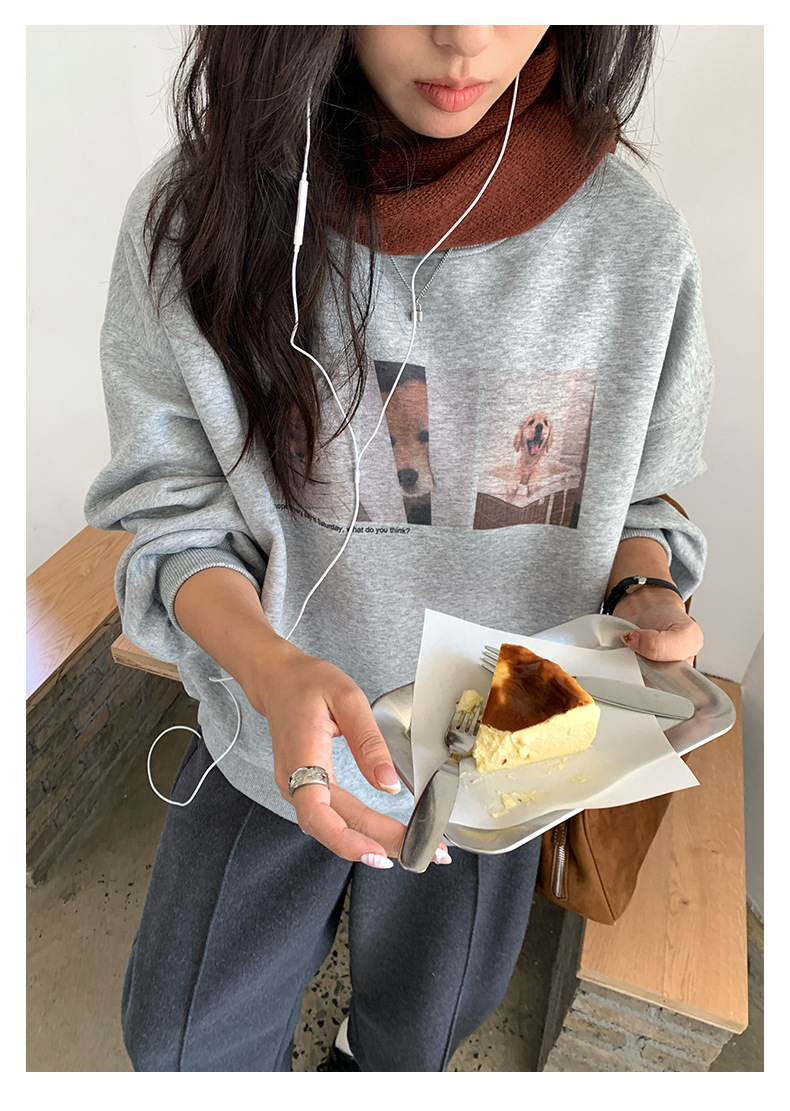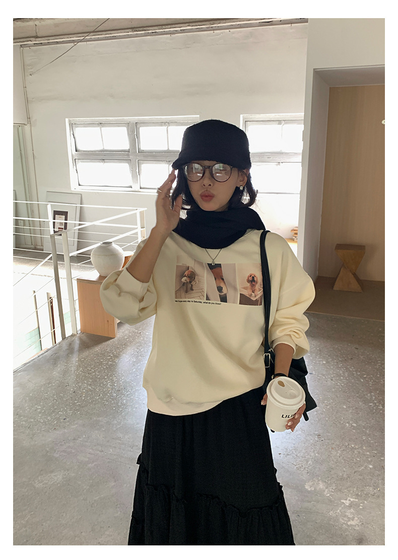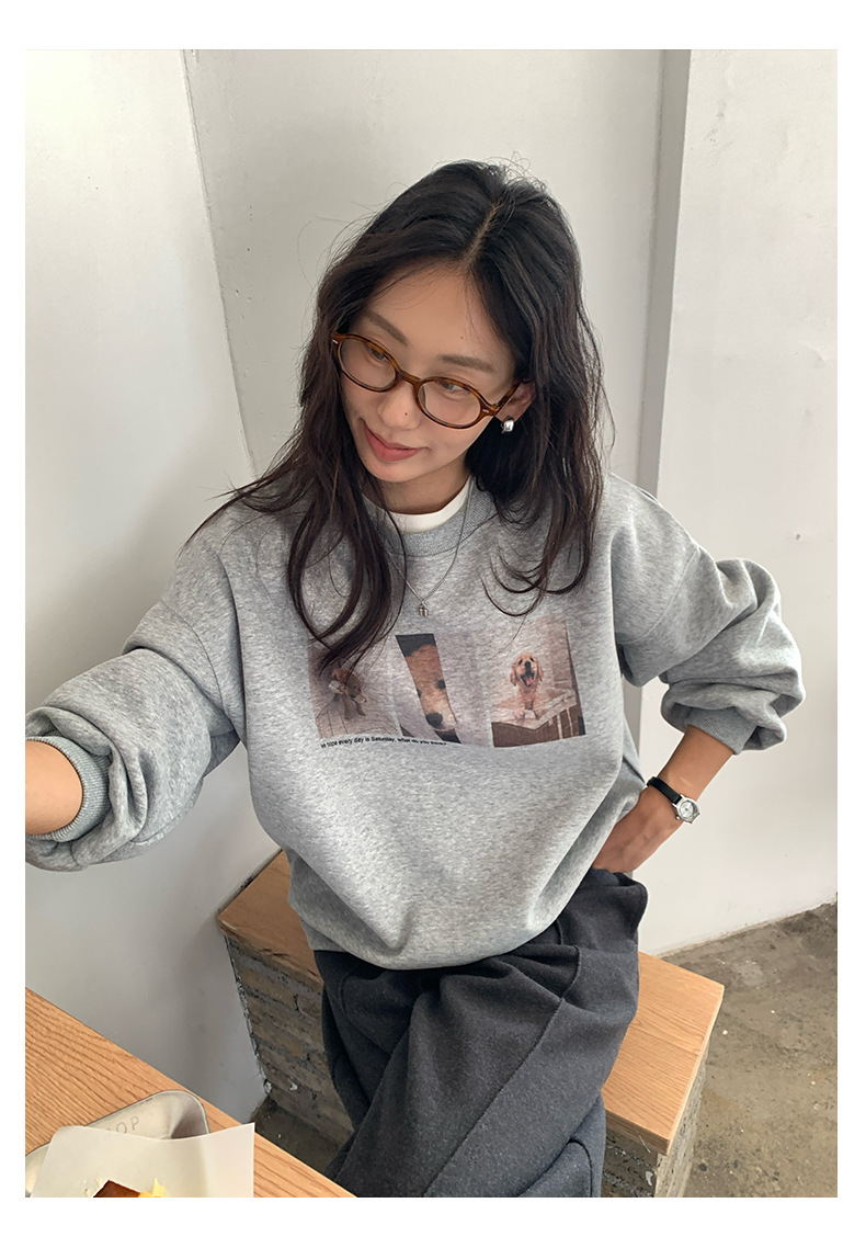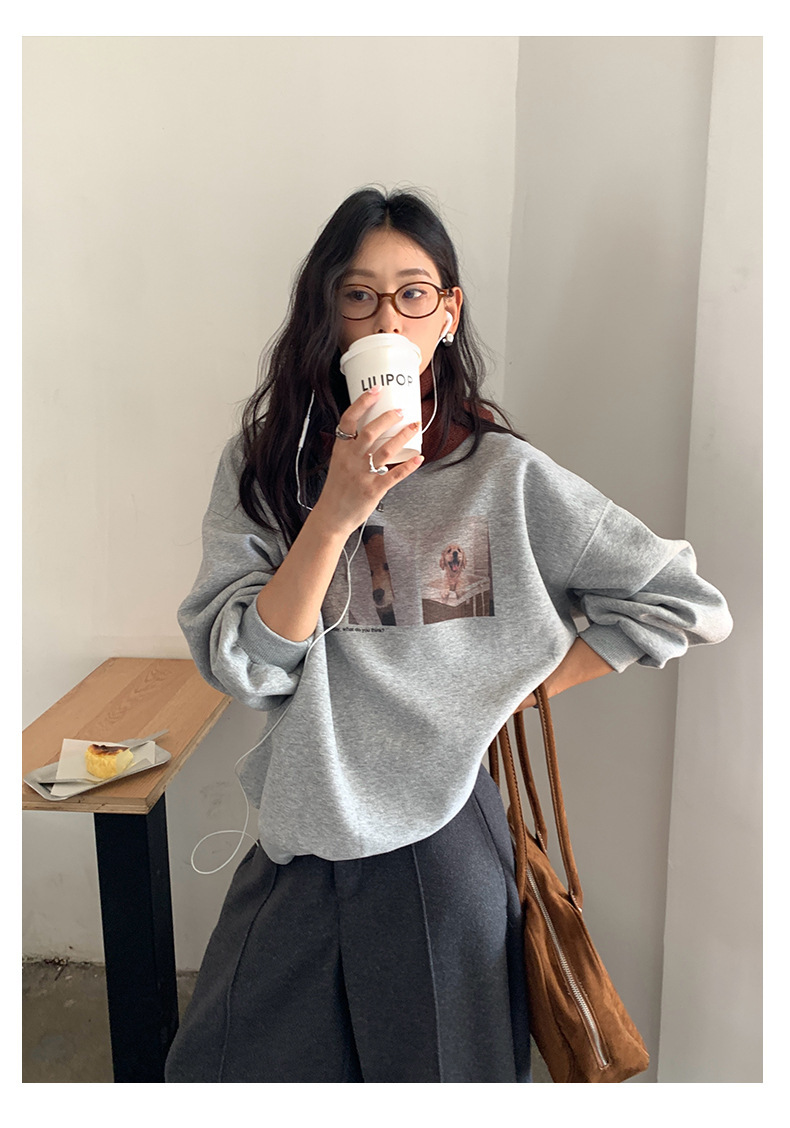 *o-ha-you*【FHZH1BF5030079】減齡狗狗印花長袖衛衣女2025秋季韓版百搭通勤套頭上衣-3色