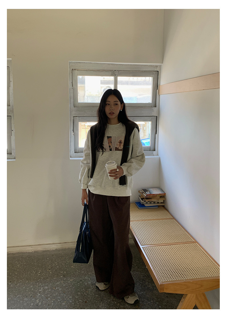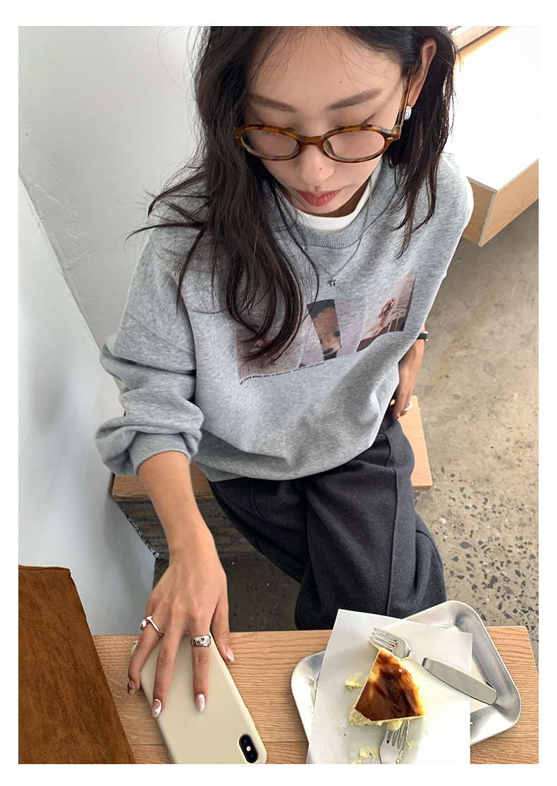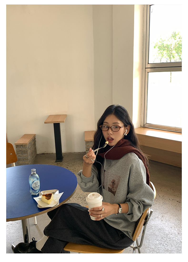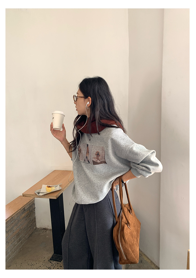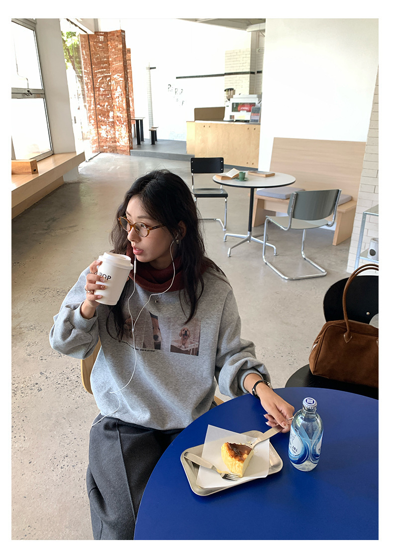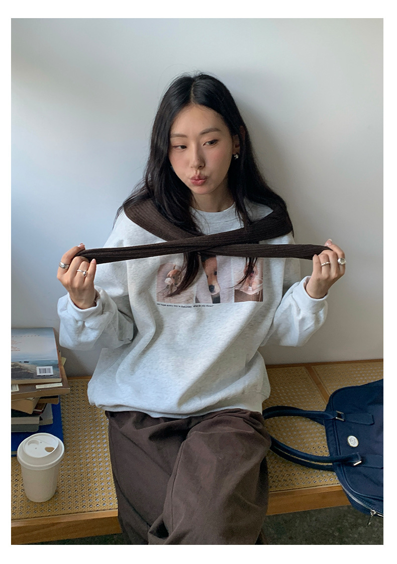 *o-ha-you*【FHZH1BF5030079】減齡狗狗印花長袖衛衣女2025秋季韓版百搭通勤套頭上衣-3色