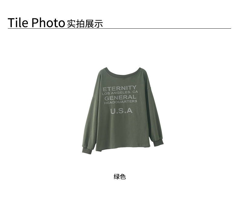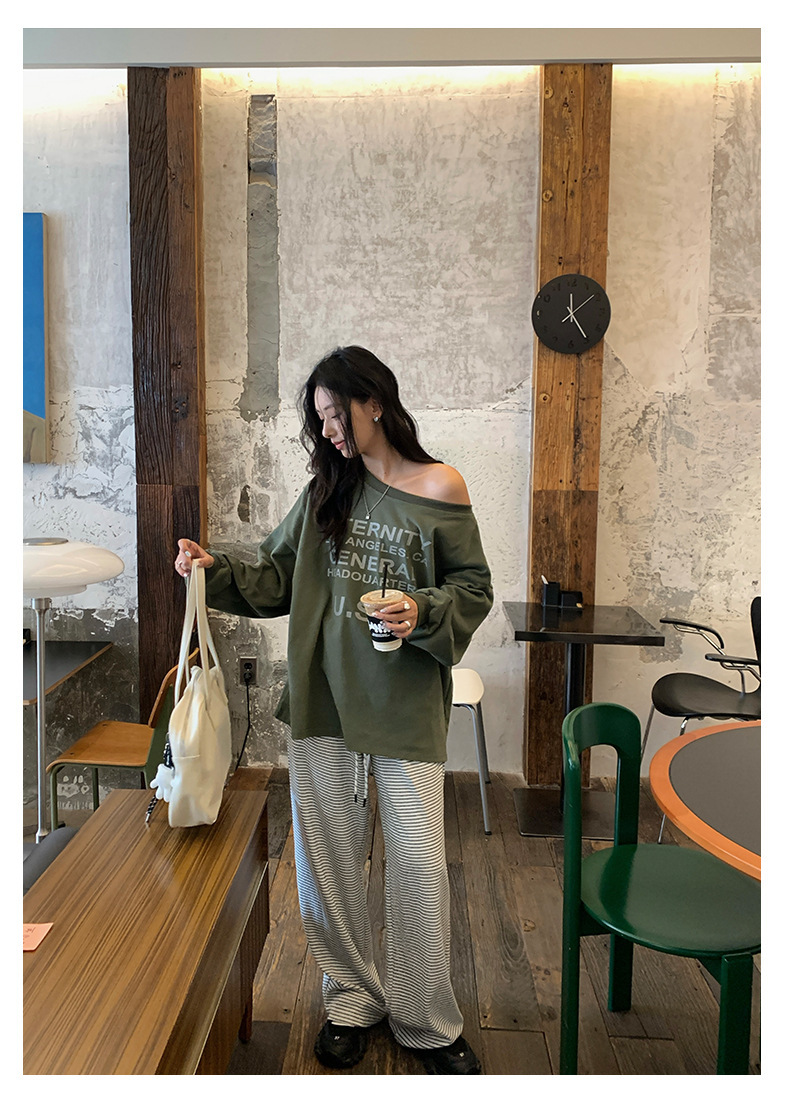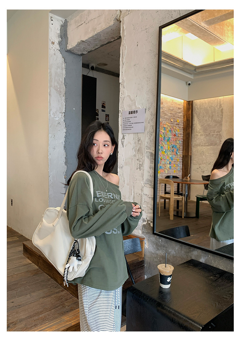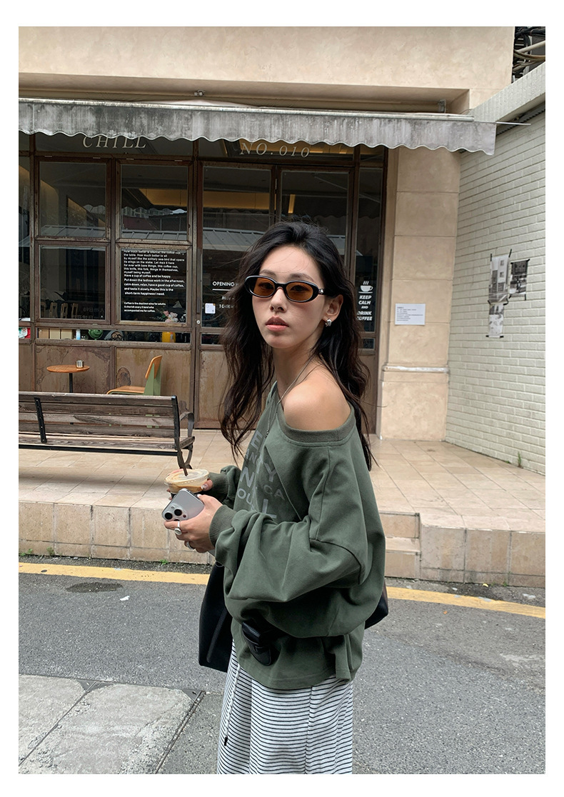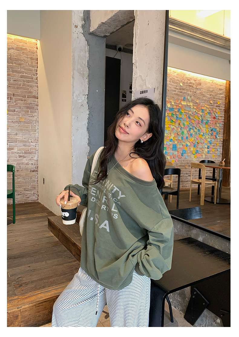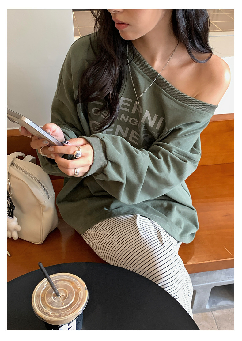 *o-ha-you*【FHZH1BF5030795】潮流個性灰色斜肩字母衛衣秋慵懶寬鬆街頭風上衣