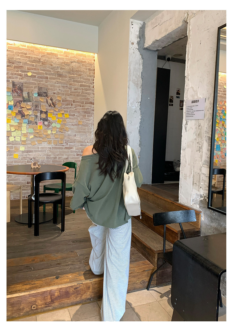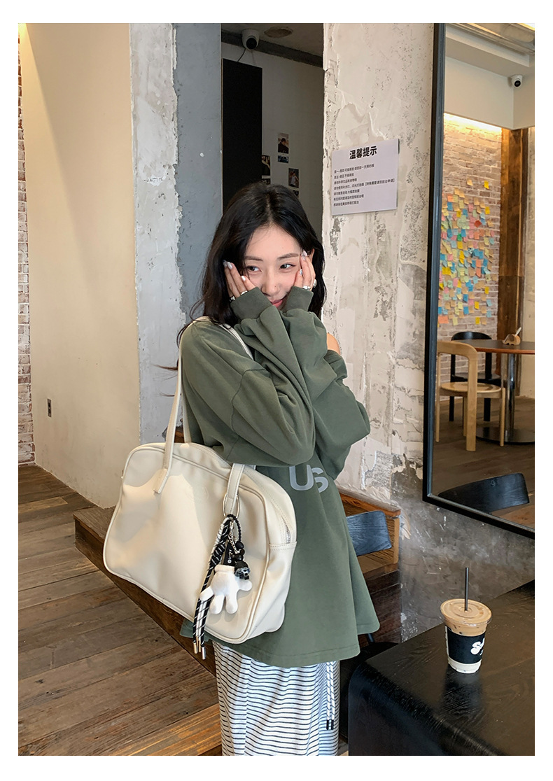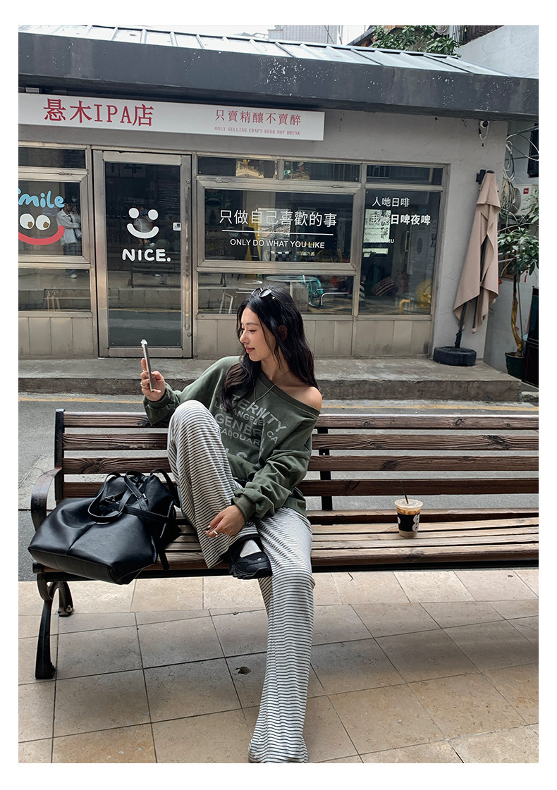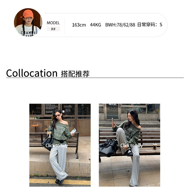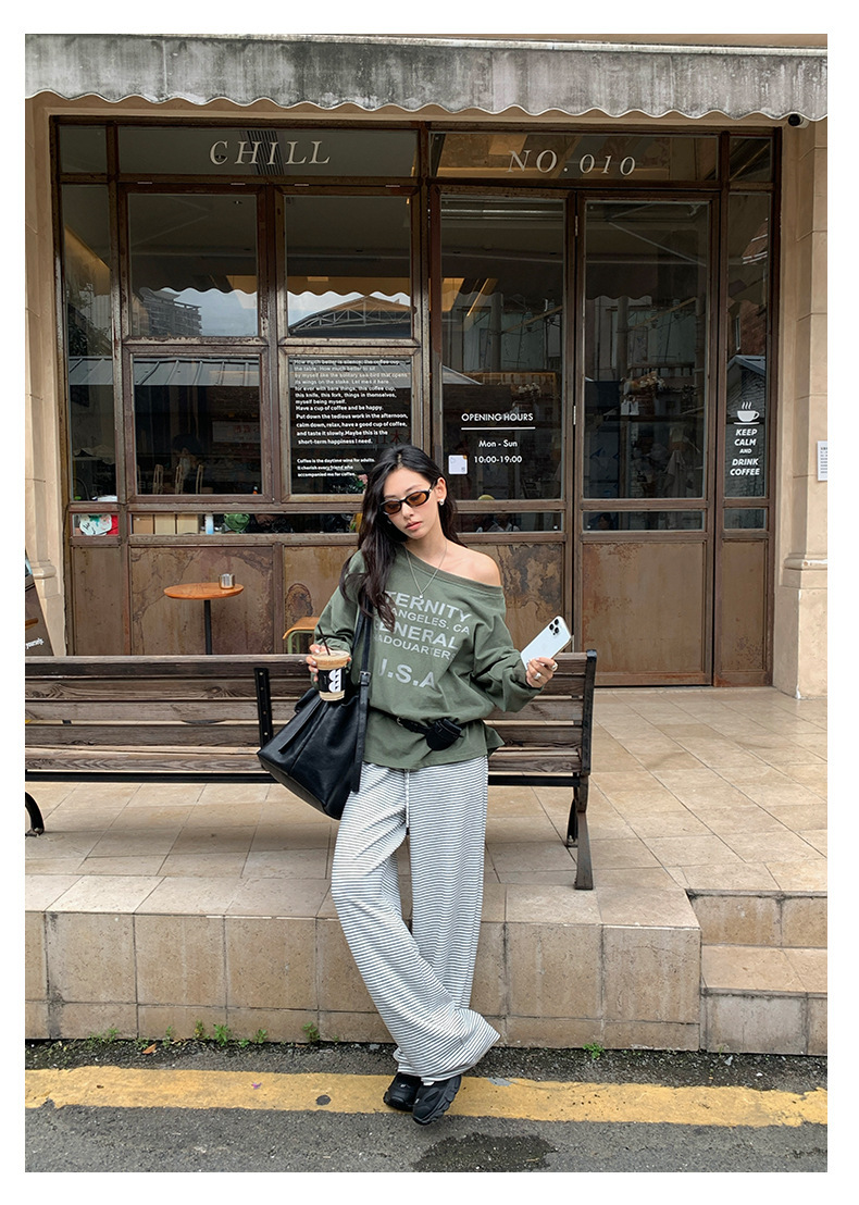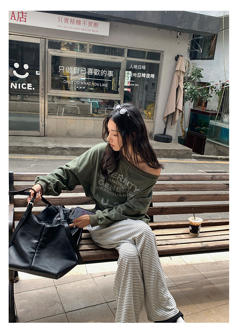 *o-ha-you*【FHZH1BF5030795】潮流個性灰色斜肩字母衛衣秋慵懶寬鬆街頭風上衣