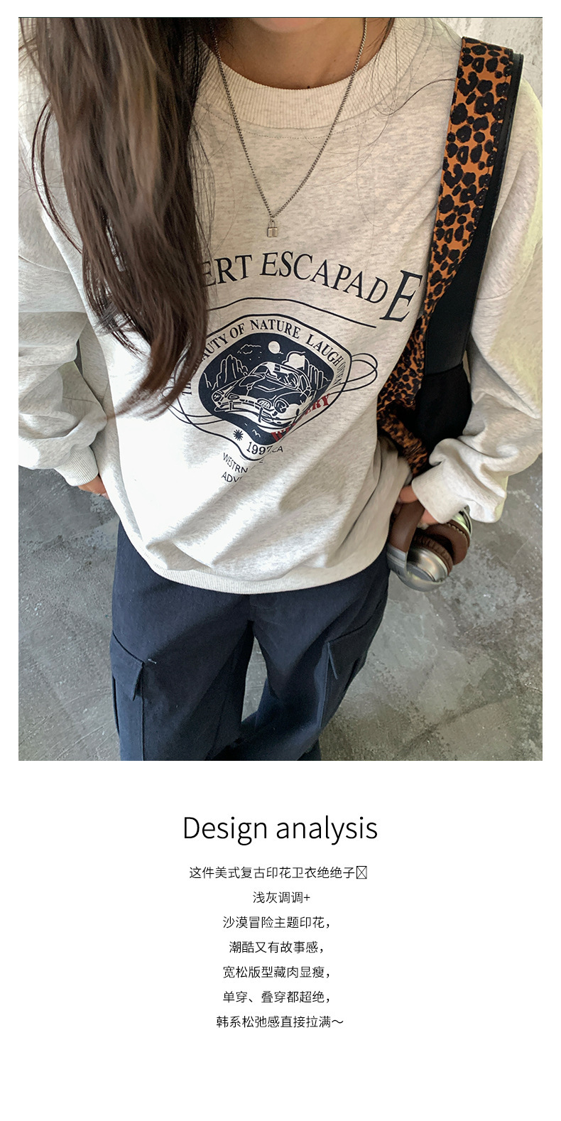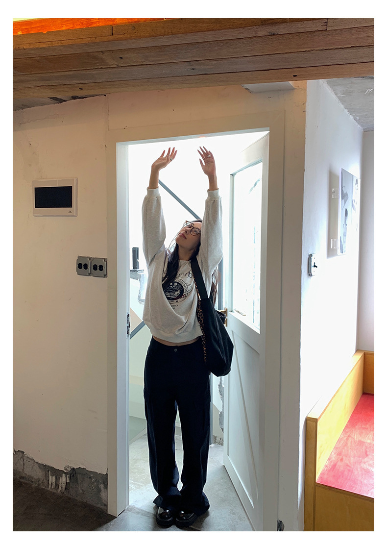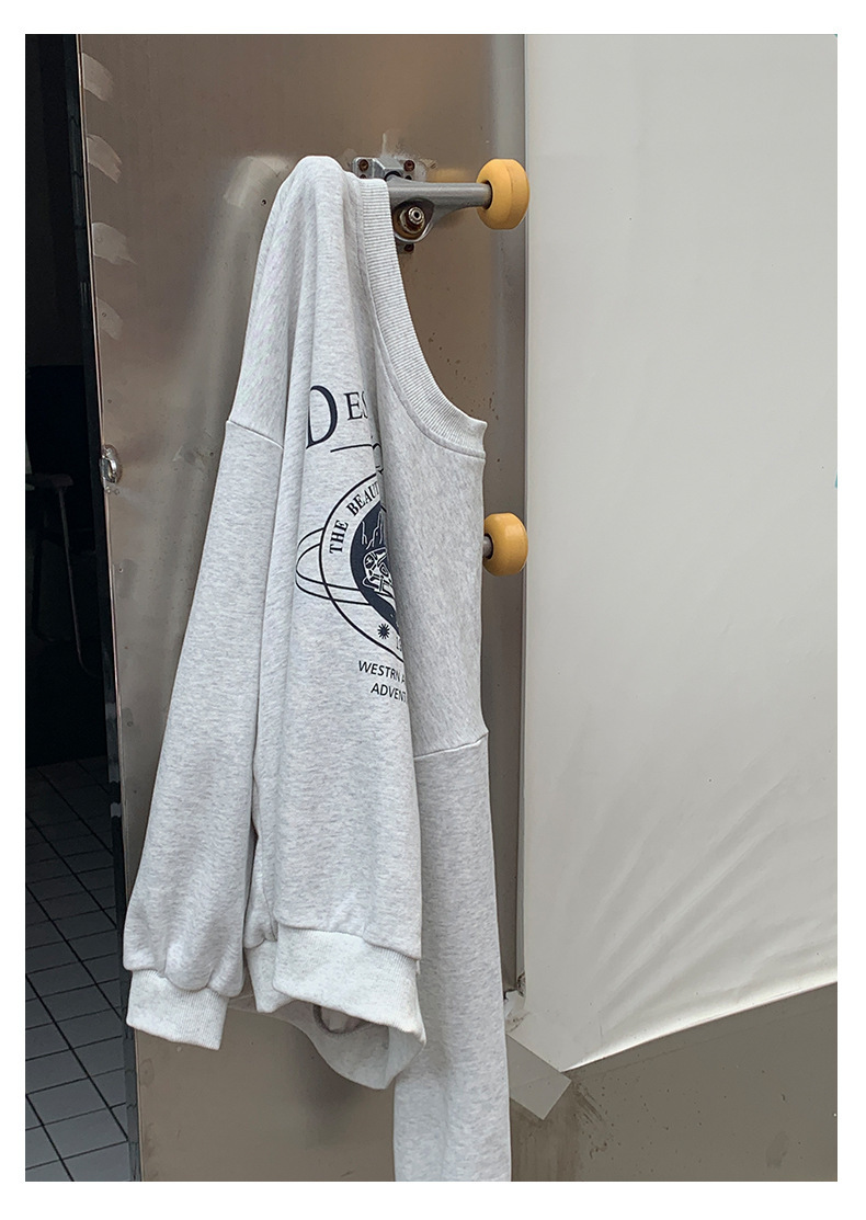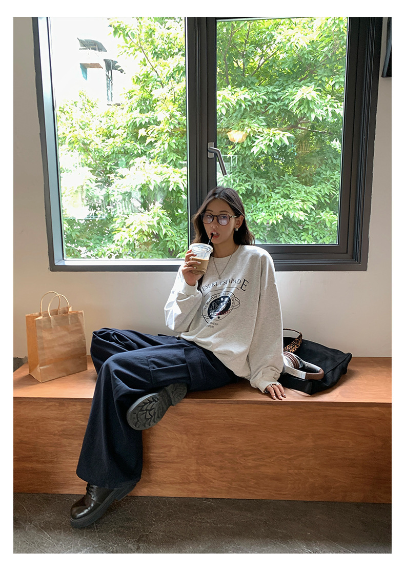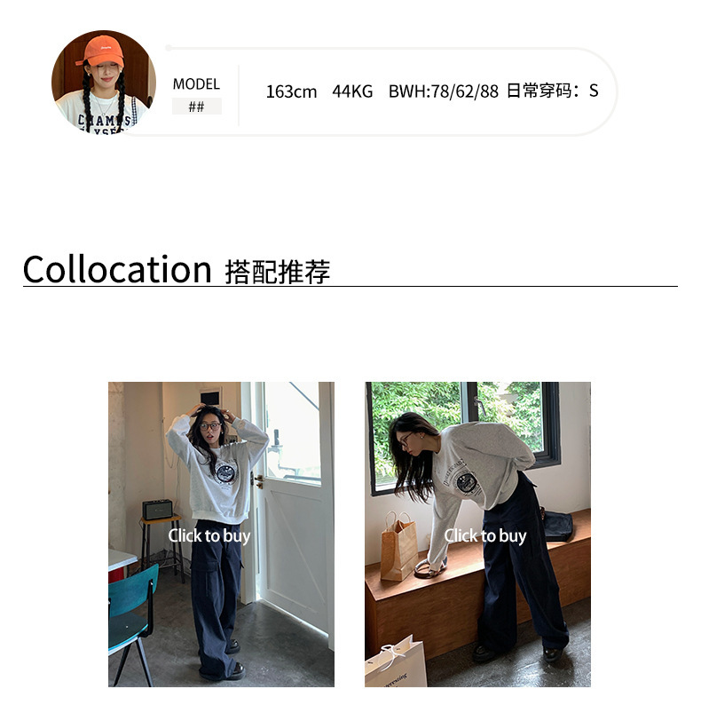 *o-ha-you*【FHZH1BF5030875】韓系秋季新款圓領字母復古印花圖案休閒寬鬆衛衣